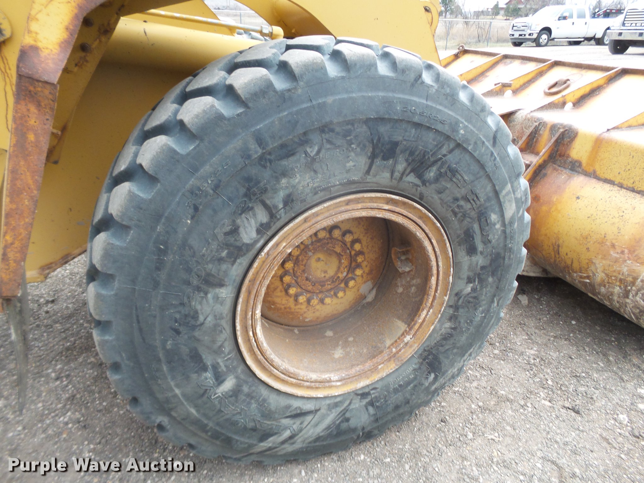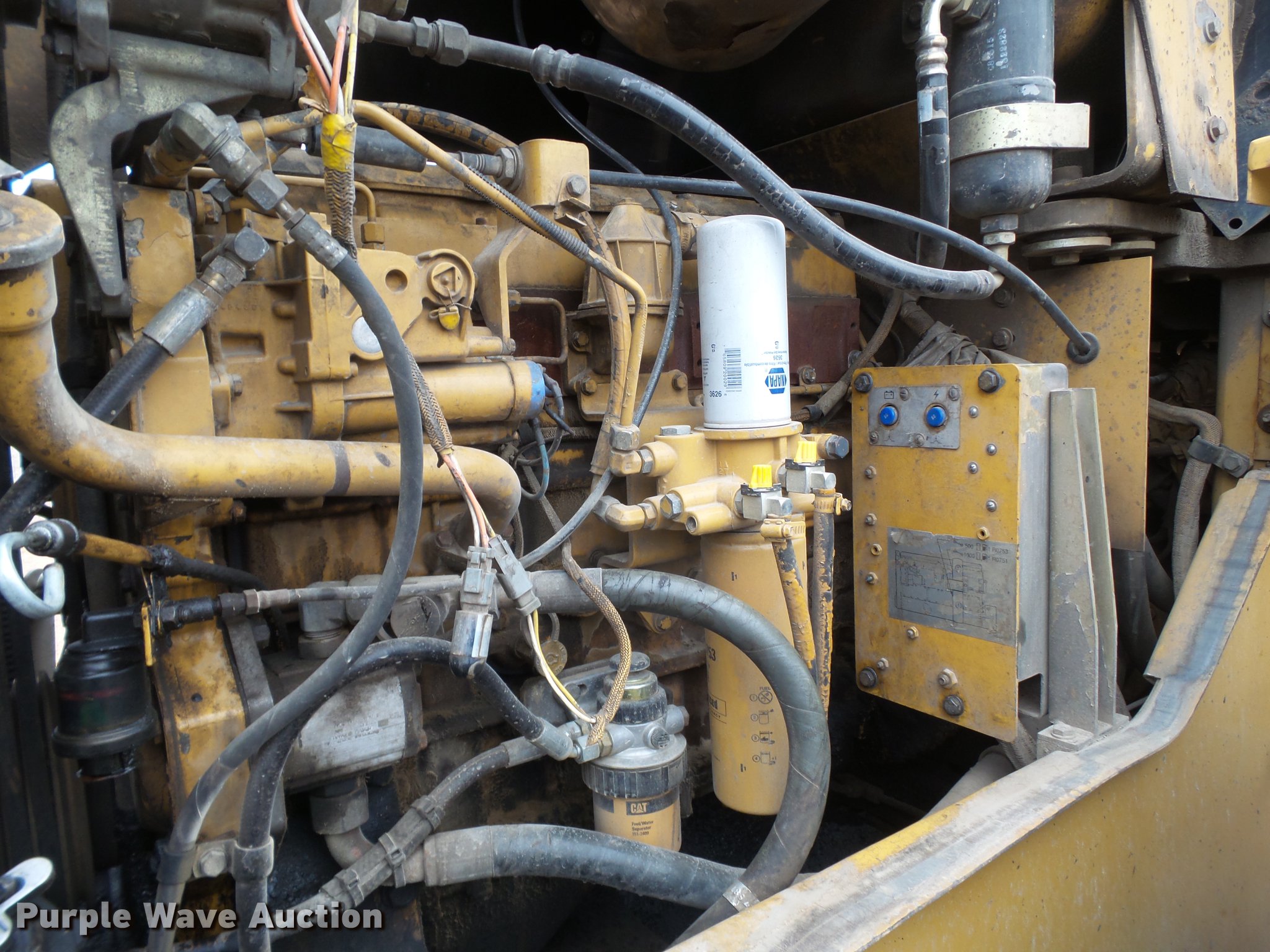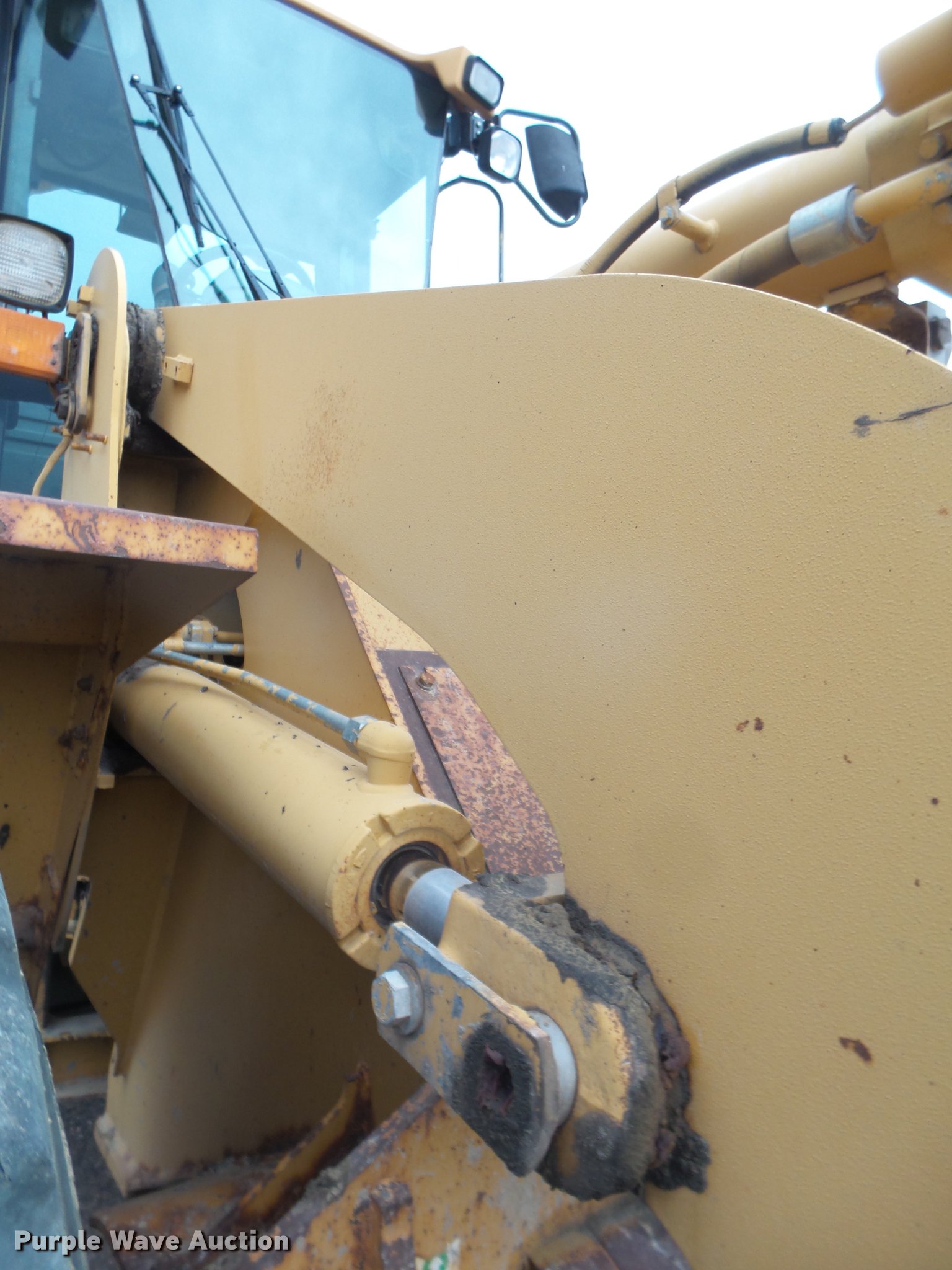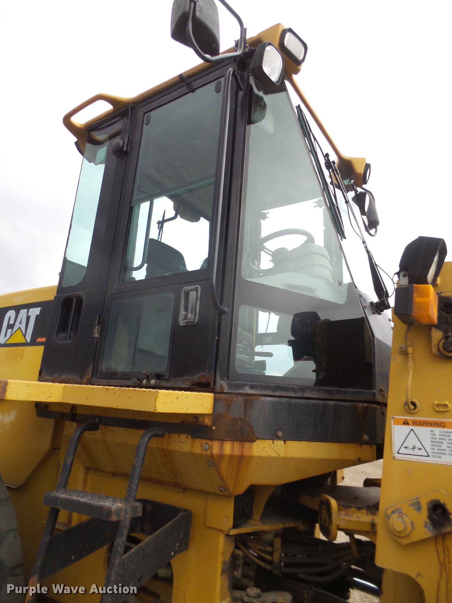 Purple Wave is selling a used Wheel Loader in Texas. This item is a 1999 Caterpillar 938G wheel loader with the following: 12,971 hours on meter, Caterpillar 3126DITA turbo diesel engine, Serial 6JK3480, Powershift transmission, 4F-3R gears, Enclosed cab, AC and heat, Air suspension seat, Two-lever bucket controls, Wipers, Caterpillar 107"W general purpose bucket, Bolt-on cutting edge, 20.5R25 tires, Serial 6WS01594