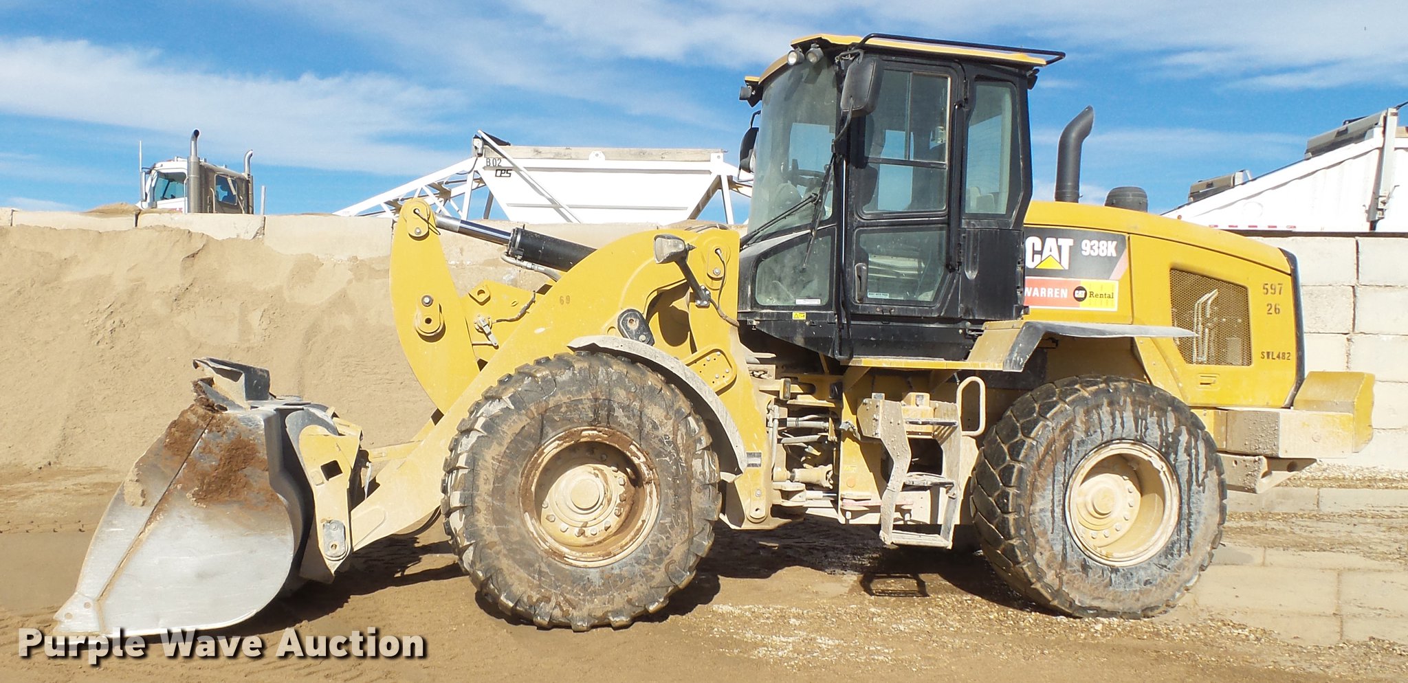 Purple Wave is selling a used Wheel Loader in Texas. This item is a 2012 Caterpillar 938K wheel loader with the following: 8,491 hours on meter, Caterpillar C7.1 Acert 7.01L six cylinder turbo diesel engine, 170 HP, Powershift transmission, 4F-4R gears, Enclosed cab, AC and heat, AM/FM, Suspension seat, Front and rear work lights, Backup alarm, Hydraulic quick coupler, 100"W bucket, Bolt-on cutting edge, 3.2 cu. yd. capacity, Self-leveling, Counterweight, 20.5-25 tires, Serial CAT0938KHSWL00482