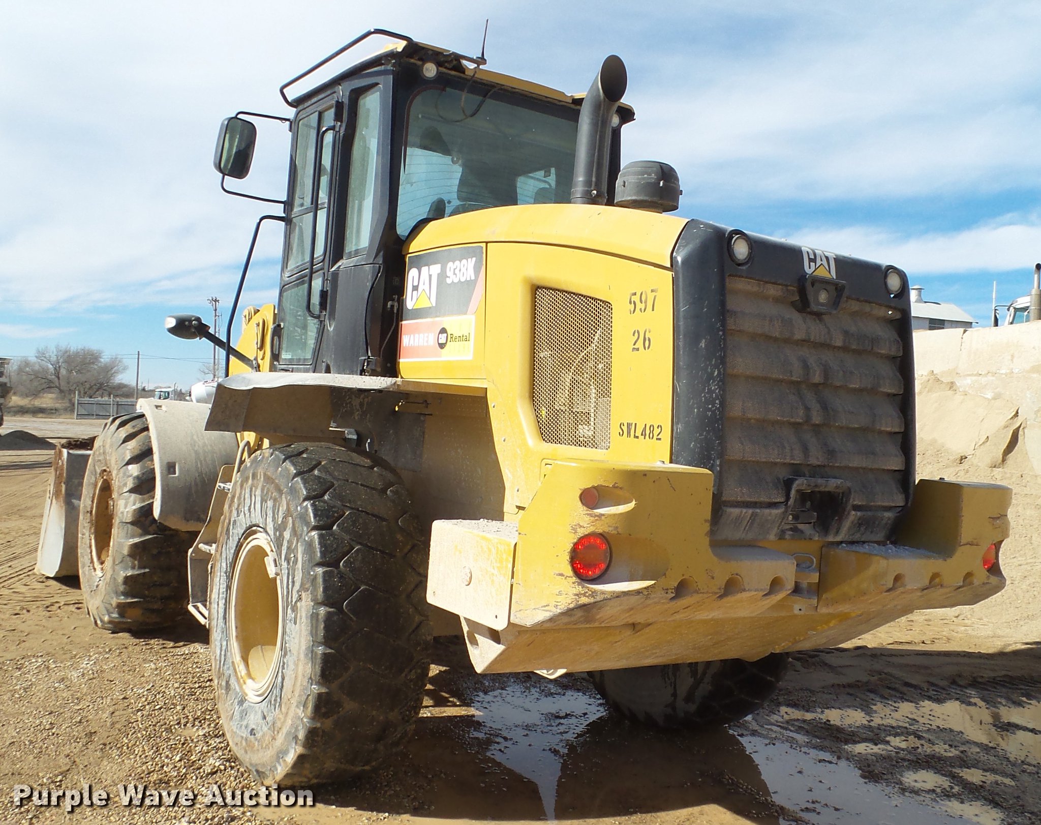 2012 Caterpillar 938K wheel loader. 8,491 hours on meter, Caterpillar C7.1 Acert 7.01L six cylinder turbo diesel engine 170 HP, Powershift transmission 4F-4R gears, Enclosed cab AC and heat, AM/FM, Suspension seat, Front and rear work lights, Backup alarm, Hydraulic quick coupler, 100"W bucket Bolt-on cutting edge, 3.2 cu. yd. capacity, Self-leveling, Counterweight, 20.5-25 tires, Serial CAT0938KHSWL00482. Brexon & Triple C. Lubbock, TX 79415