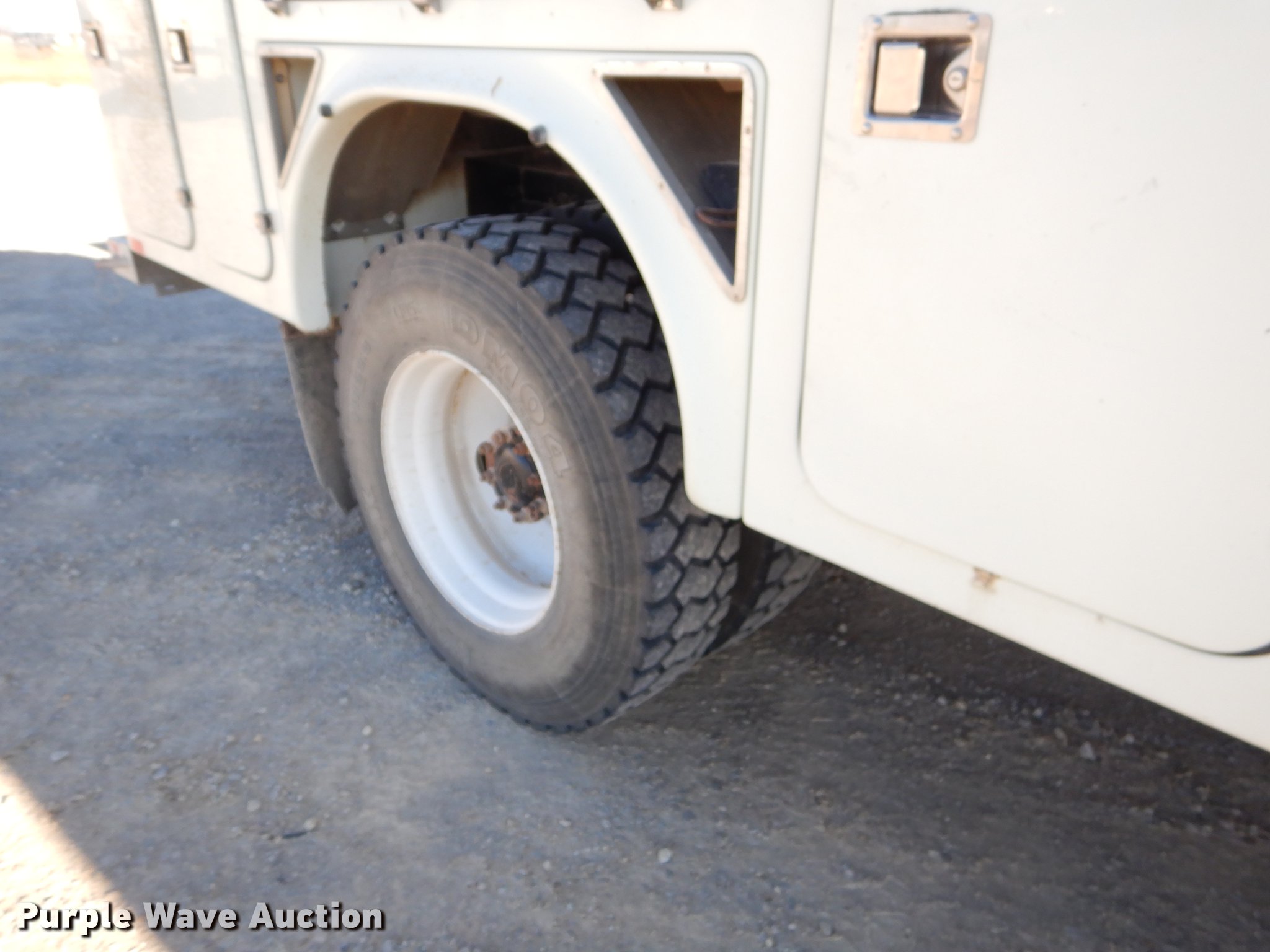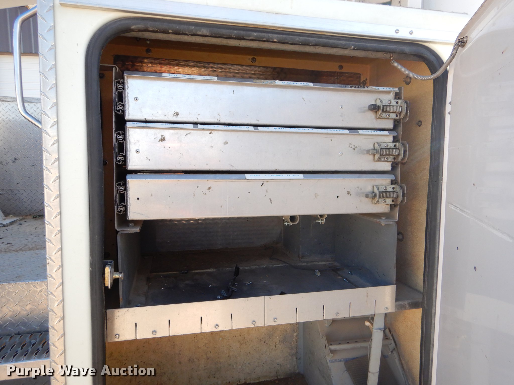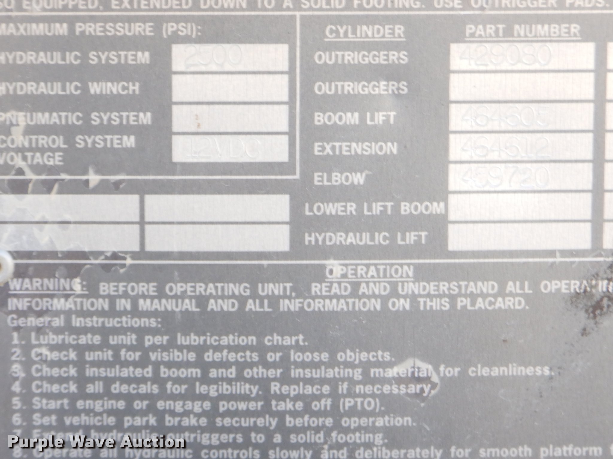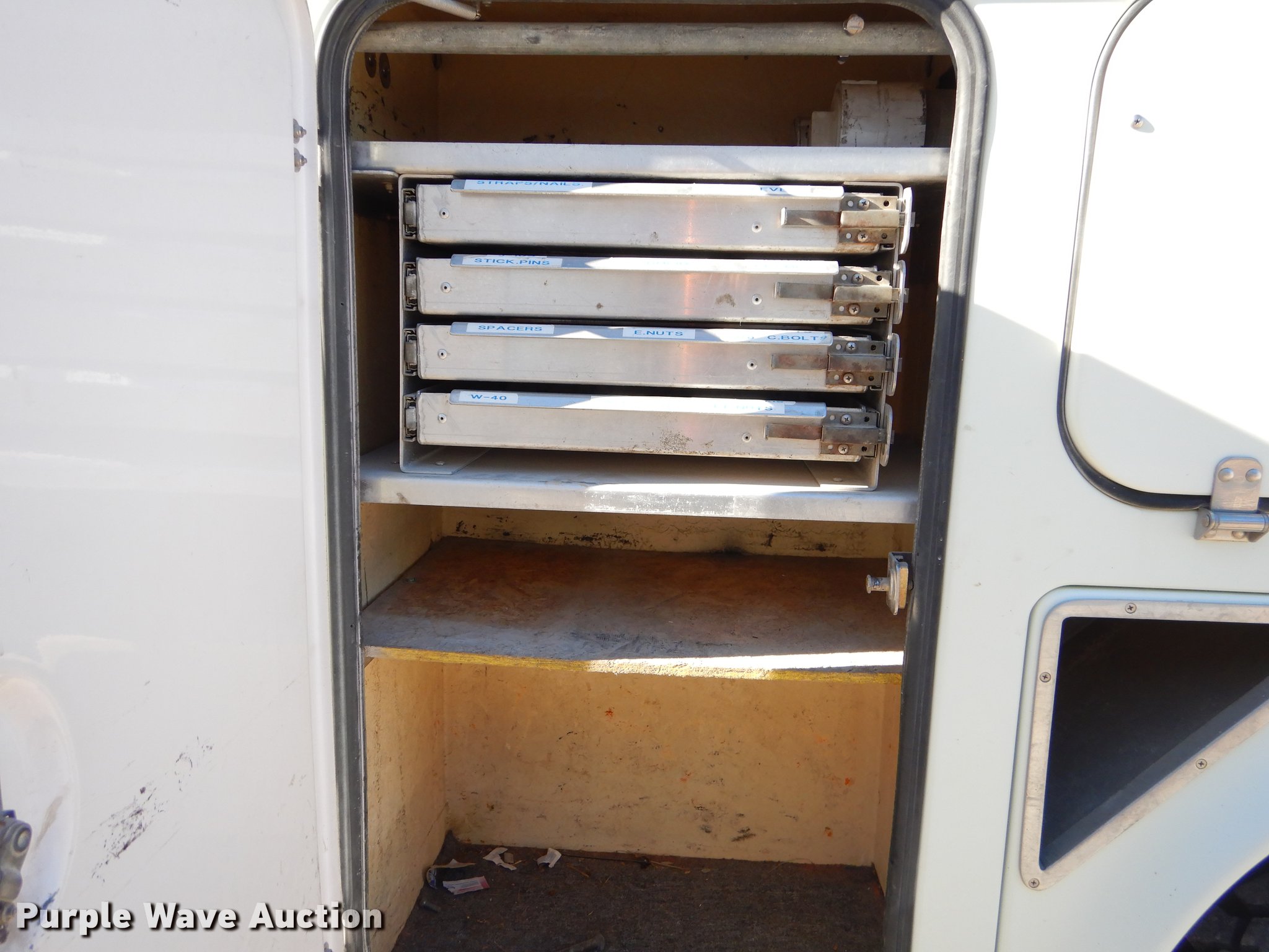 Purple Wave is selling a used Bucket Truck in Missouri. This item is a 2005 Freightliner Business Class M2 bucket truck with the following: 149,816 miles on odometer, 12,138 hours on meter, Caterpillar C7 7.2L L6 turbo diesel engine, Automatic transmission, Inter-axle differential lock, Single axle, AC and heat, Cruise, AM/FM/cassette, Heated mirrors, Air suspension seat, Beacon light, Front tow hooks, Terex 17'L utlity bed, Shelving, Slide-out drawers, Compartment lights, Utility rack, Catwalk, Work lights, 2005 Hi Ranger TL50M boom, 350 lbs maximum lift capacity, 50' maximum lift height, Man basket, Ground and platform control, Boom rotation, Articulating, insulated, telescopic boom, Rope material handler, (2) outriggers, Serial 2050627902, Single fuel tank, Pintle hitch, 214" wheelbase, Spring suspension, Air brakes, 11R22.5 tires, GVWR 33,000 lbs, Steering wheel will not lock in place