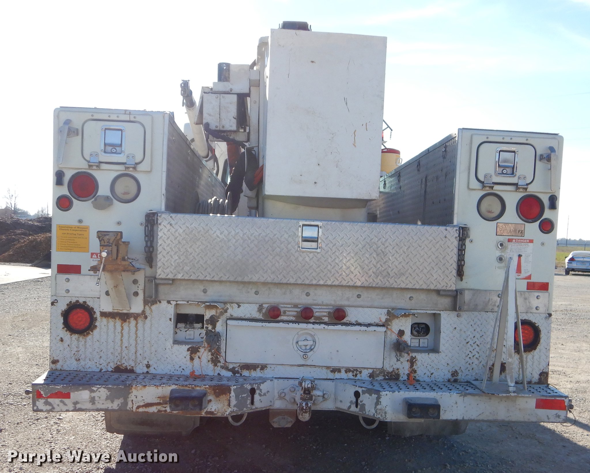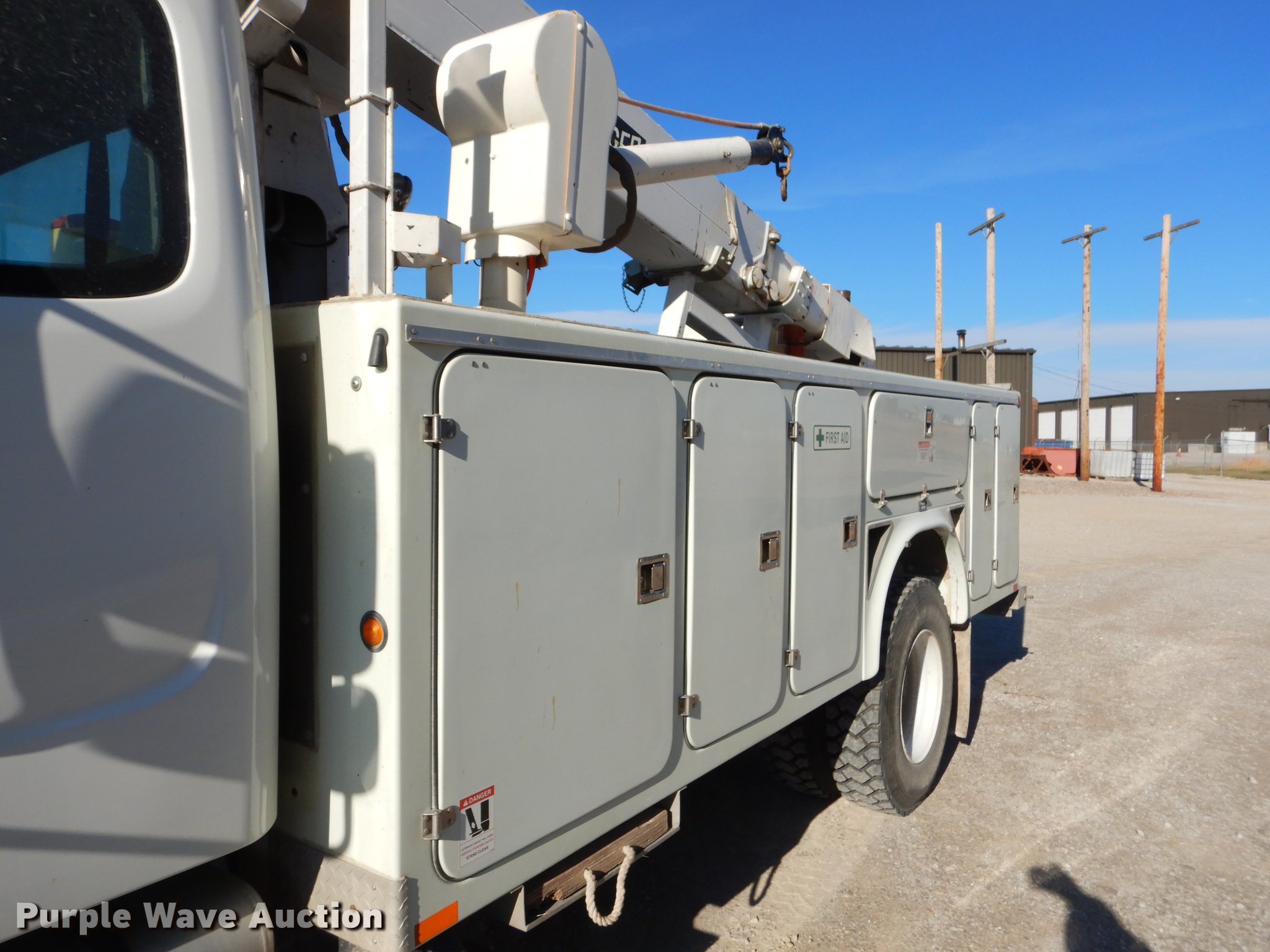 2005 Freightliner Business Class M2 bucket truck. 149,816 miles on odometer, 12,138 hours on meter, Caterpillar C7 7.2L L6 turbo diesel engine, Automatic transmission, Inter-axle differential lock, Single axle, AC and heat, Cruise, AM/FM/cassette, Heated mirrors, Air suspension seat, Beacon light, Front tow hooks, Terex 17'L utlity bed Shelving, Slide-out drawers, Compartment lights, Utility rack, Catwalk, Work lights, 2005 Hi Ranger TL50M boom 350 lbs maximum lift capacity, 50' maximum lift height, Man basket Ground and platform control, Boom rotation, Articulating, insulated, telescopic boom, Rope material handler, (2) outriggers, Serial 2050627902, Single fuel tank, Pintle hitch, 214" wheelbase, Spring suspension, Air brakes, 11R22.5 tires, GVWR 33,000 lbs, Steering wheel will not lock in place. Missouri title. 1FVACXDC35HN87929. Barton County Electric Cooperative. 91 US-160. Lamar, MO 64759