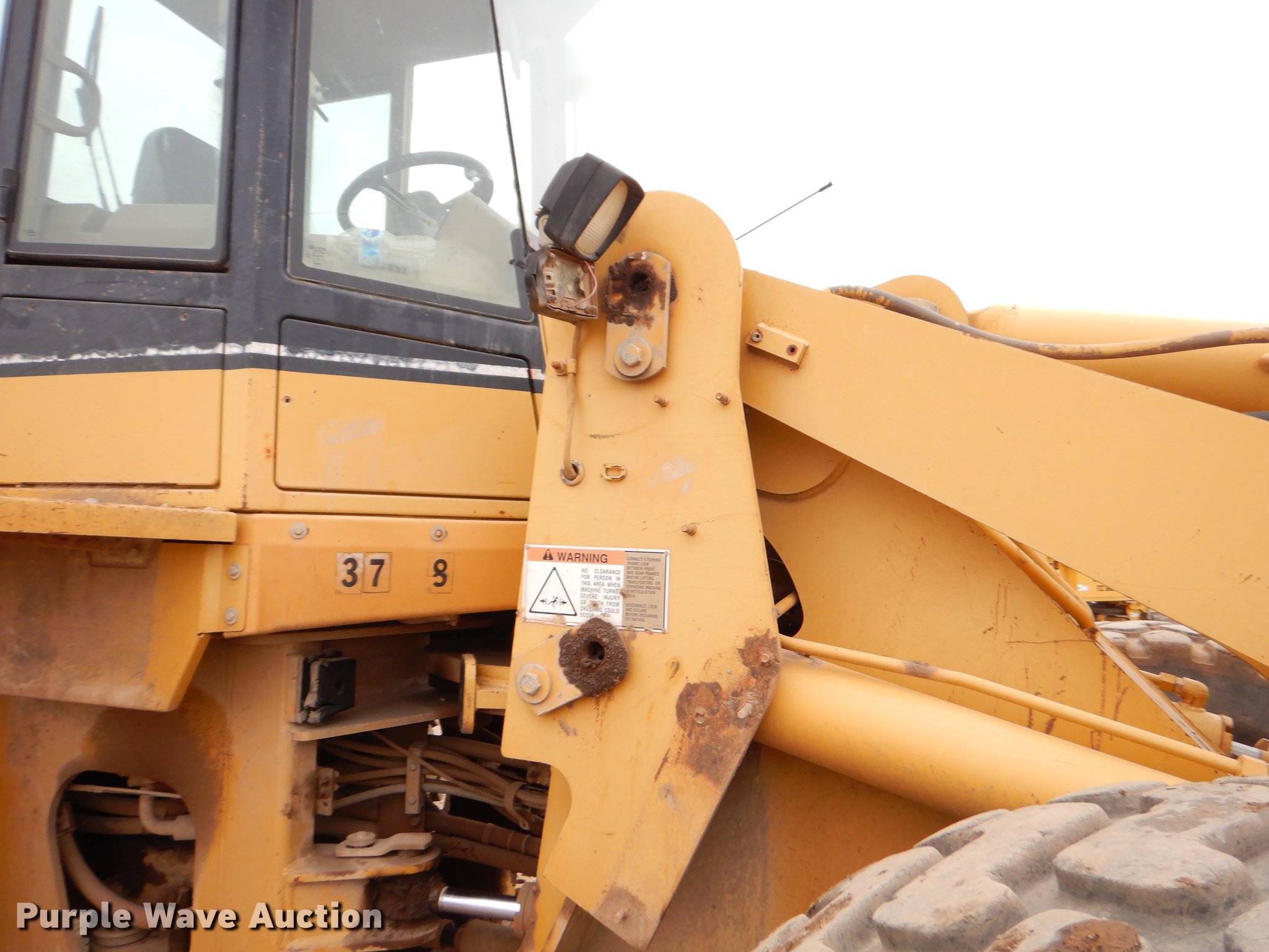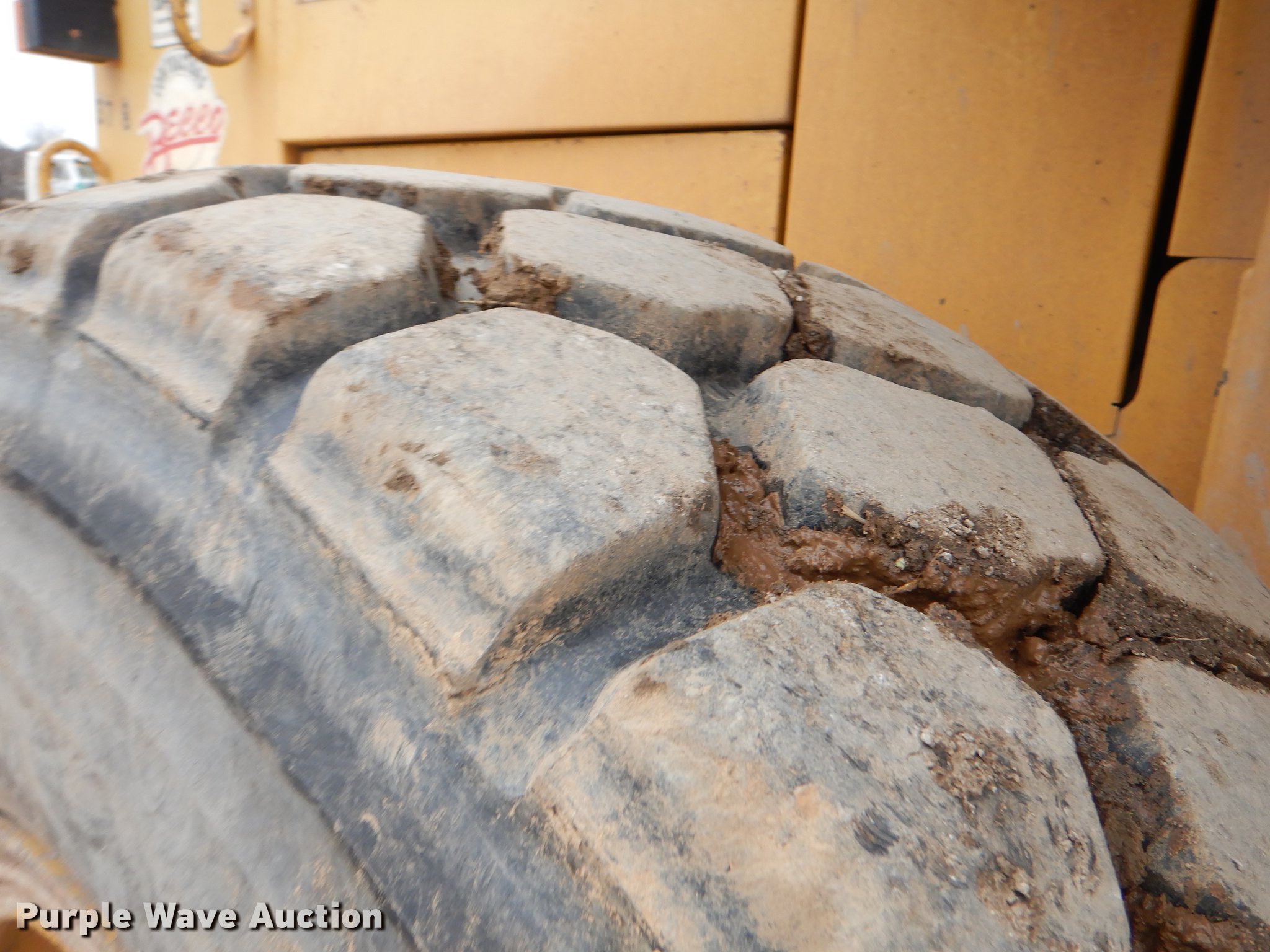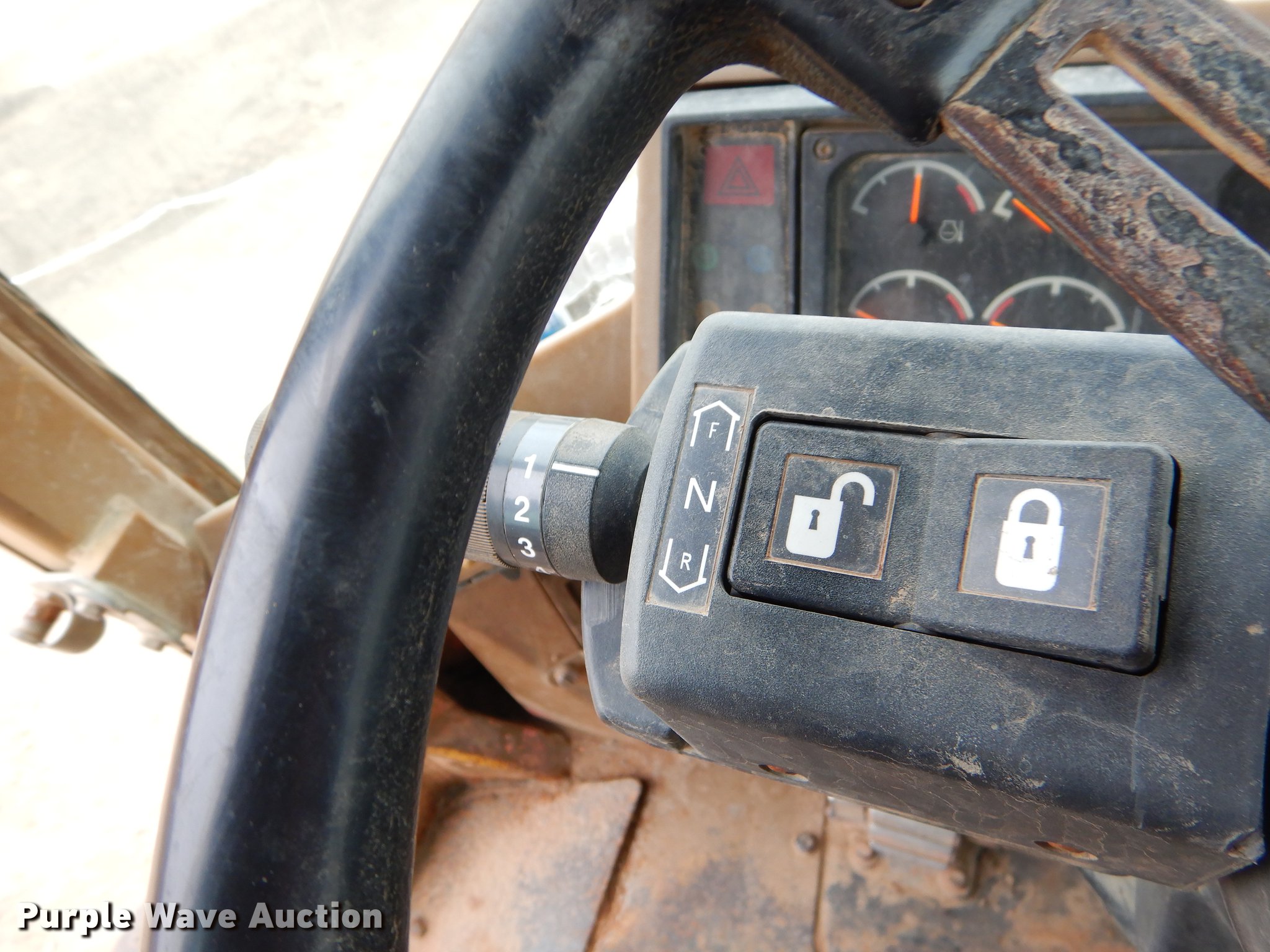 Purple Wave is selling a used Wheel Loader in Oklahoma. This item is a 1996 Caterpillar 938F wheel loader with the following: 2,504 hours on meter, Caterpillar six cylinder turbo diesel engine, Powershift transmission, 4F-4R gears, Enclosed cab, AC and heat, Air suspension seat, Joystick bucket controls, Front and rear work lights, 106"W general purpose bucket, Bolt-on cutting edge, 60"L pallet forks, Hydraulic quick coupler, 20.5-25 tires, Windshield cracked, Ladder broken, Serial 1KM02075, Unit# 378