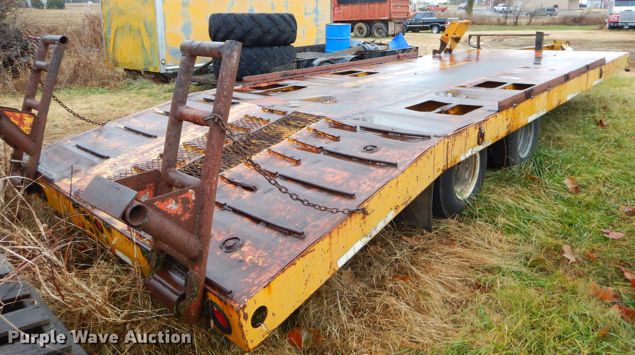 Purple Wave is selling a used Equip. Trailer in Oklahoma. This item is a Shop built equipment trailer with the following: 29' overall length, 24'L x 102"W steel deck, 33" floor height, 5'L dovetail, 40"L ramps, 12 ton capacity, Pintle hitch, Single leg landing gear, Spring suspension, Electric brakes, Tandem axle, Steel wheels, 7.50-16 tires