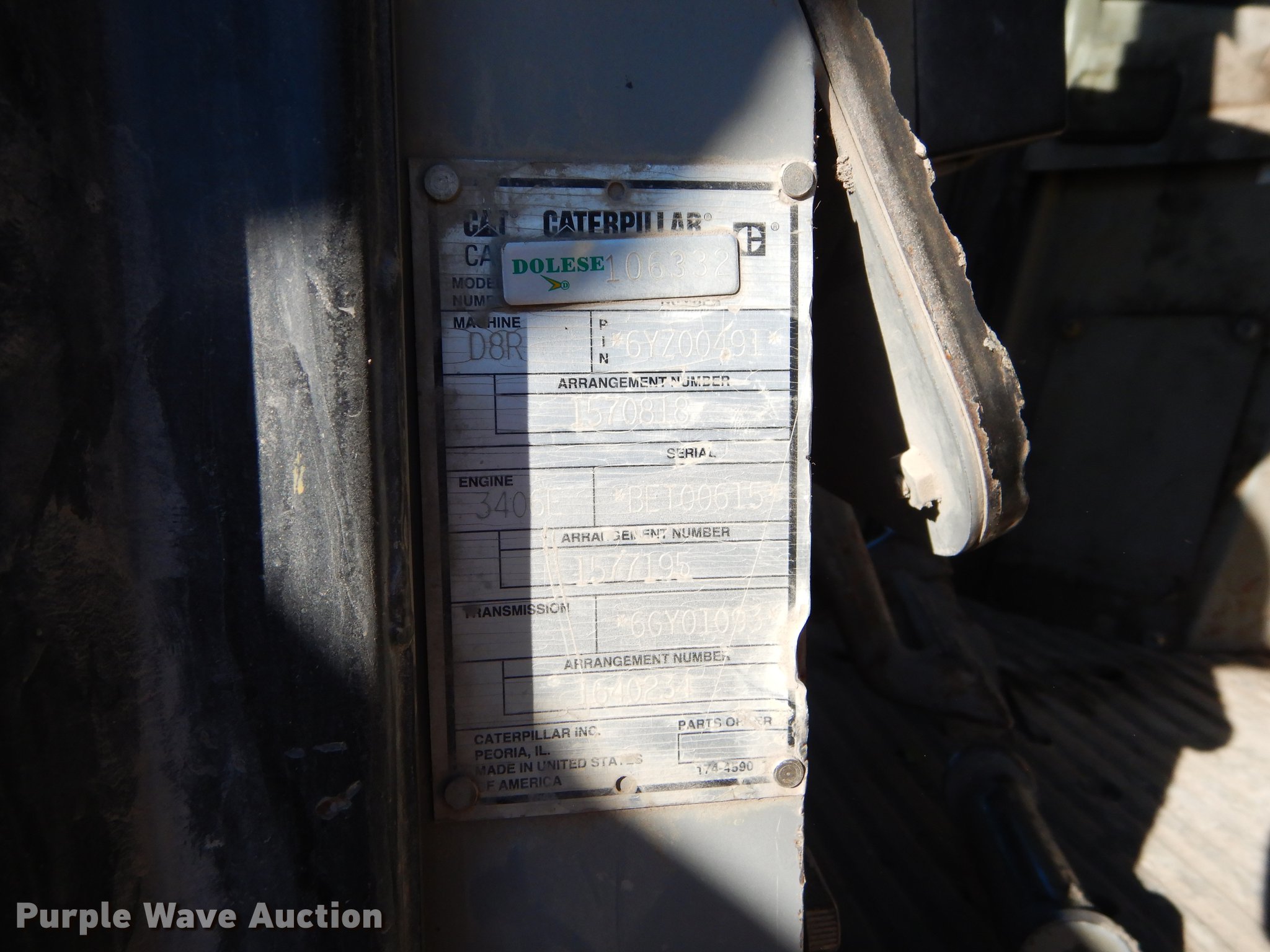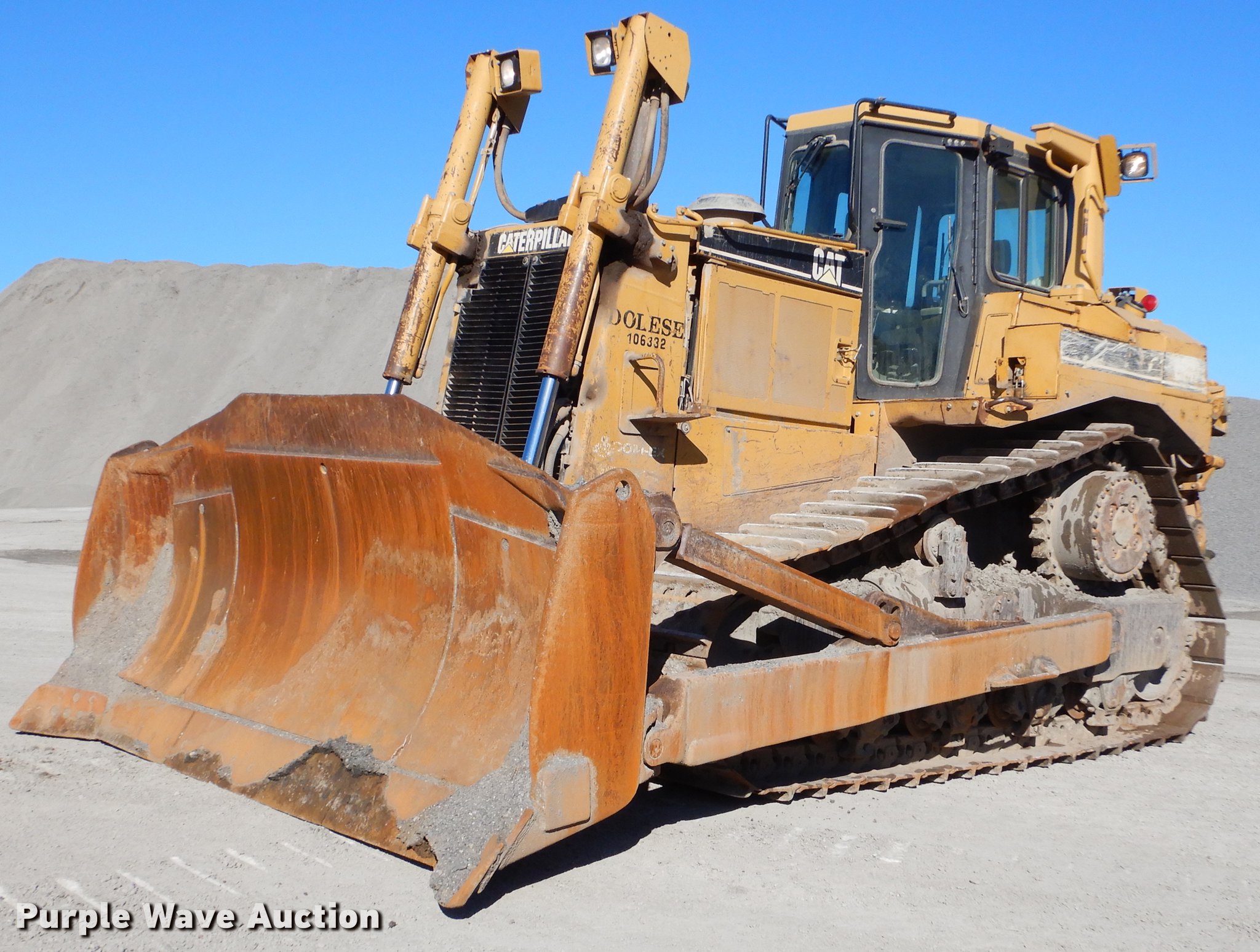 Purple Wave is selling a used Crawler Dozer in Oklahoma. This item is a 2001 Caterpillar D8R Series II dozer with the following: 14,154 hours on meter, Caterpillar six cylinder turbo diesel engine, Hydrostatic transmission, Cab, AC and heat, Suspension seat, Joystick control steering, EMS panel, Front and rear wipers, Front and rear work lights, 148" six-way dozer blade, Caterpillar D8SS ripper, (1) shanks, Eight bottom rollers, 24"W single grouser tracks, Engine rebuilt at 12,020 hours, Transmission rebuilt at 5,623 hours, Left tracks replaced at 12,751 hours, Right tracks replaced at 13,172 hours, Serial 6YZ00491, Unit# 106332