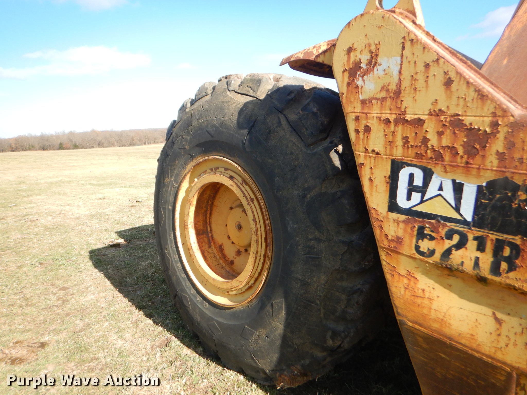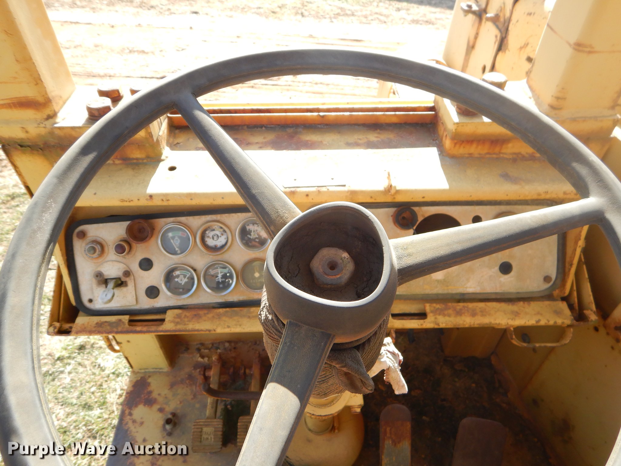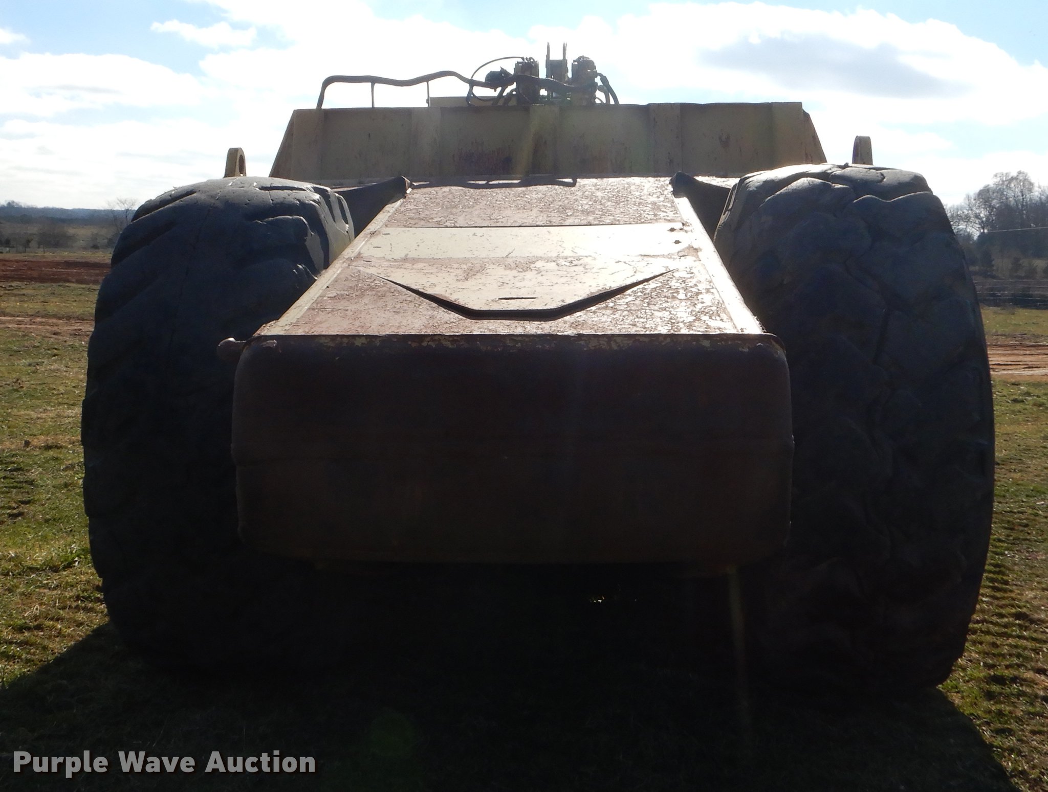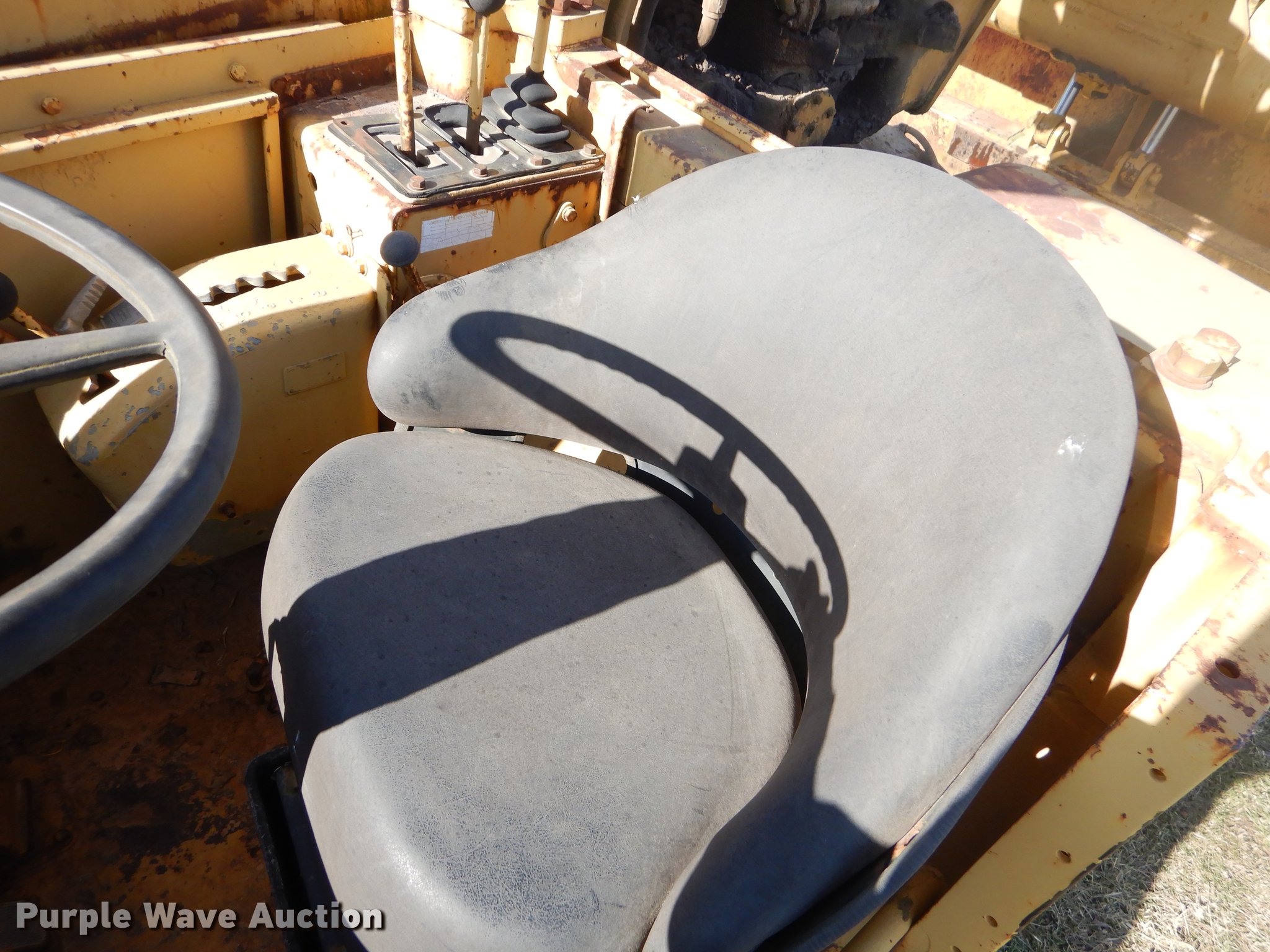 Purple Wave is selling a used Conventional Scraper in Missouri. This item is a Caterpillar 621B conventional scraper with the following: 6,570 hours on meter, Caterpillar six cylinder diesel engine, Manual transmission, 8F-1R gears, OROPS, Suspension seat, Three lever scraper controls, 19 cu.yd. bowl capacity, Reversible cutting edge, Hydraulic lift, Front and rear work lights, Rear push block, Cushion hitch, 29.5-29 tires, Lip and steering cylinders leak, Non-operational brakes, Serial 35V1041