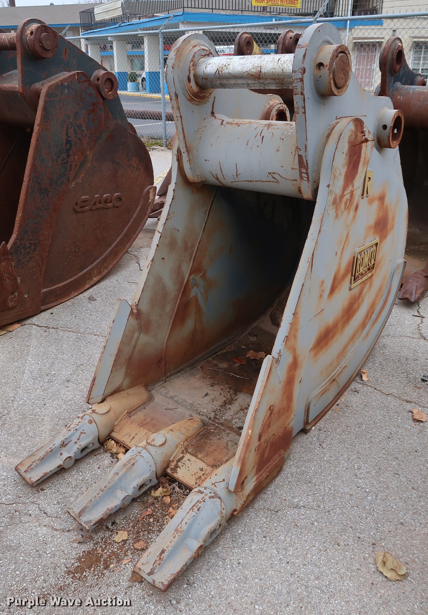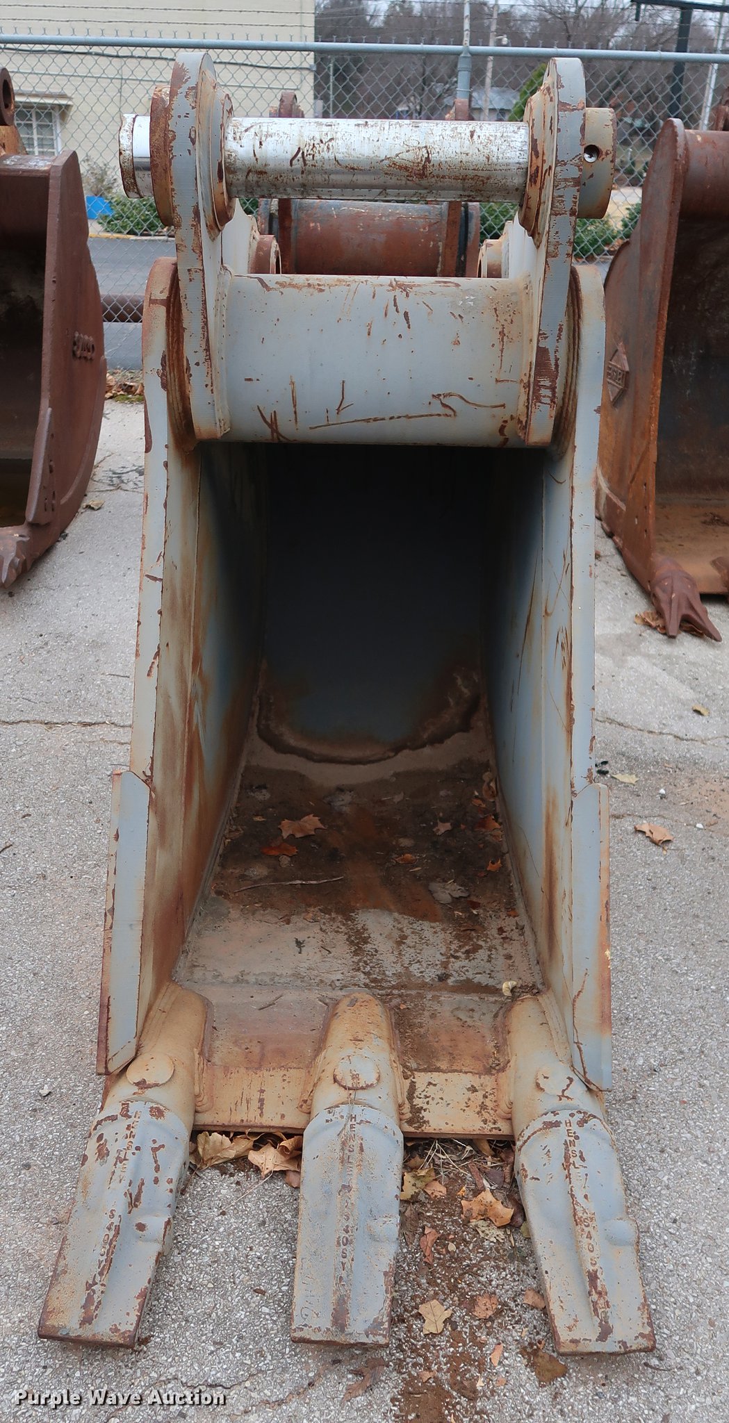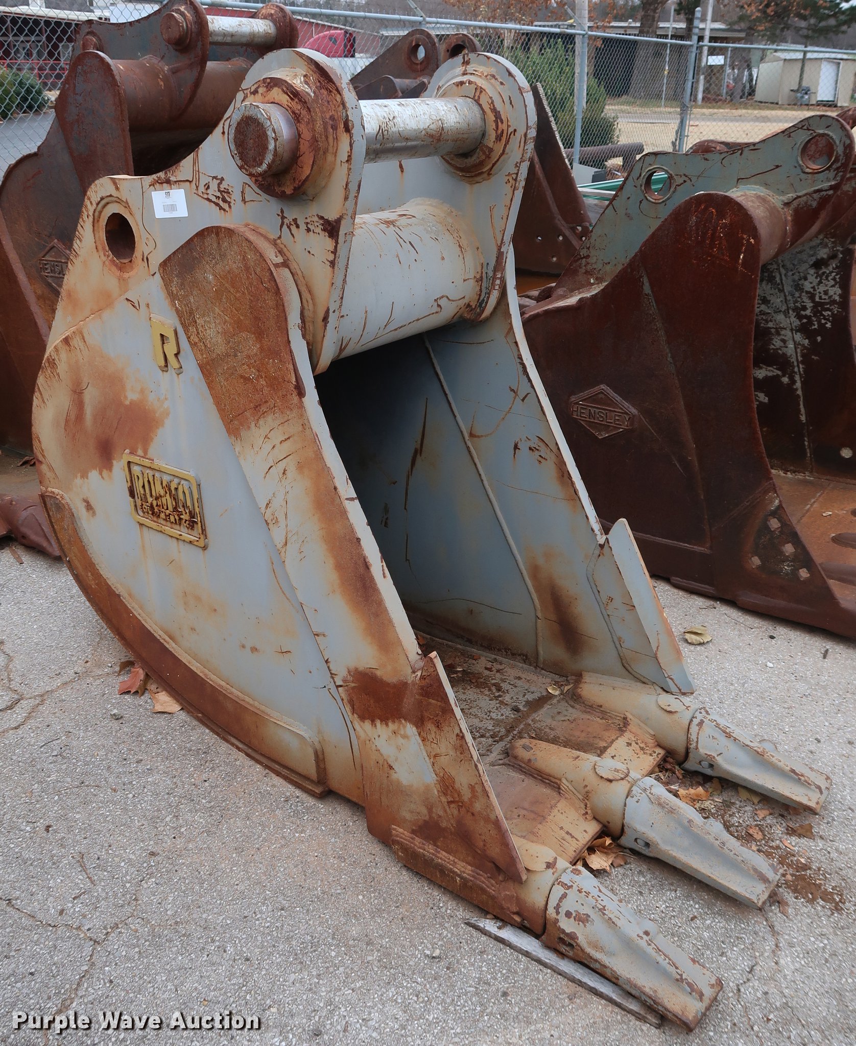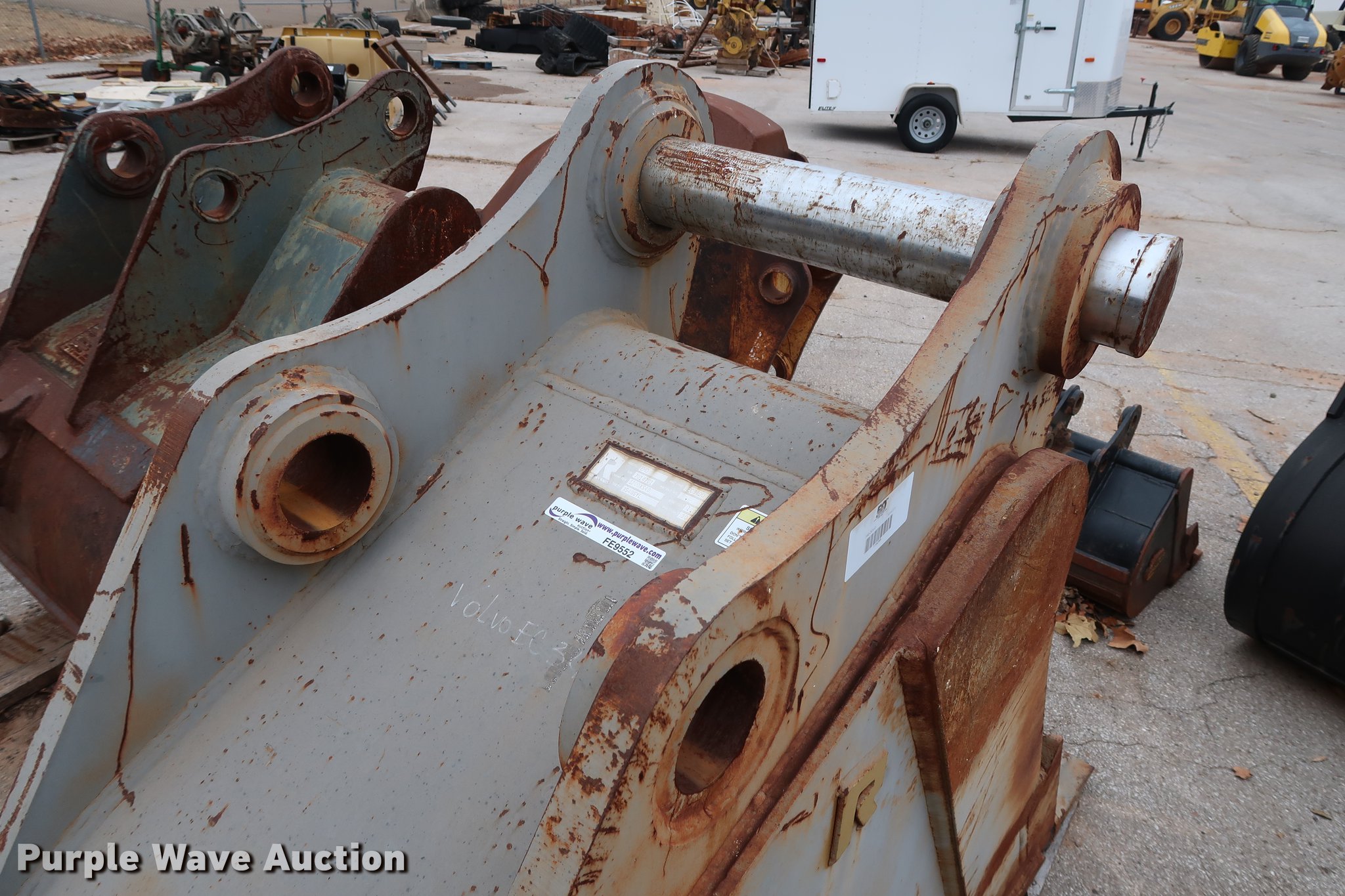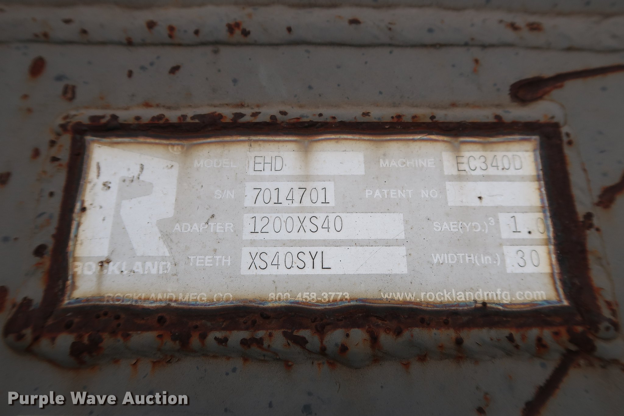 Purple Wave is selling a used Excavator Attach. in Oklahoma. This item is a Rockland 30"W excavator bucket with the following: (3) bolt-on teeth, One cu.yd. capacity, Side cutters, 15.5"W mount clearance, 4" pin diameter, Fits Volvo EC340, Serial 7014701