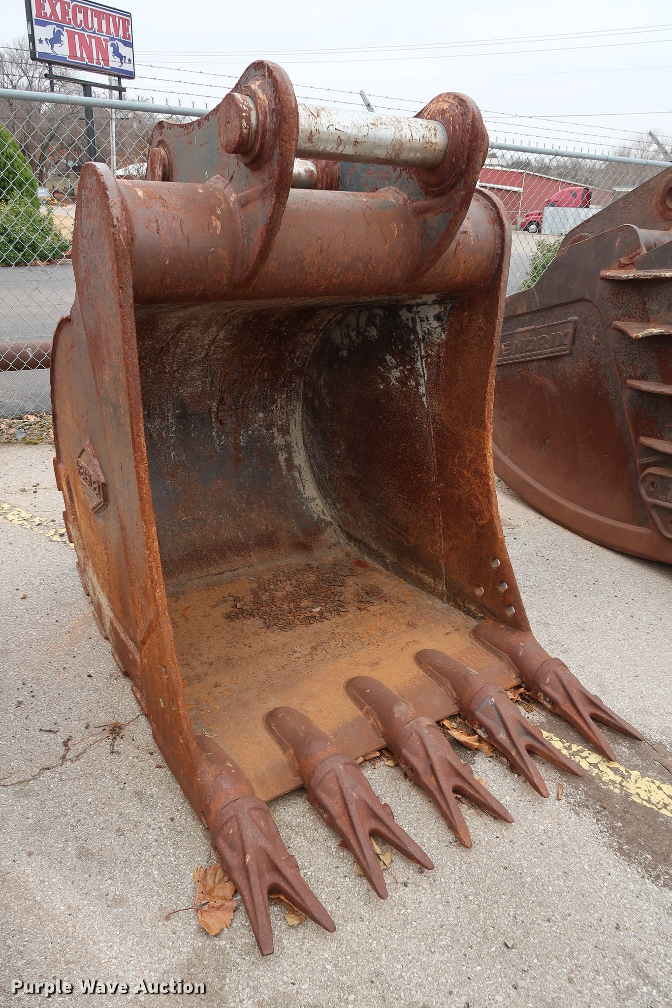 This Hensley 48"W excavator bucket will sell to the highest bidder regardless of price.