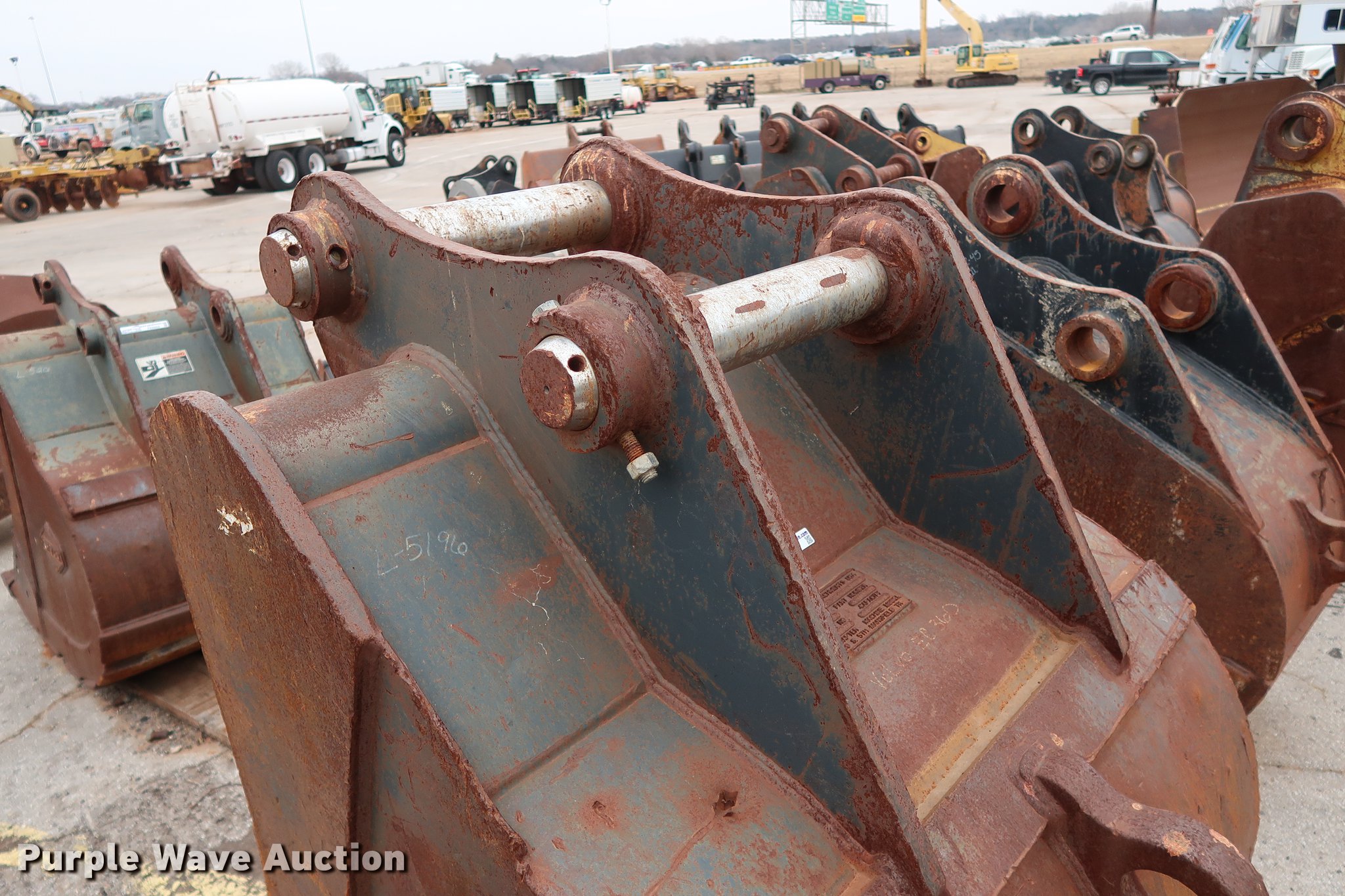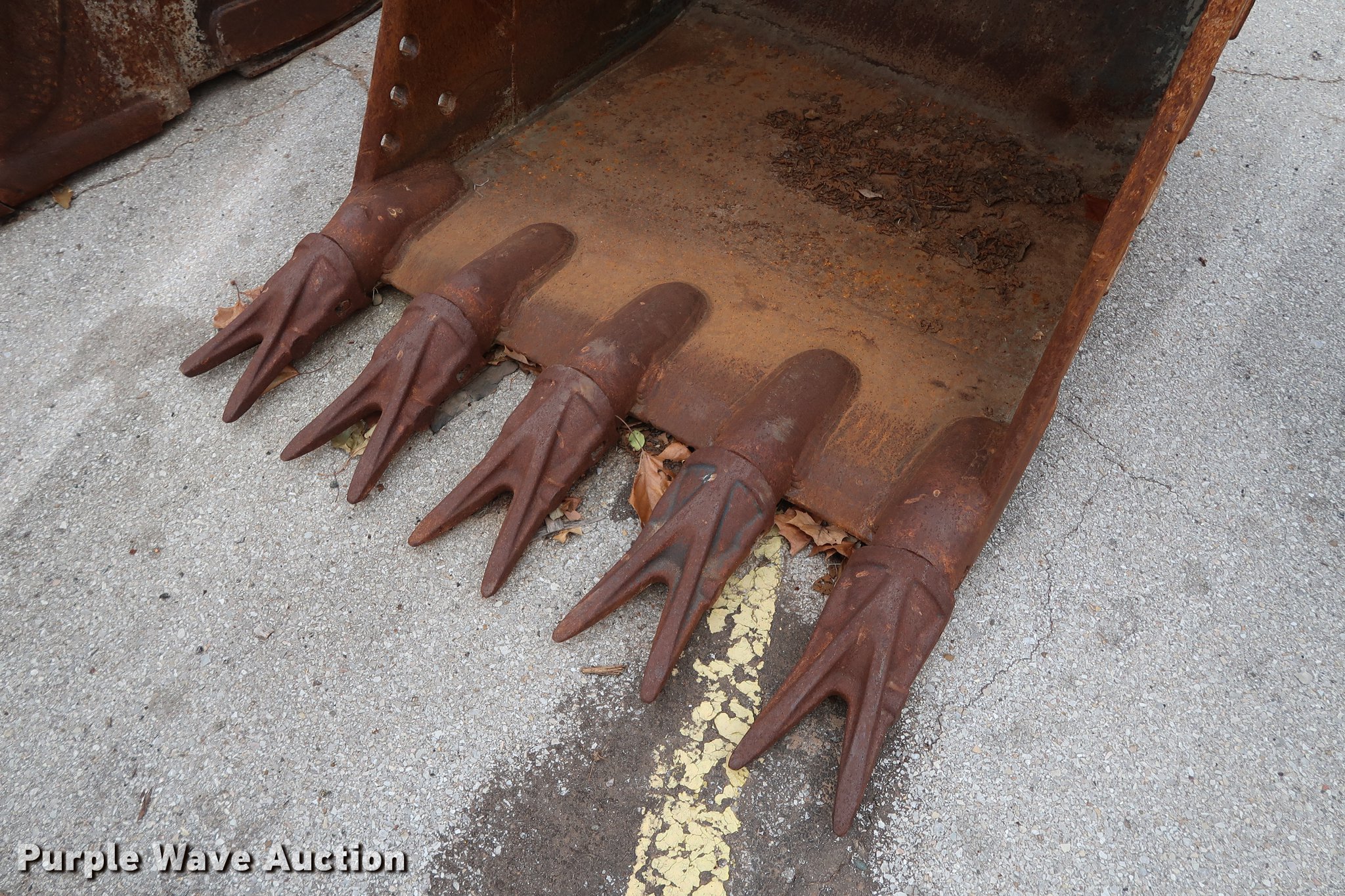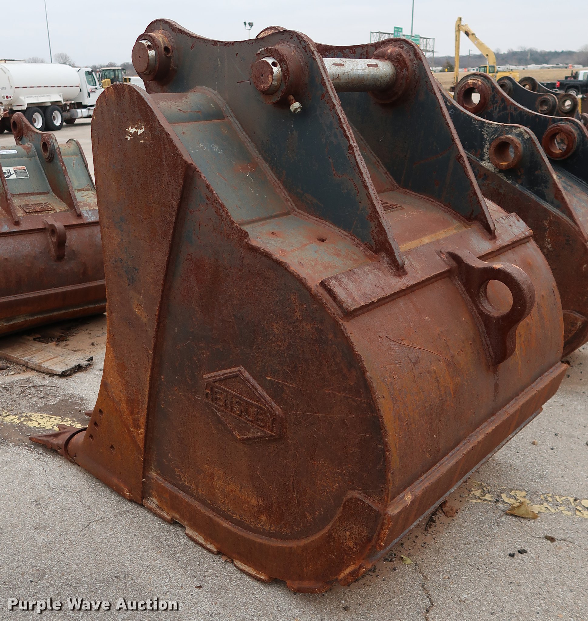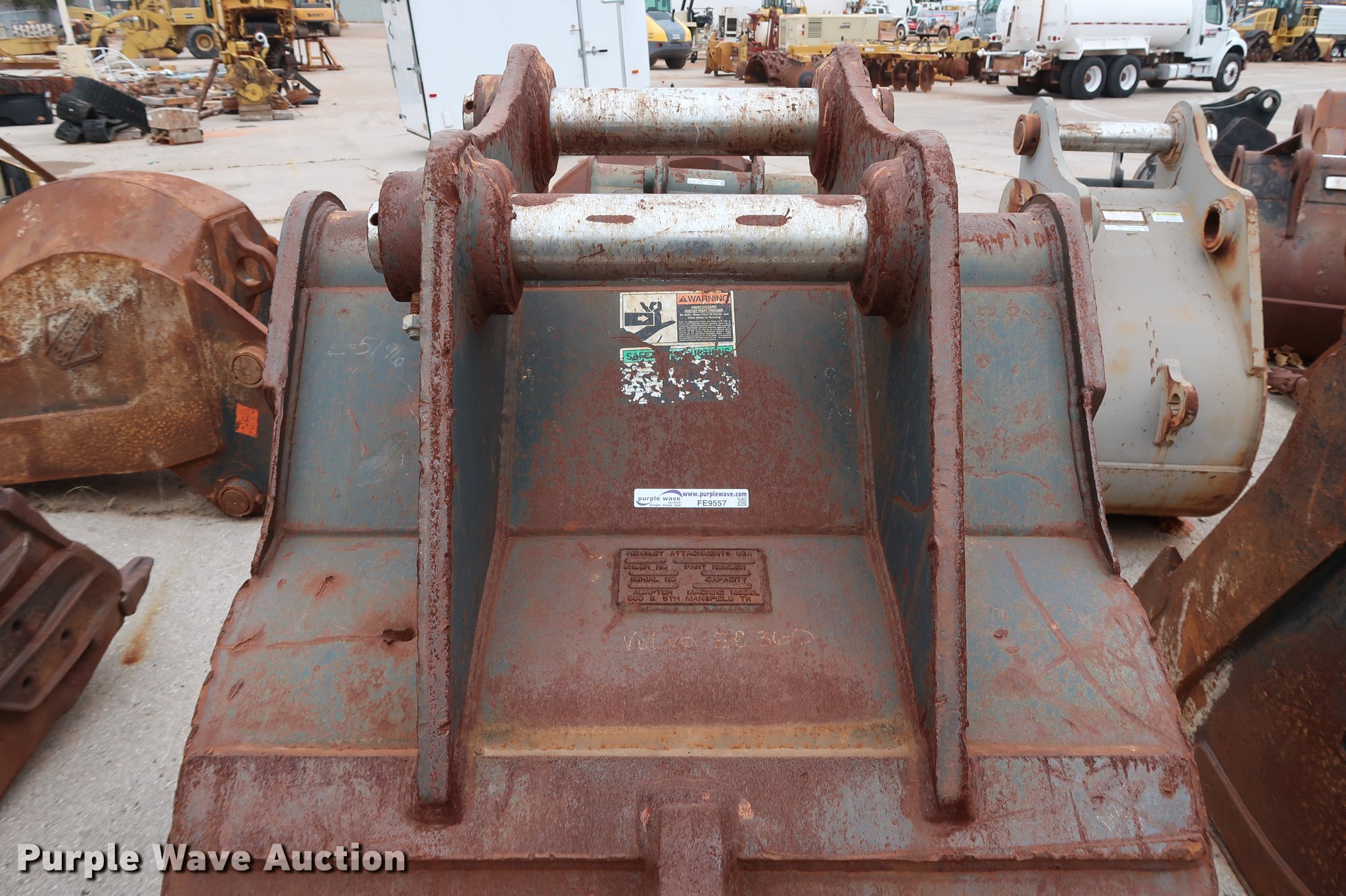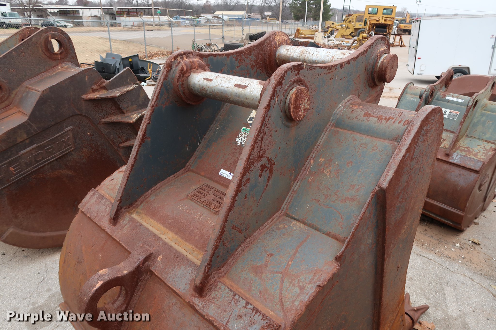 Purple Wave is selling a used Excavator Attach. in Oklahoma. This item is a Hensley 48"W excavator bucket with the following: (5) bolt-on teeth, 2.22 cu.yd. capacity, 4" pin diameter, 15.5"W mount clearance, Fits Volvo EC360 excavator, Serial K115025