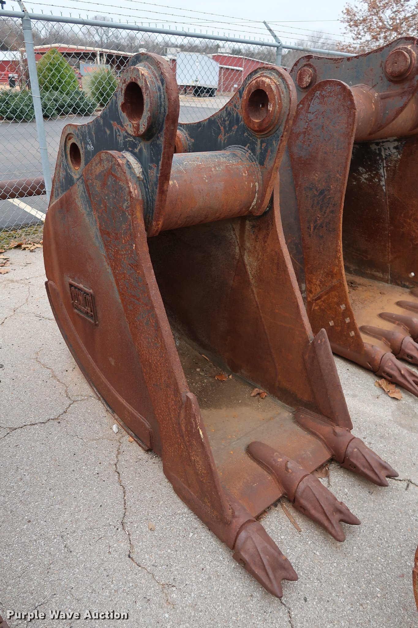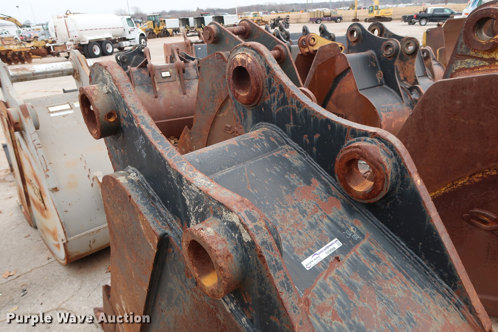 Purple Wave is selling a used Excavator Attach. in Oklahoma. This item is a Romco 30"W excavator bucket with the following: (3) bolt-on teeth, 4" pin diameter, 17"W mount clearance