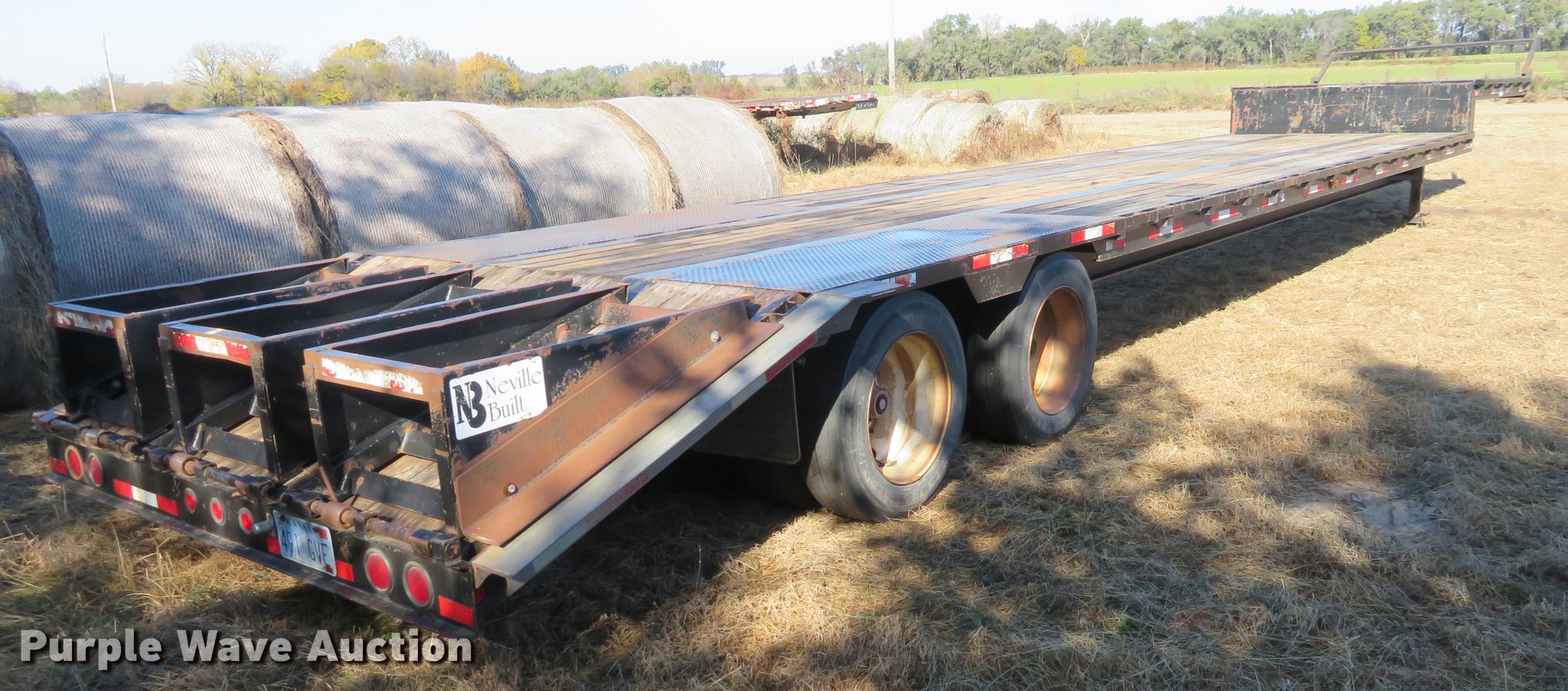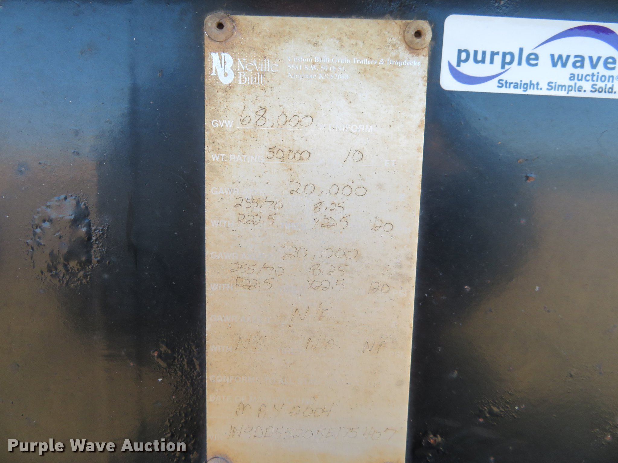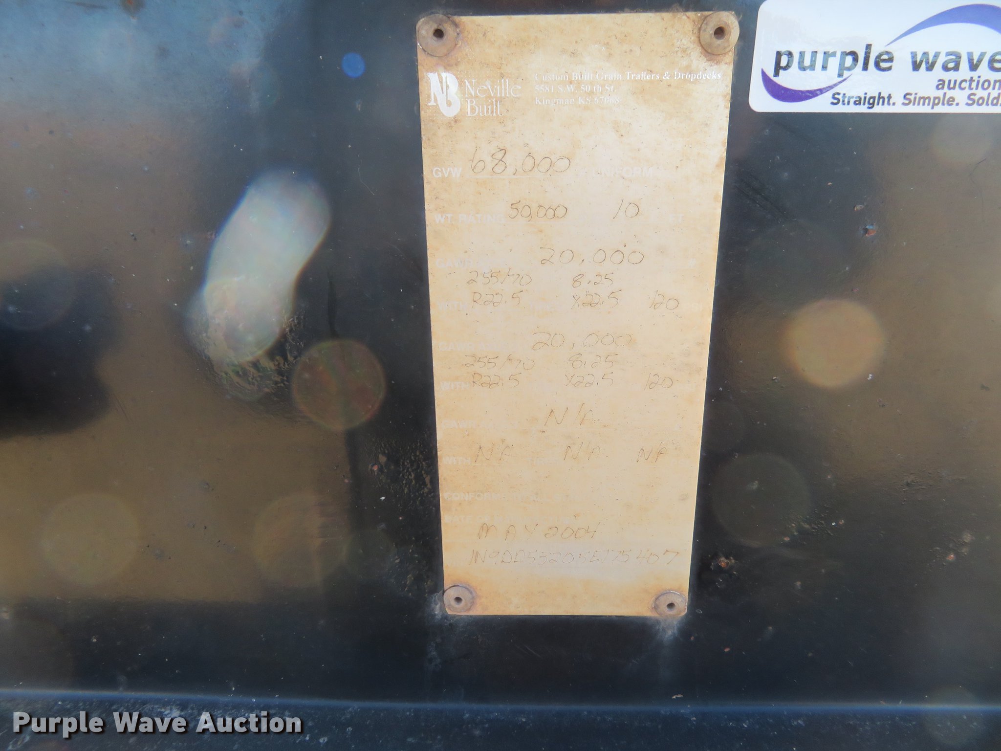 Purple Wave is selling a used Equip. Trailer in Kansas. This item is a 2005 Neville Built drop deck equipment trailer with the following: 135"L top deck, 36.5'L x 102"W deck, 5'L dovetail, (3) ramps, Fifth wheel plate, 255/70R22.5 tires, GVWR 68,000 lbs