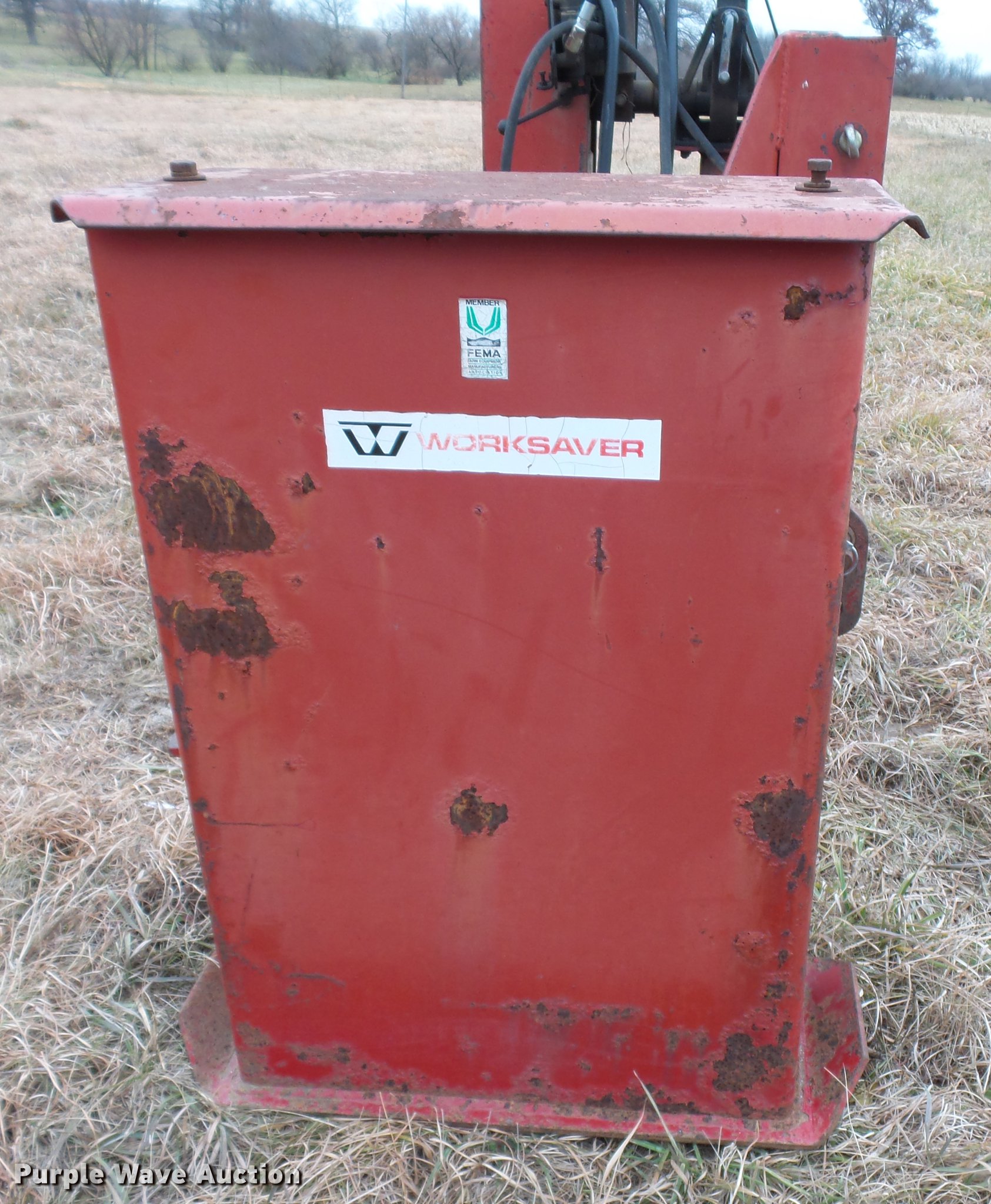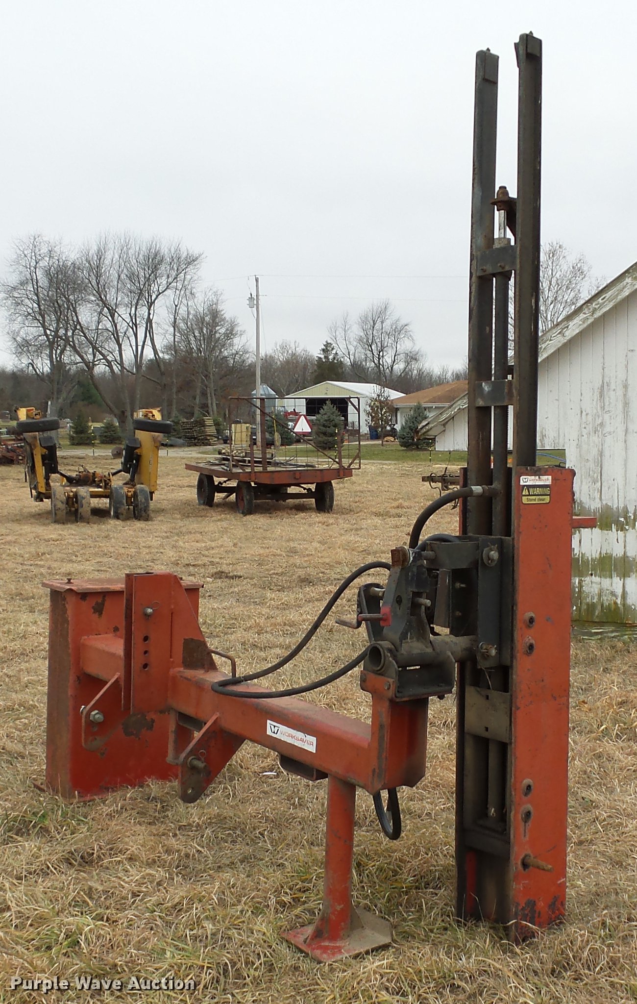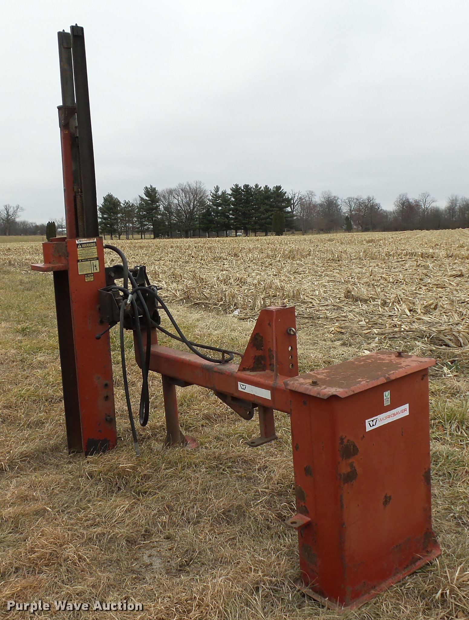 Purple Wave is selling a used Ag Equip. Other in Illinois. This item is a Work Saver post driver with the following: 8" post capacity, One lever operation, Manual horizontal and vertical adjustment, Hydraulic driven, Three point