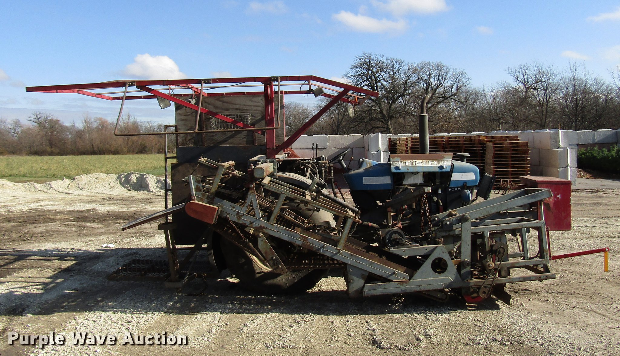 Purple Wave is selling a used Tractor in Illinois. This item is a Ford 3930 tractor with Texas sod harvester with the following: 3,279 hours on meter, Four cylinder diesel engine, Serial JD779252-8D22, Manual transmission, 8F-2R gears, 2001 Texas sod harvester, 24"W cut sod roll harvester, Adjustable cut speed, Adjustable conveyor speed, 24" conveyor chain, 74"L rear pallet forks, 11L-15 front tires, 19.5L-24 rear tires, Serial 101377D