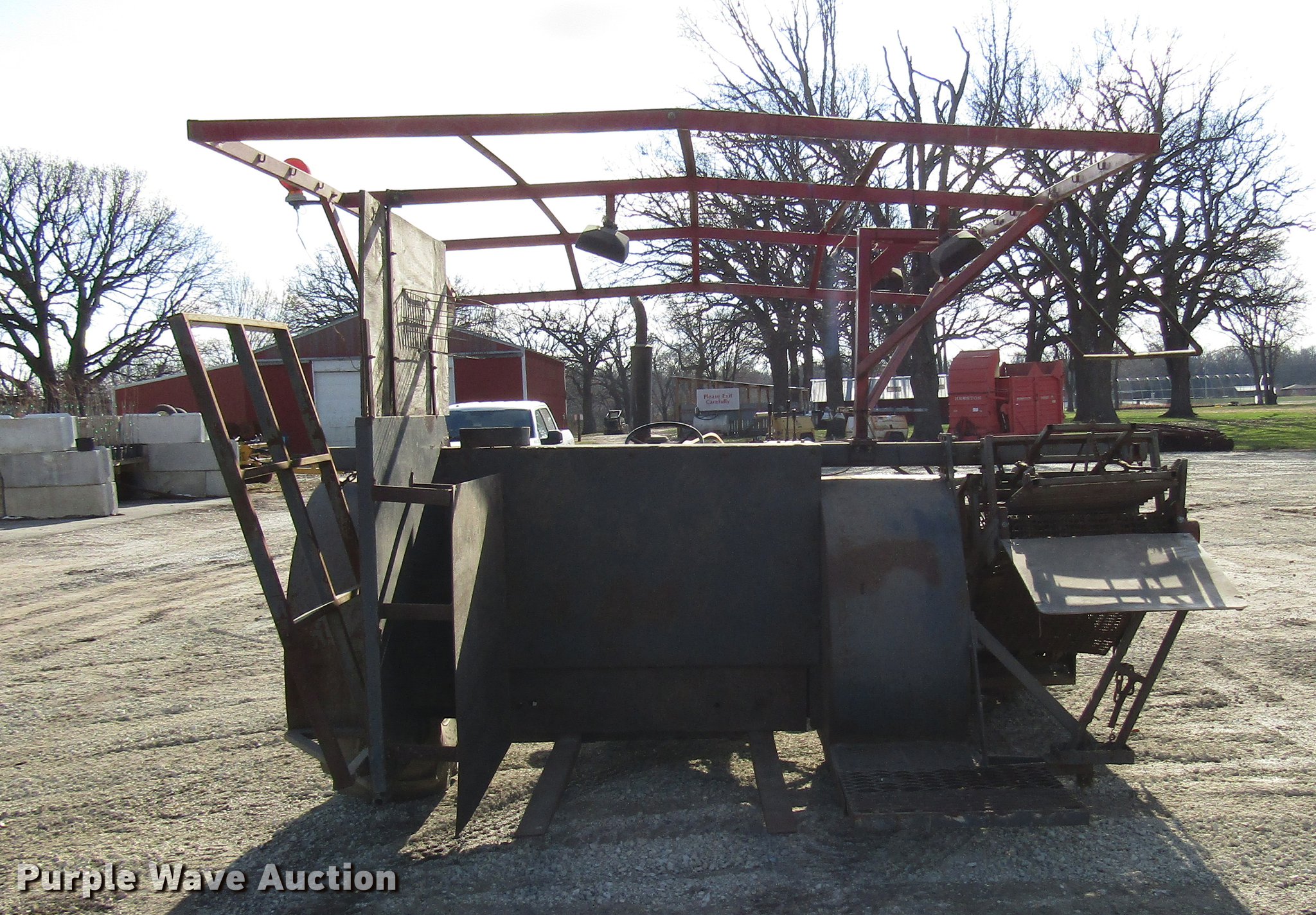 Ford 3930 tractor with Texas sod harvester. 3,279 hours on meter, Four cylinder diesel engine Serial JD779252-8D22, Manual transmission 8F-2R gears, 2001 Texas sod harvester 24"W cut sod roll harvester, Adjustable cut speed, Adjustable conveyor speed, 24" conveyor chain, 74"L rear pallet forks, 11L-15 front tires, 19.5L-24 rear tires, Serial 101377D. Central Sod Farms Inc.. Minooka, IL 60447
