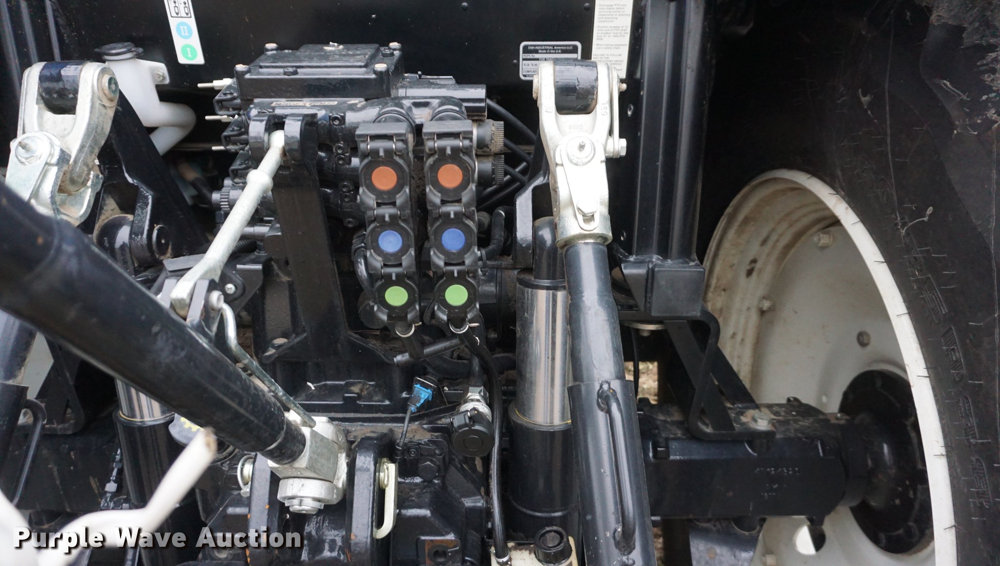 Purple Wave is selling a used Tractor in Kansas. This item is a 2015 New Holland T6.155 MFWD tractor with the following: 432 hours on meter, FPT 6.7L six cylinder turbo diesel engine, 125 HP, Autoshift transmission, 16F-16R gears, Left-hand reverser, AC and heat, Tilt steering wheel, AM/FM, Air suspension seat, Instructor's seat, Shade, New HOlland 845TL loader, 84"W bucket, Bale spear, Quick attach, Joystick controls, Three point, Top link, Seven pin outlet, 540/1000 PTO, (3) rear hydraulic remote sets, (3) wheel weights, 380/85R28 front tires, 460/85R38 rear tires, Serial ZFBD02534