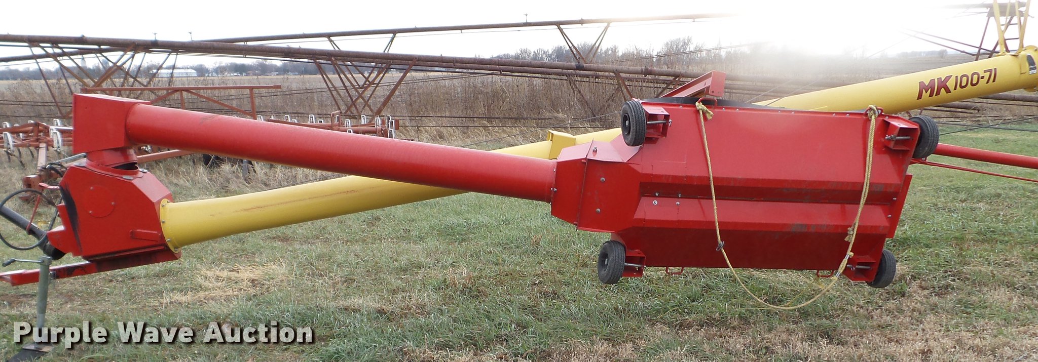 Purple Wave is selling a used Auger or Conveyor in South Dakota. This item is a Westfield MK100-71 auger with the following: 71'L x 8" diameter auger, Manual lift, 10.5'W swing-out hopper, 540 PTO, Pin hitch, 9.5-15 tires, Serial 229989