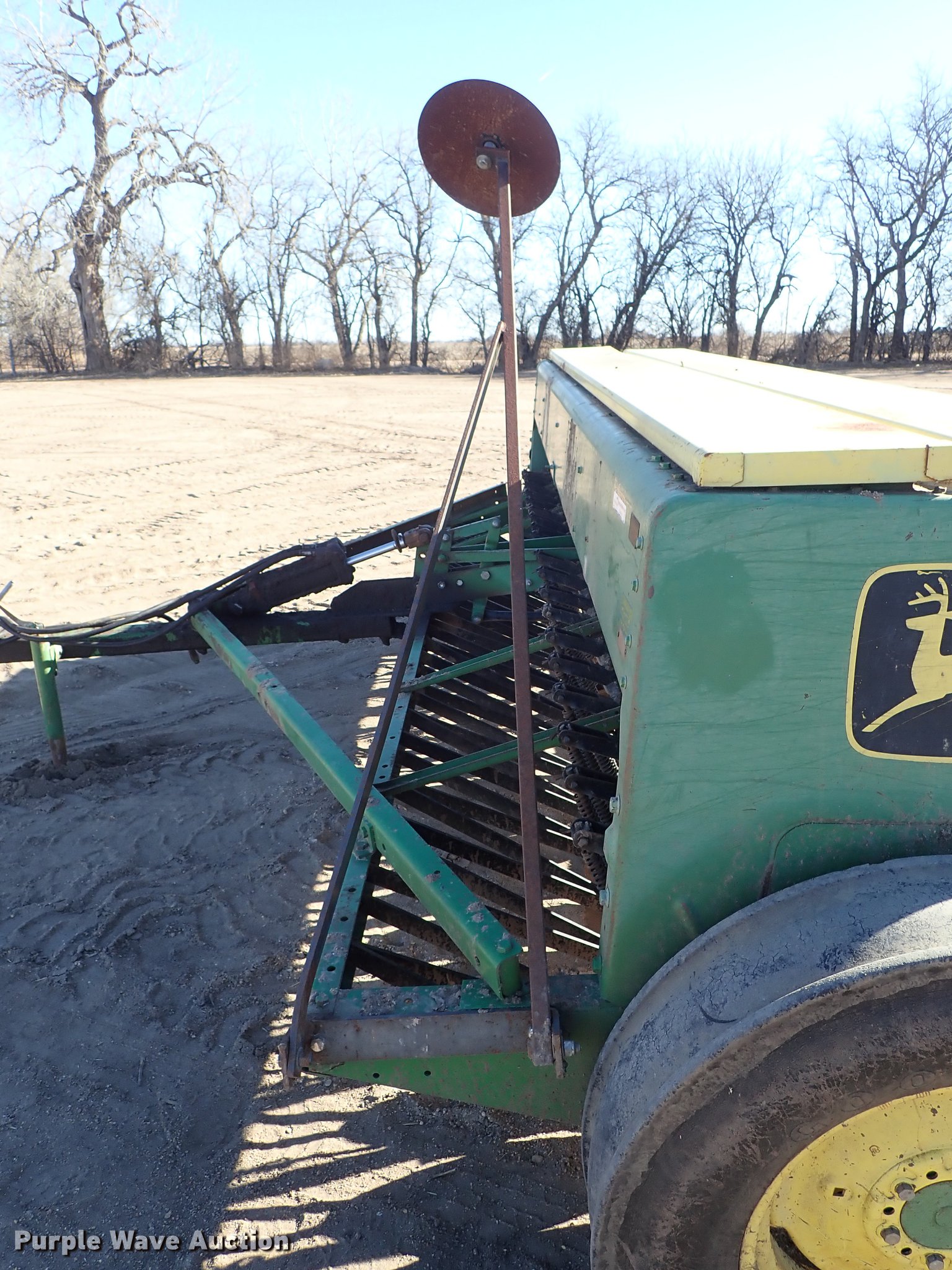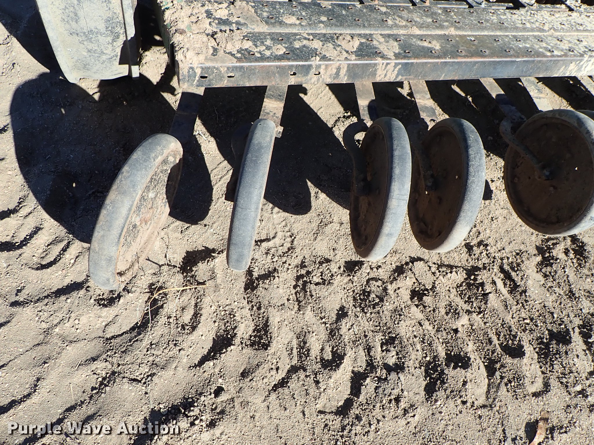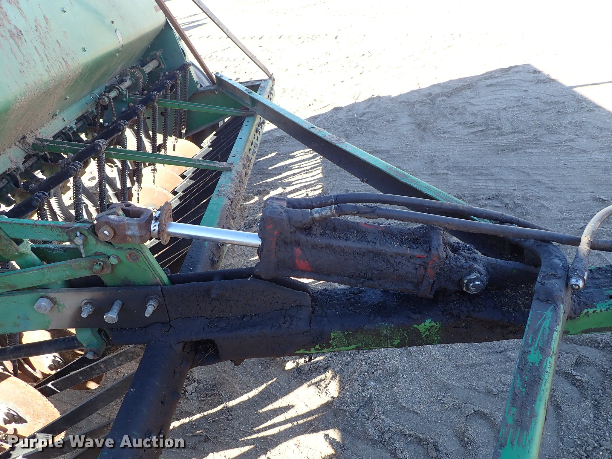 Purple Wave is selling a used Grain Drill or Seeder in Kansas. This item is a John Deere 8350 grain drill with the following: 20 row units, 8" row spacing, Marker arm, Hydraulic lift, Single disk closing system, Rubber press wheels, 7.50-20 tires
