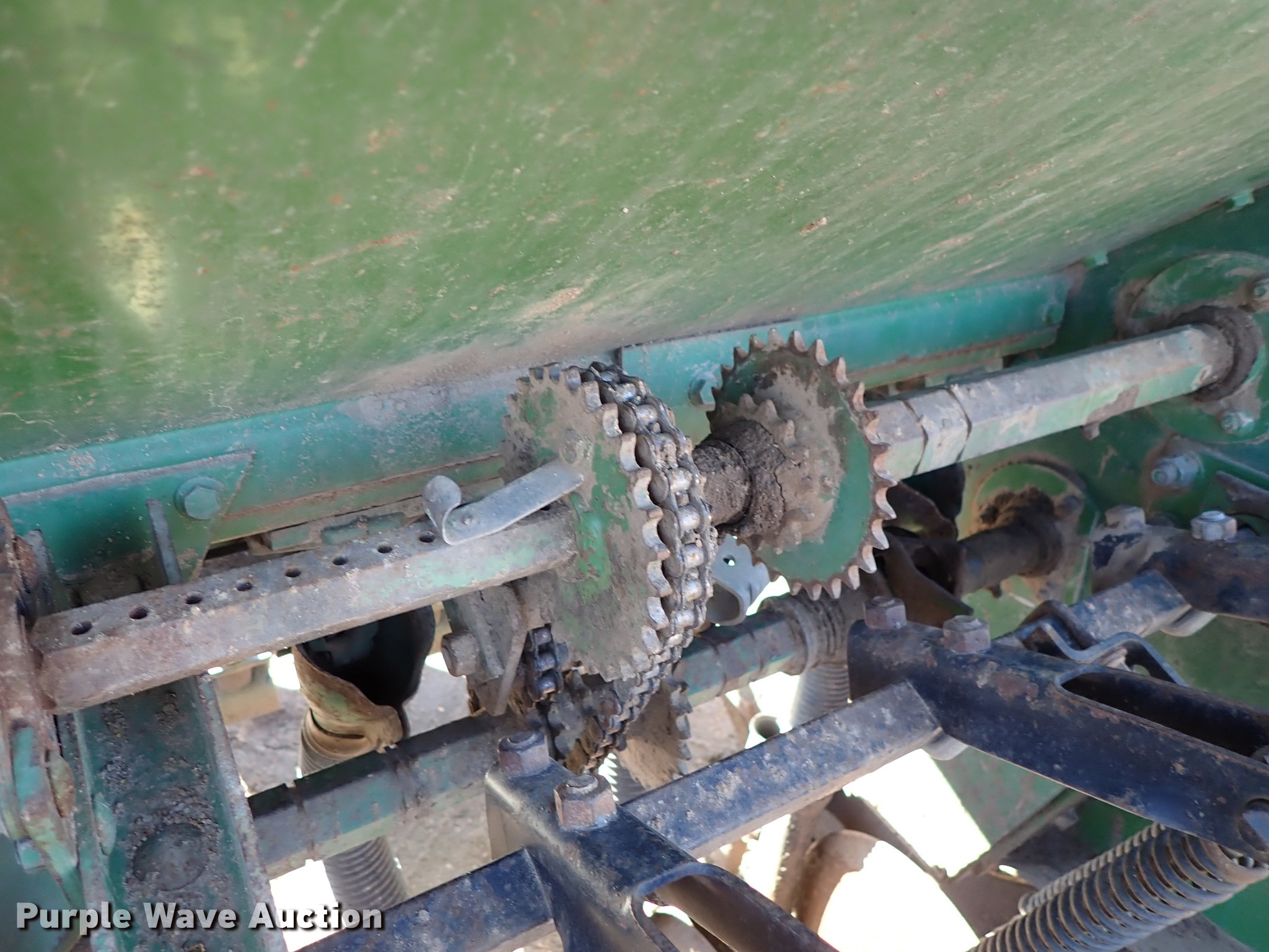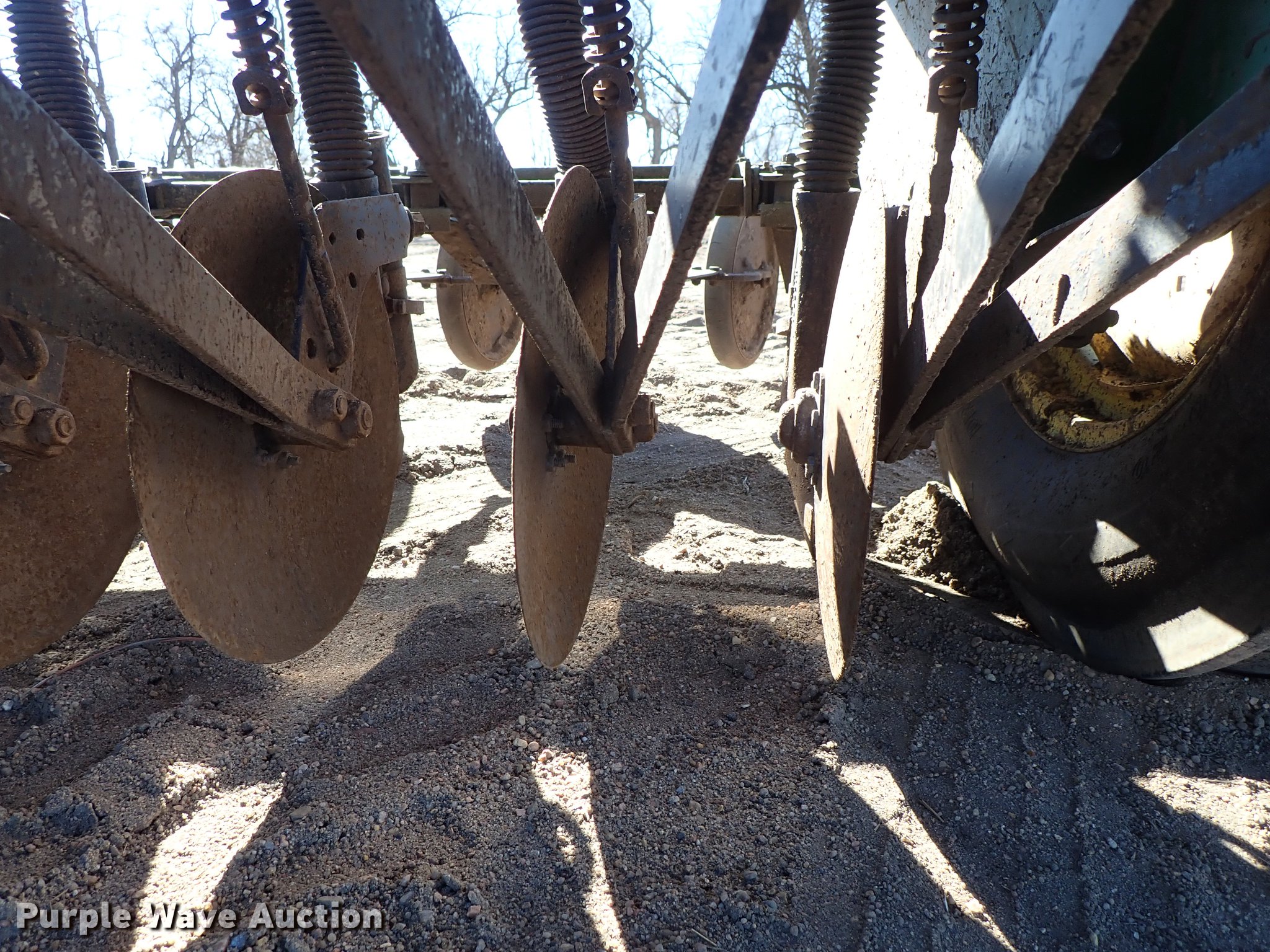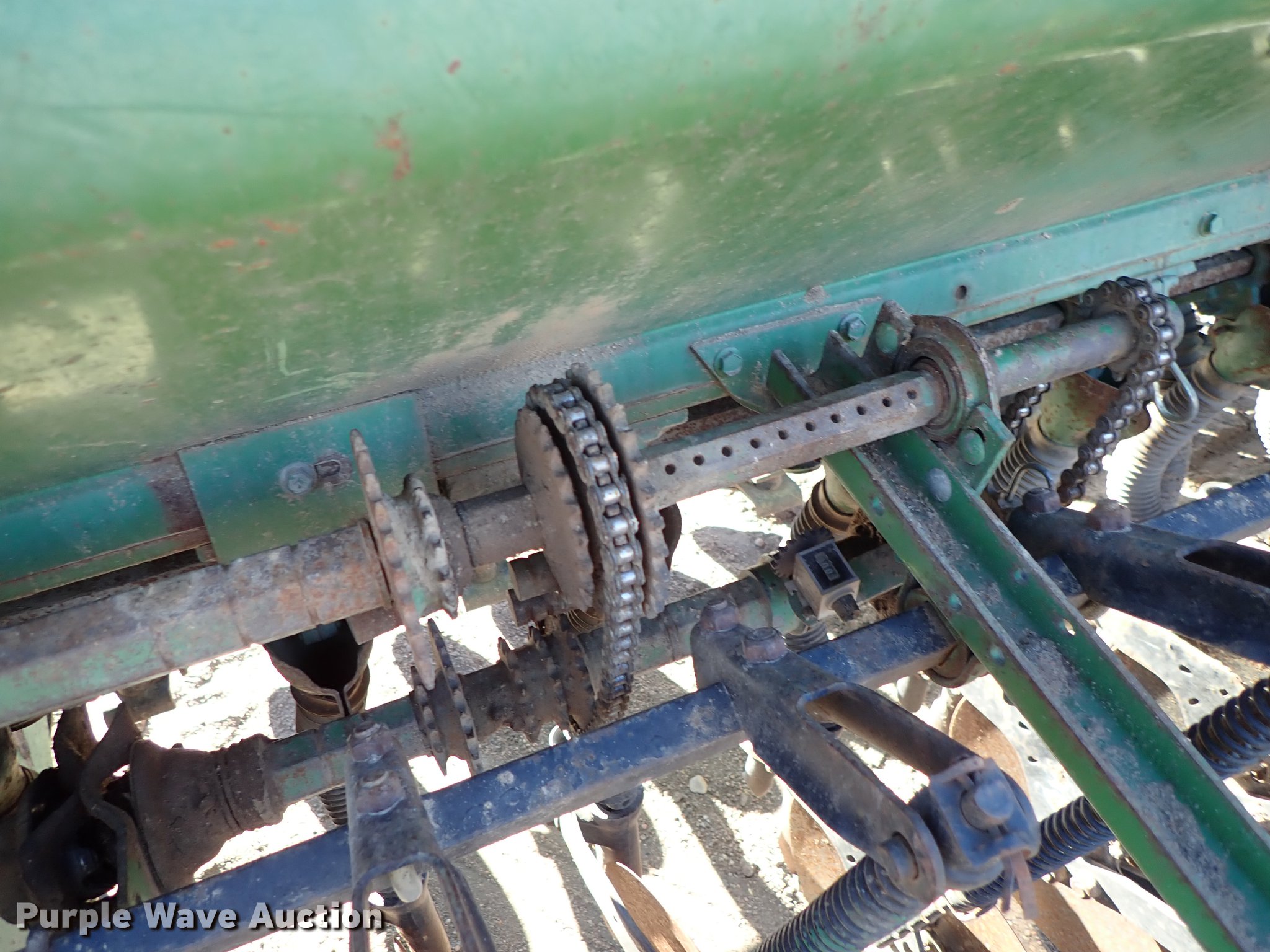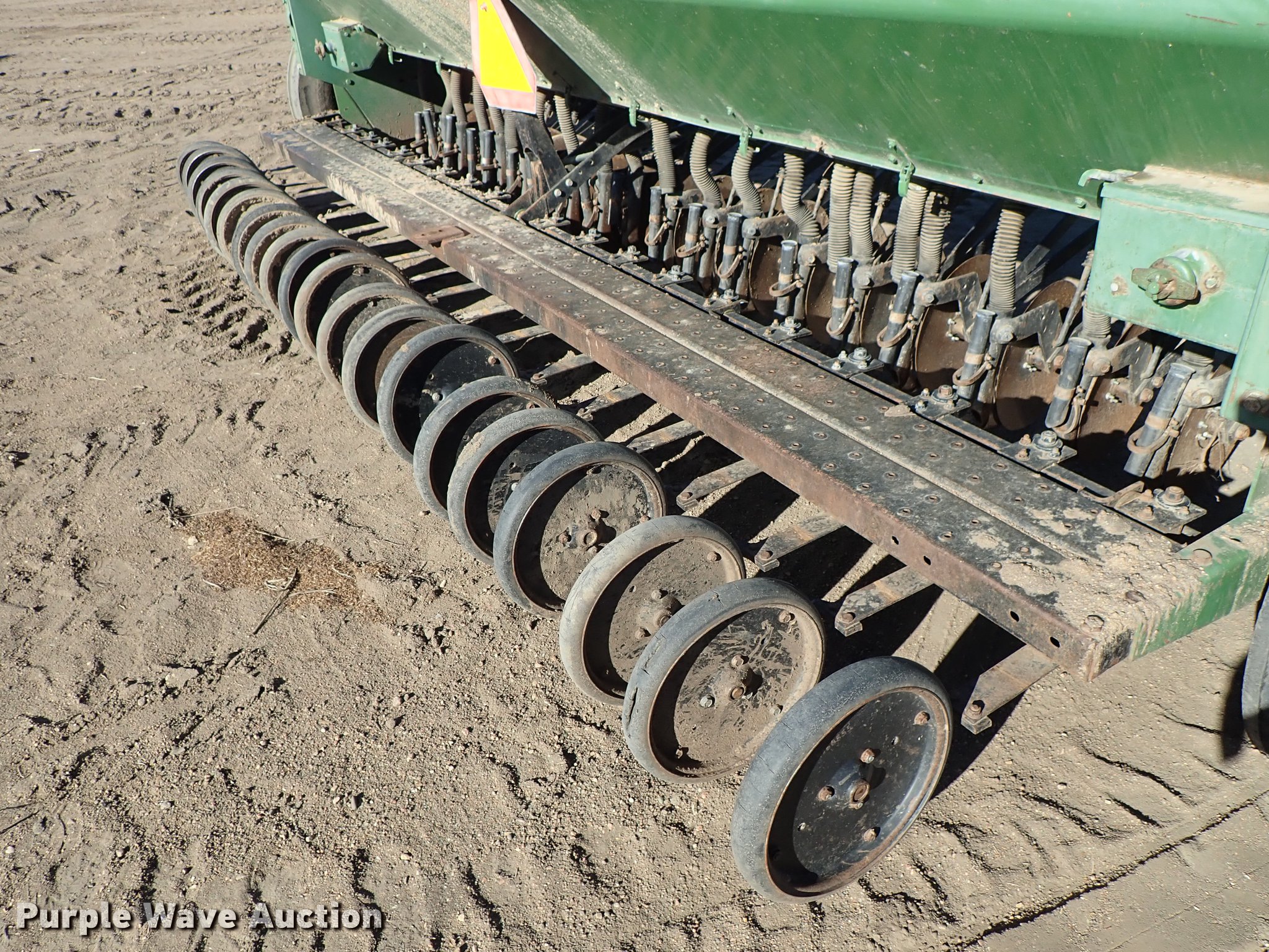 Purple Wave is selling a used Grain Drill or Seeder in Kansas. This item is a John Deere 8350 grain drill with the following: 20 row units, 8" row spacing, Marker arm, Hydraulic lift, Single disk closing system, Rubber press wheels, 7.50-20 tires