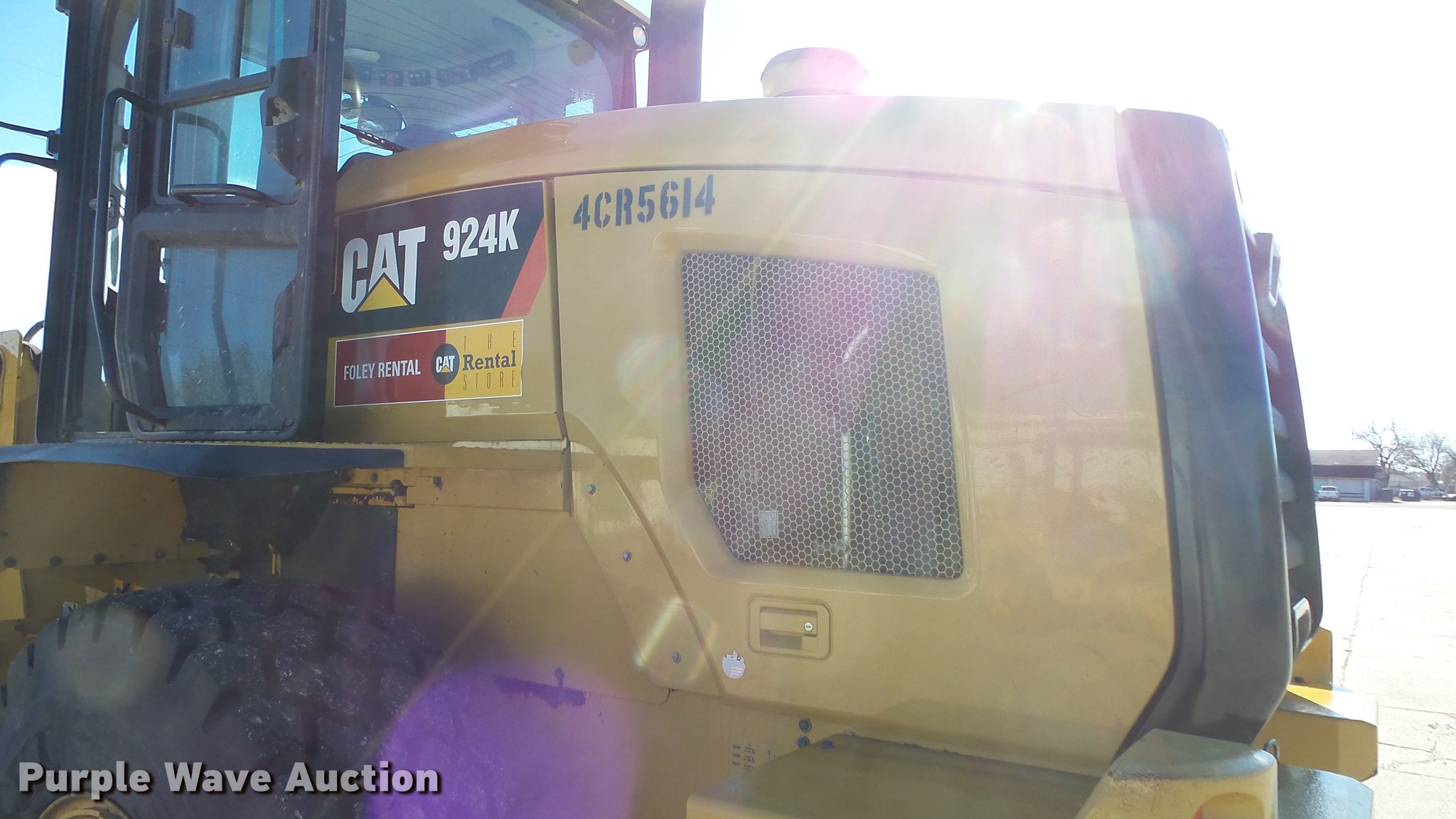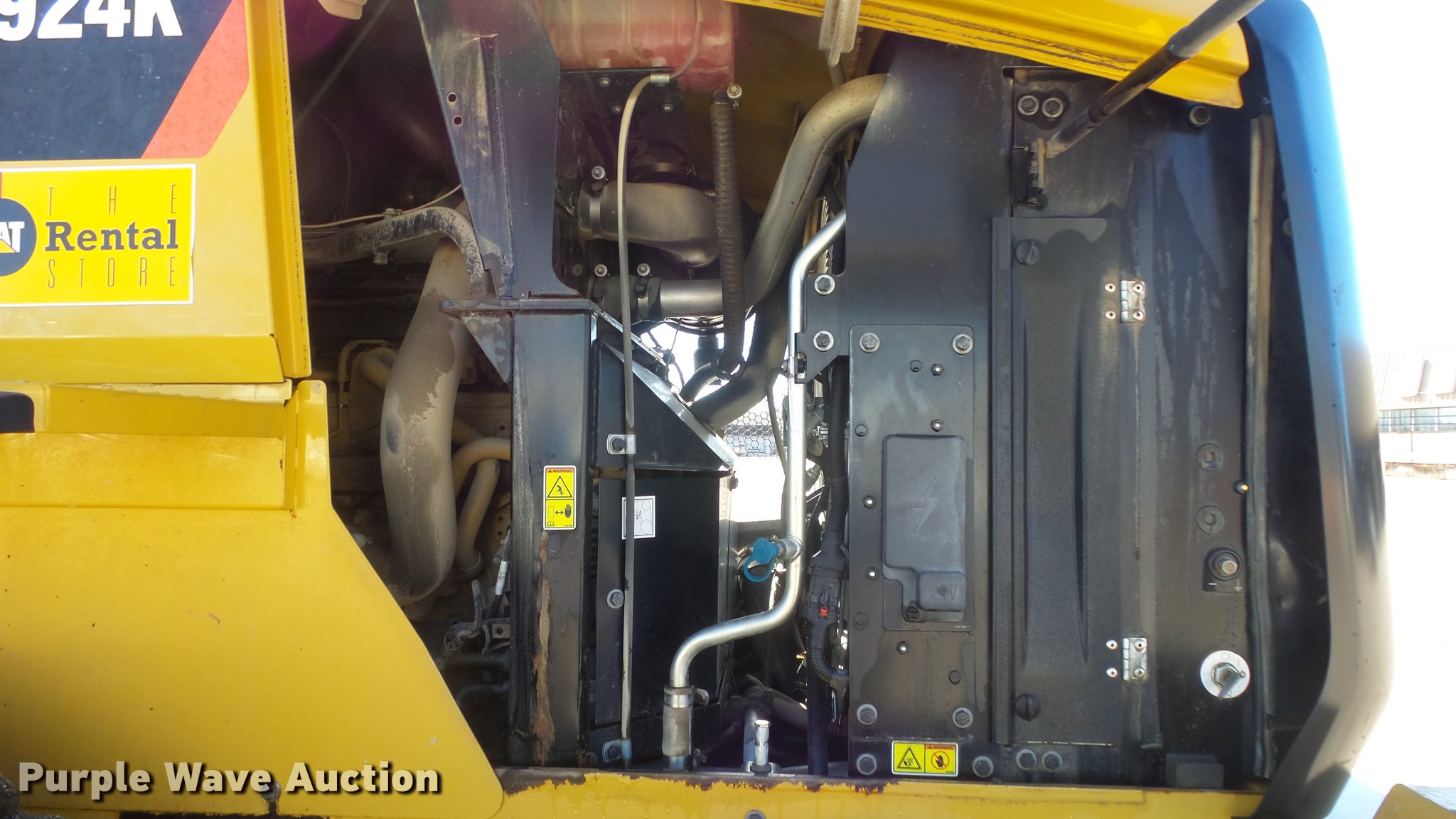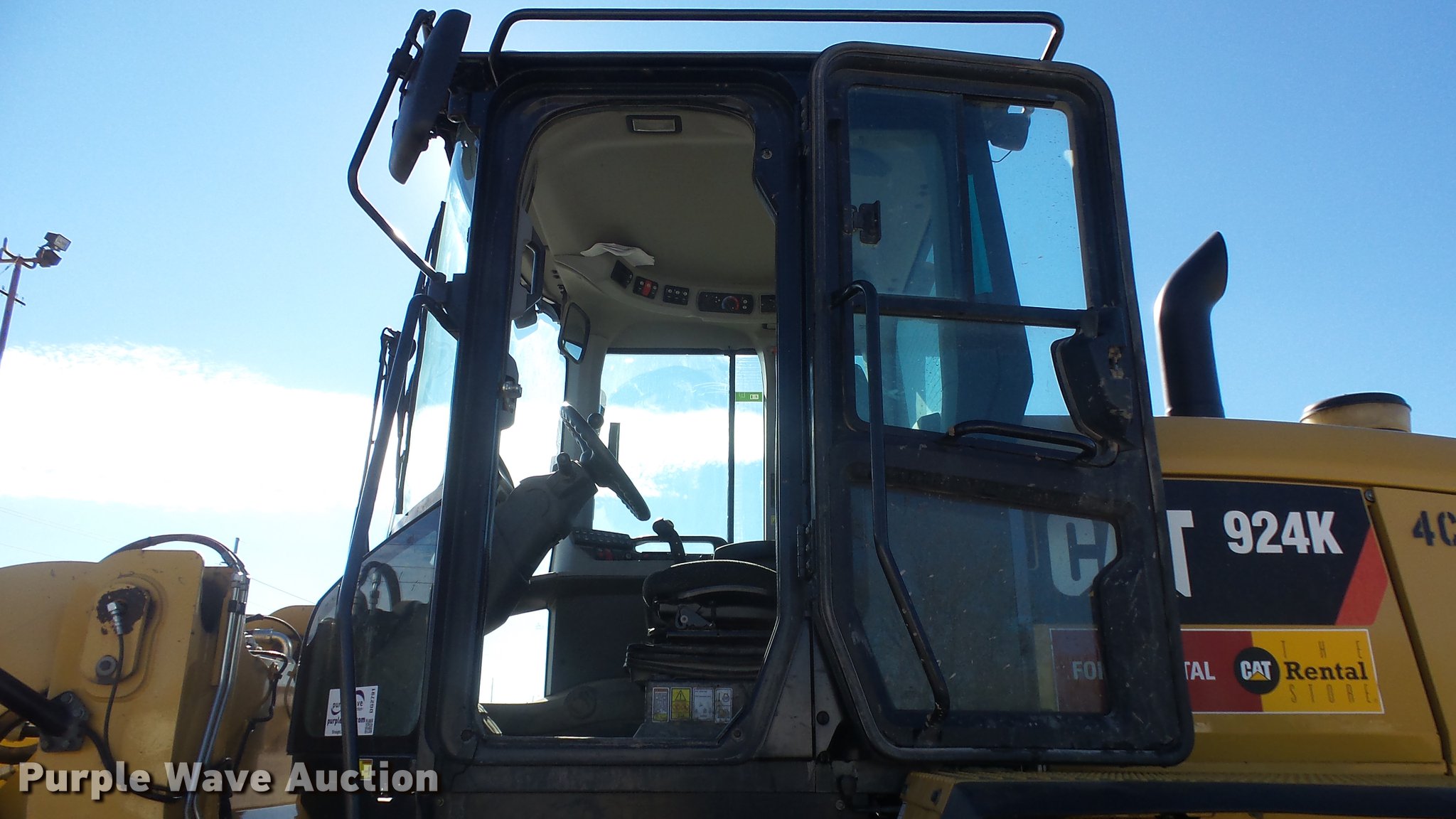 Purple Wave is selling a used Wheel Loader in Kansas. This item is a 2012 Caterpillar 924K wheel loader with the following: 2,073 hours on meter, Caterpillar C6.6 6.6L diesel engine, Serial CPKXL06.6BK1, Hydrostatic transmission, EROPS enclosed cab, AC and heat, Suspension seat, Joystick bucket controls, Wipers, Front and rear work lights, Caterpillar 100"W general purpose bucket, Bolt-on cutting edge, Caterpillar 60"L pallet forks, 8'W carriage, Hydraulic quick coupler, Front auxiliary hydraulics, 20.5R25 tires, Serial CAT0924KTPWR00835