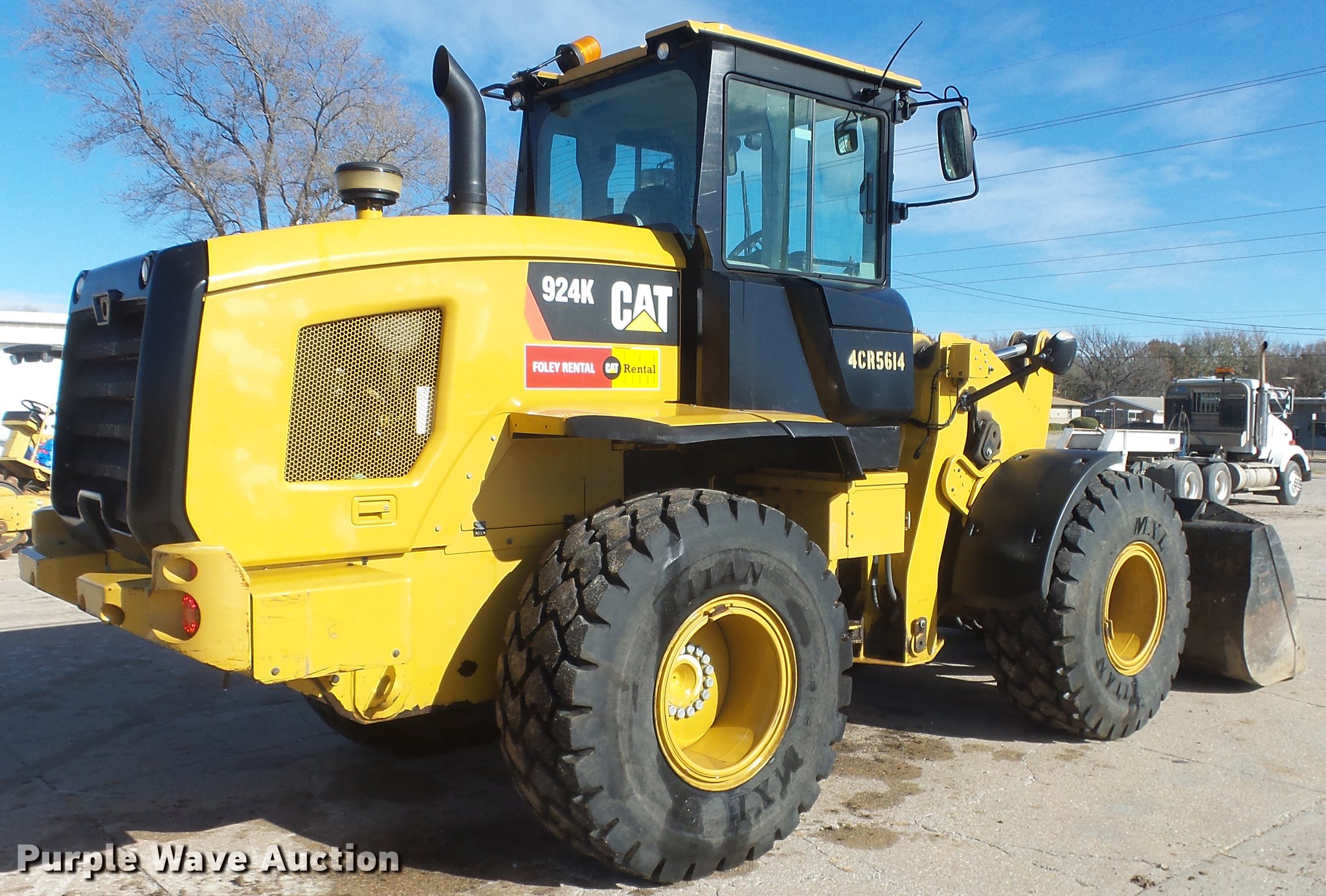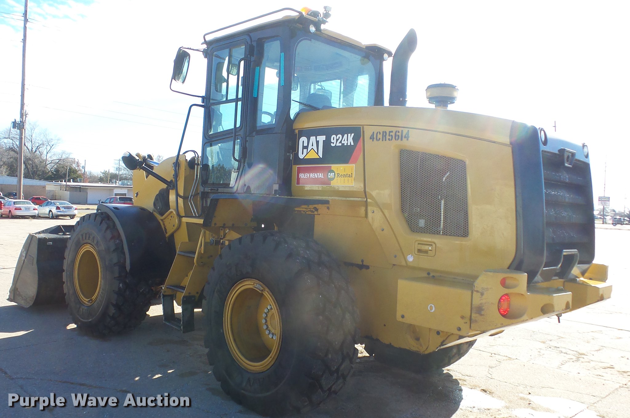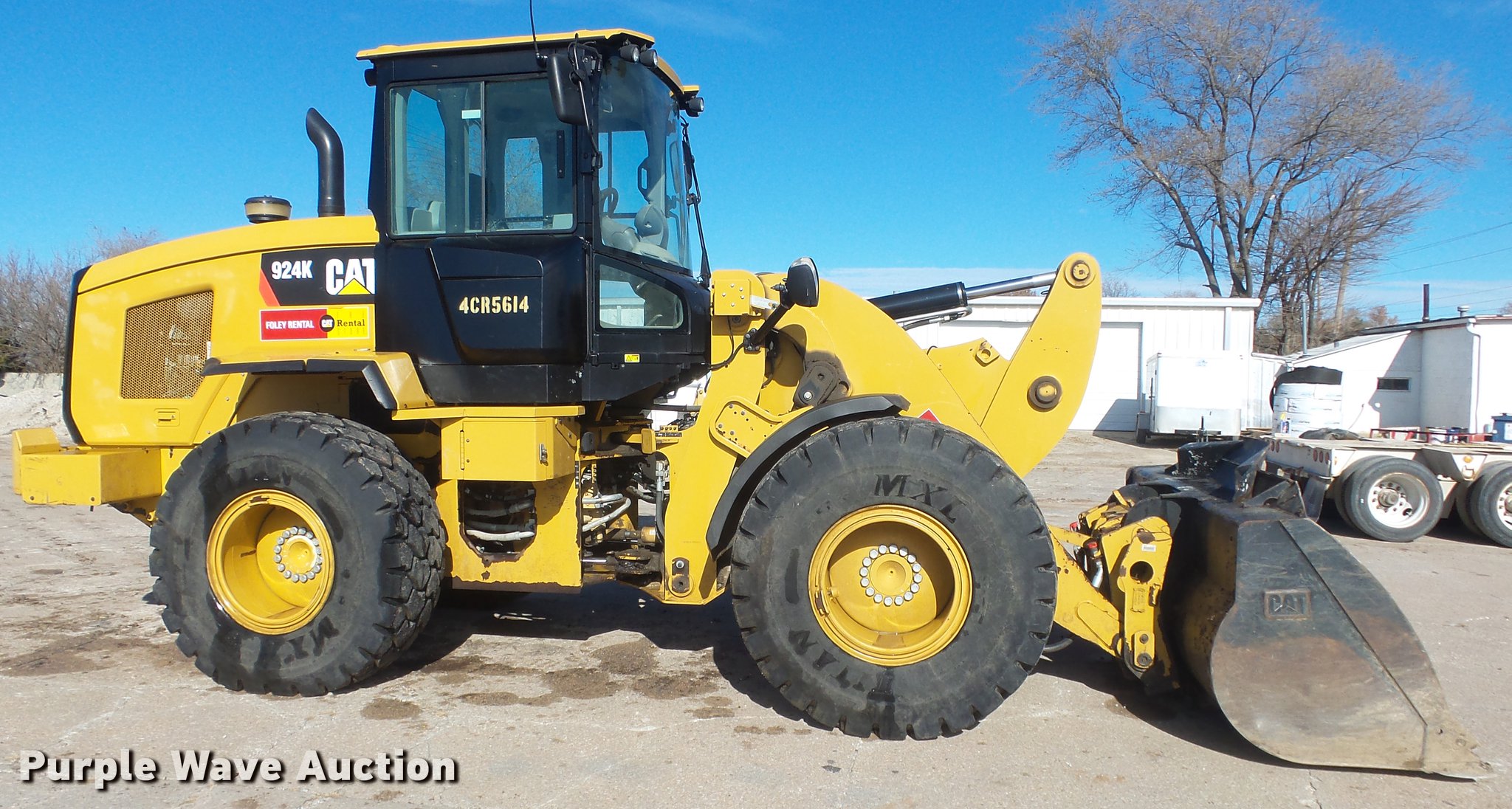 Purple Wave is selling a used Wheel Loader in Kansas. This item is a 2012 Caterpillar 924K wheel loader with the following: 2,073 hours on meter, Caterpillar C6.6 6.6L diesel engine, Serial CPKXL06.6BK1, Hydrostatic transmission, EROPS enclosed cab, AC and heat, Suspension seat, Joystick bucket controls, Wipers, Front and rear work lights, Caterpillar 100"W general purpose bucket, Bolt-on cutting edge, Caterpillar 60"L pallet forks, 8'W carriage, Hydraulic quick coupler, Front auxiliary hydraulics, 20.5R25 tires, Serial CAT0924KTPWR00835