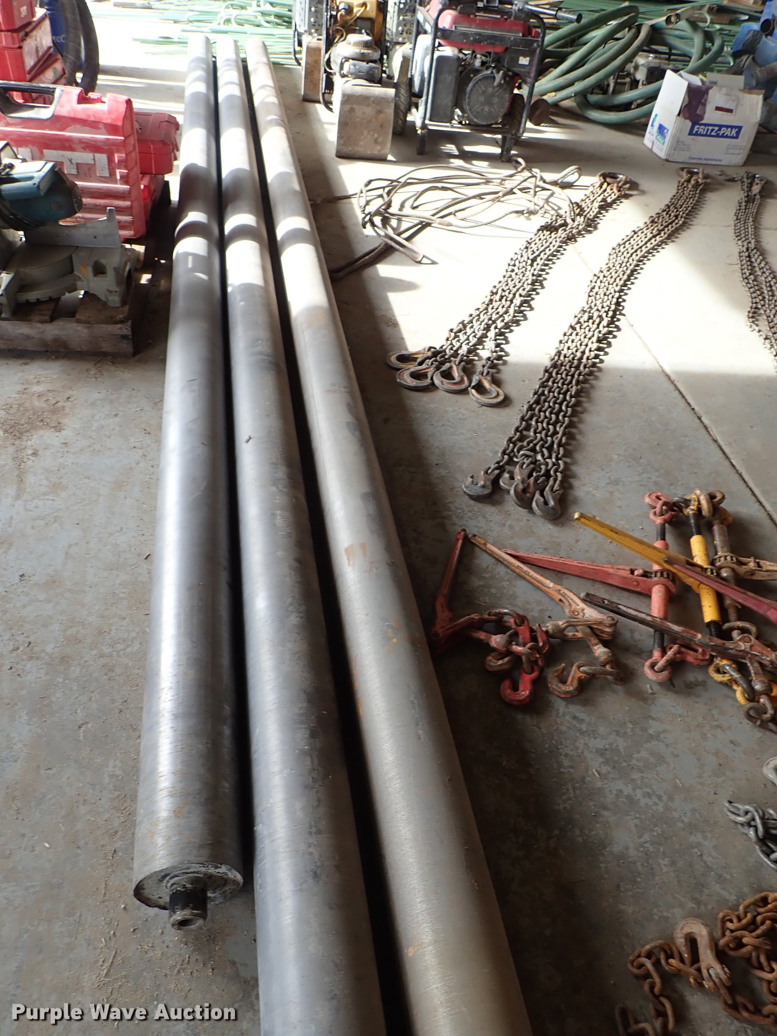 Bunyan screed system. Hydraulic power pack Honda gas engine, Electric start, Hose Leaks at fitting, Wheels, Unit leaks oil when sitting, (3) roller screed tubes 18', (2) 24', Various conditions. HWA Davis - Open inspection Dec. 17. 535 N Meridian Rd. Newton, KS 67114
