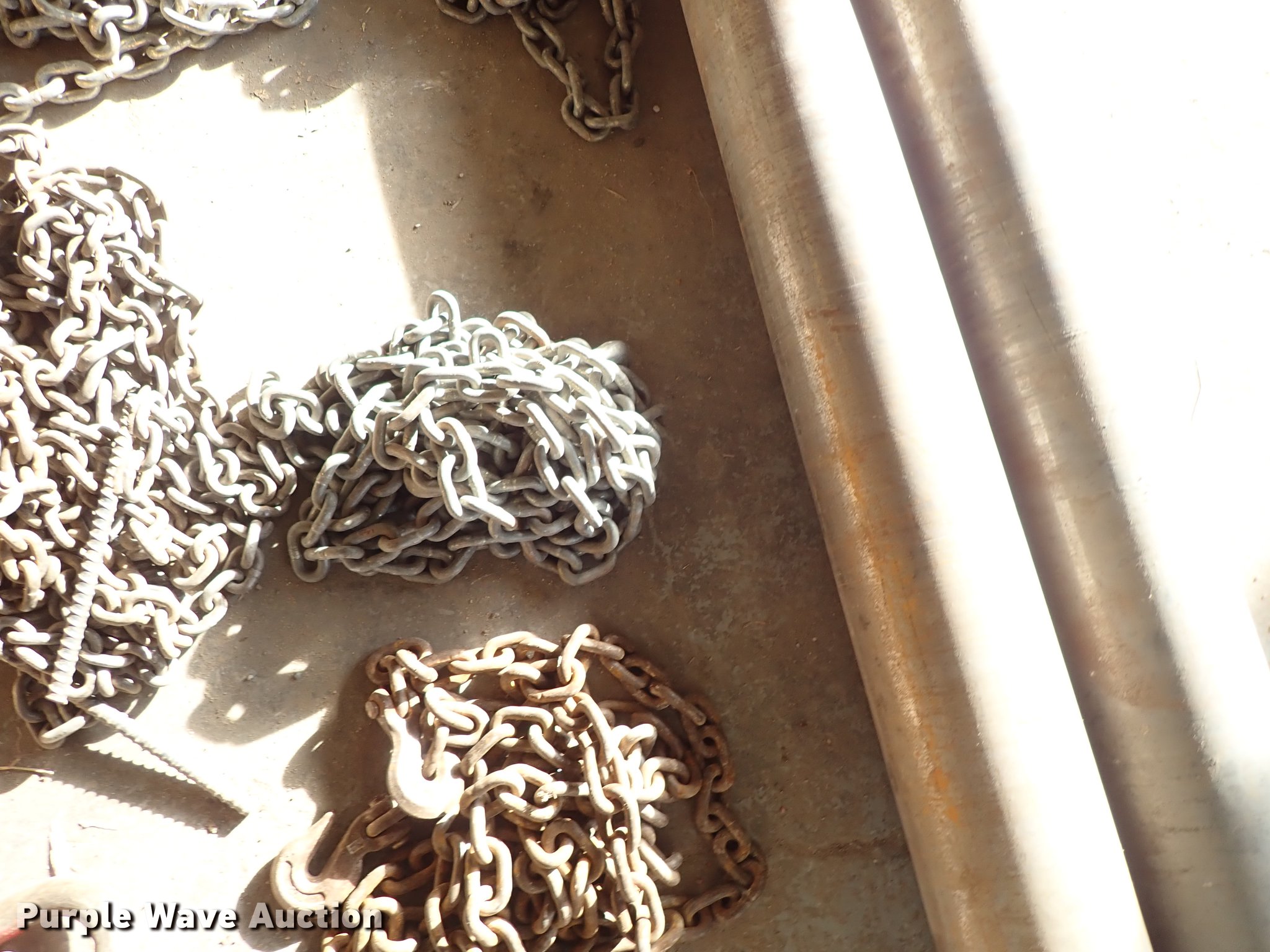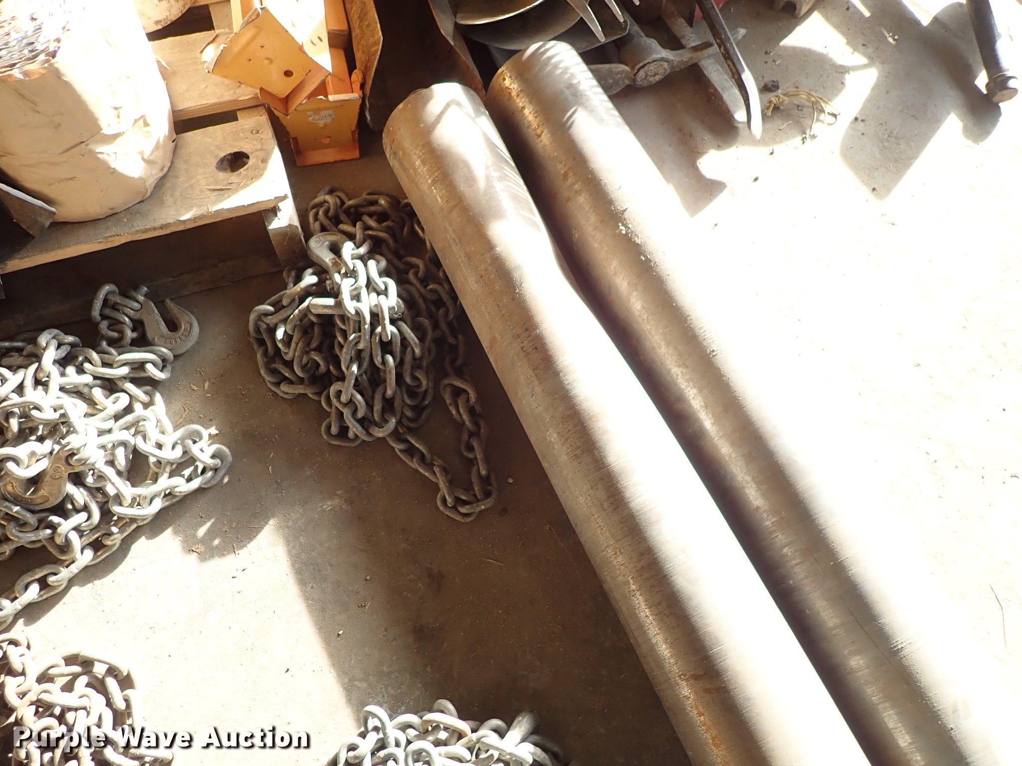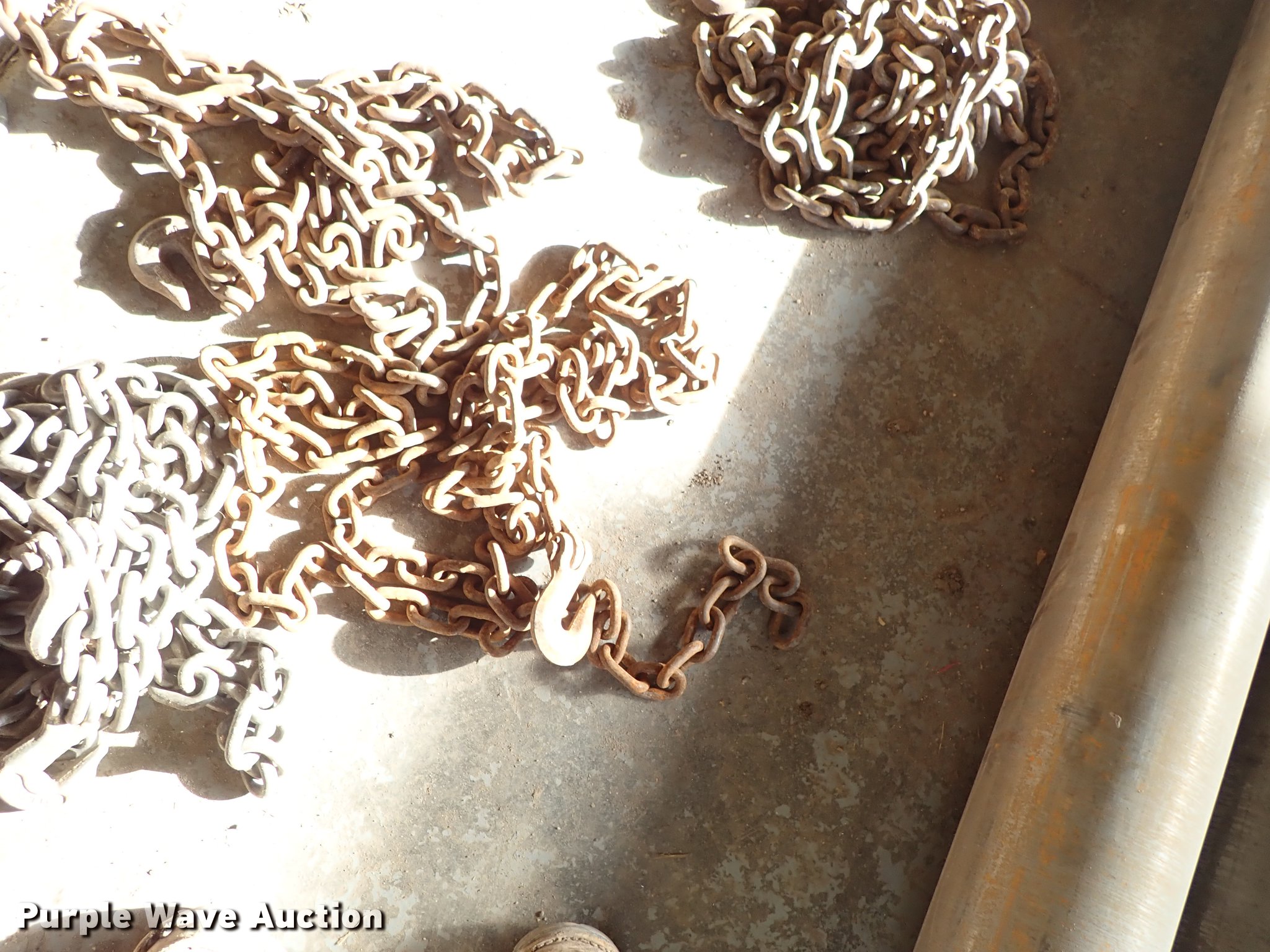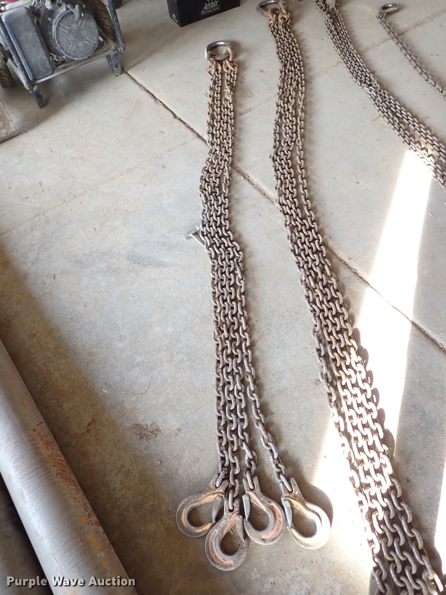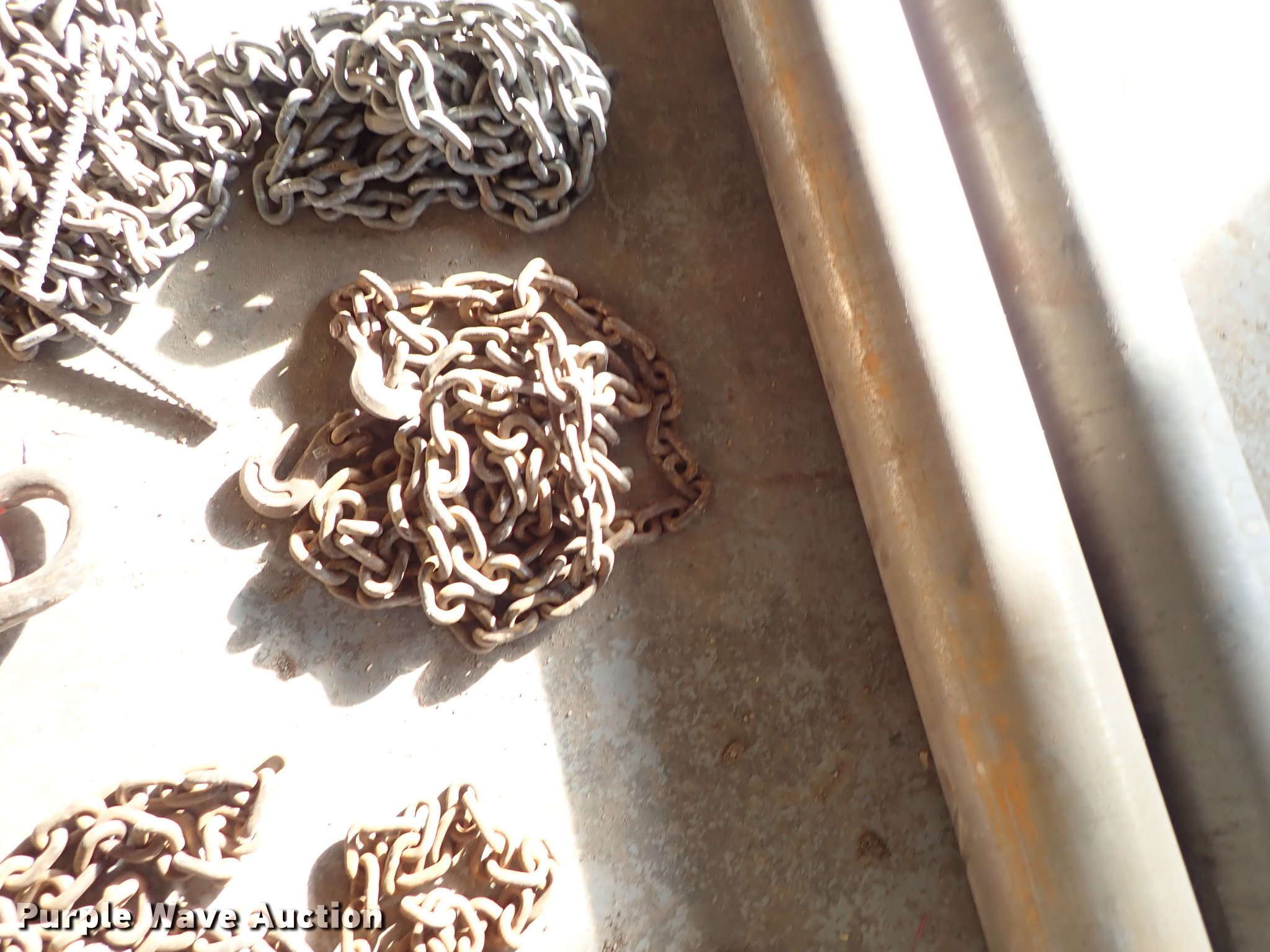 Purple Wave is selling a used Tools in Kansas. This item is a Tools with the following: (3) three-way chains, Log chain with hook, Approx. 15 ratchet straps, Chokers, (8) binders, Approx. 10 log chains, Assorted lengths