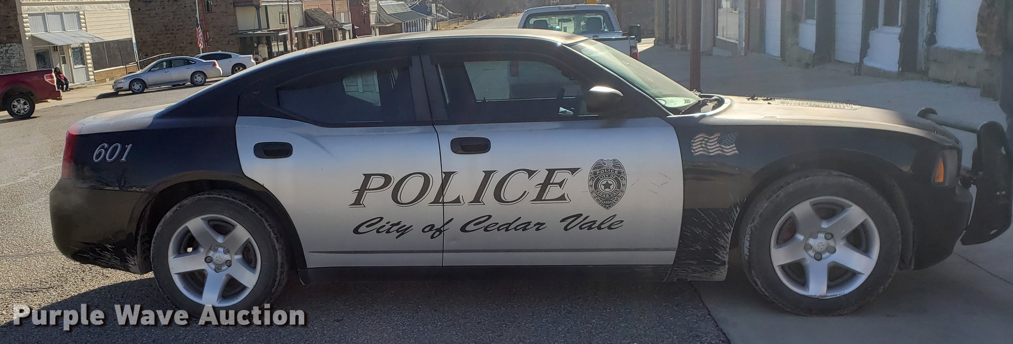 2007 Dodge Charger. 106,574 miles on odometer, 5.7L V8 OHV 16V gas engine, Automatic transmission, AC and heat, AM/FM/CD, Power windows, locks, and mirrors, Cloth interior, Grill guard, Interior divider, 225/60R18 tires, Check engine light on Possible alternator issues, Unit# 601. Kansas title. 2B3KA43H87H818386. City of Cedarvale. 702 Cedar St. Cedar Vale, KS 67024