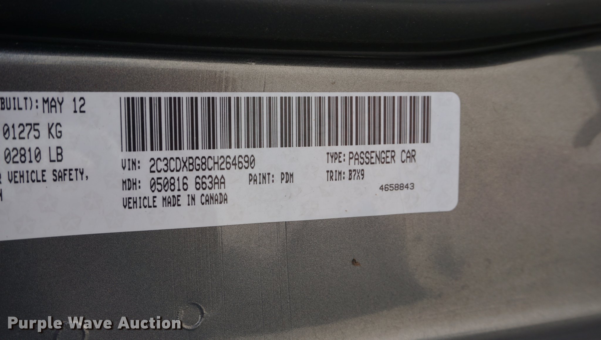 Purple Wave is selling a used Passenger Vehicle in Kansas. This item is a 2012 Dodge Charger with the following: 86,164 miles on odometer, 3.6L V6 DOHC 24V gas engine, Automatic transmission, AC and heat, Tilt, Cruise, AM/FM/CD, Power windows, locks, mirrors, and seat, Cloth interior, 215/65R17 tires
