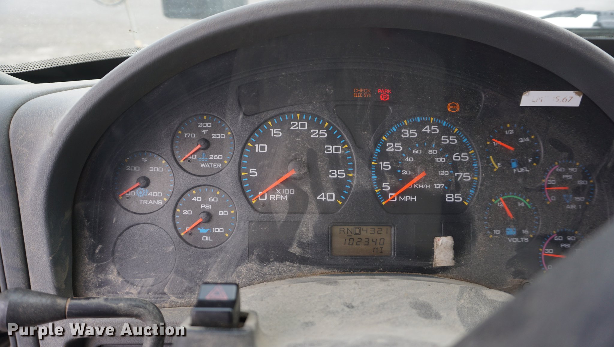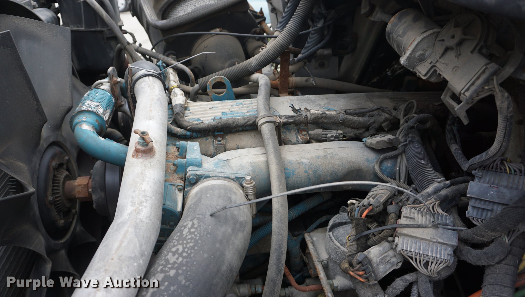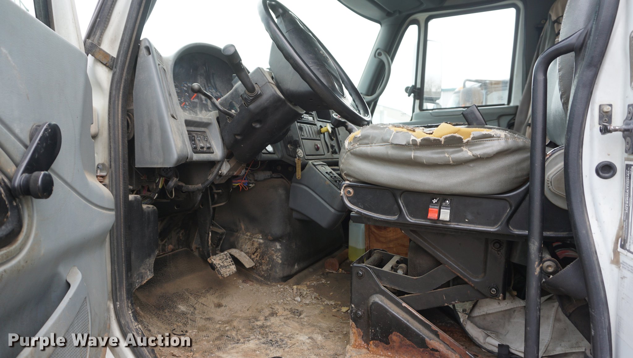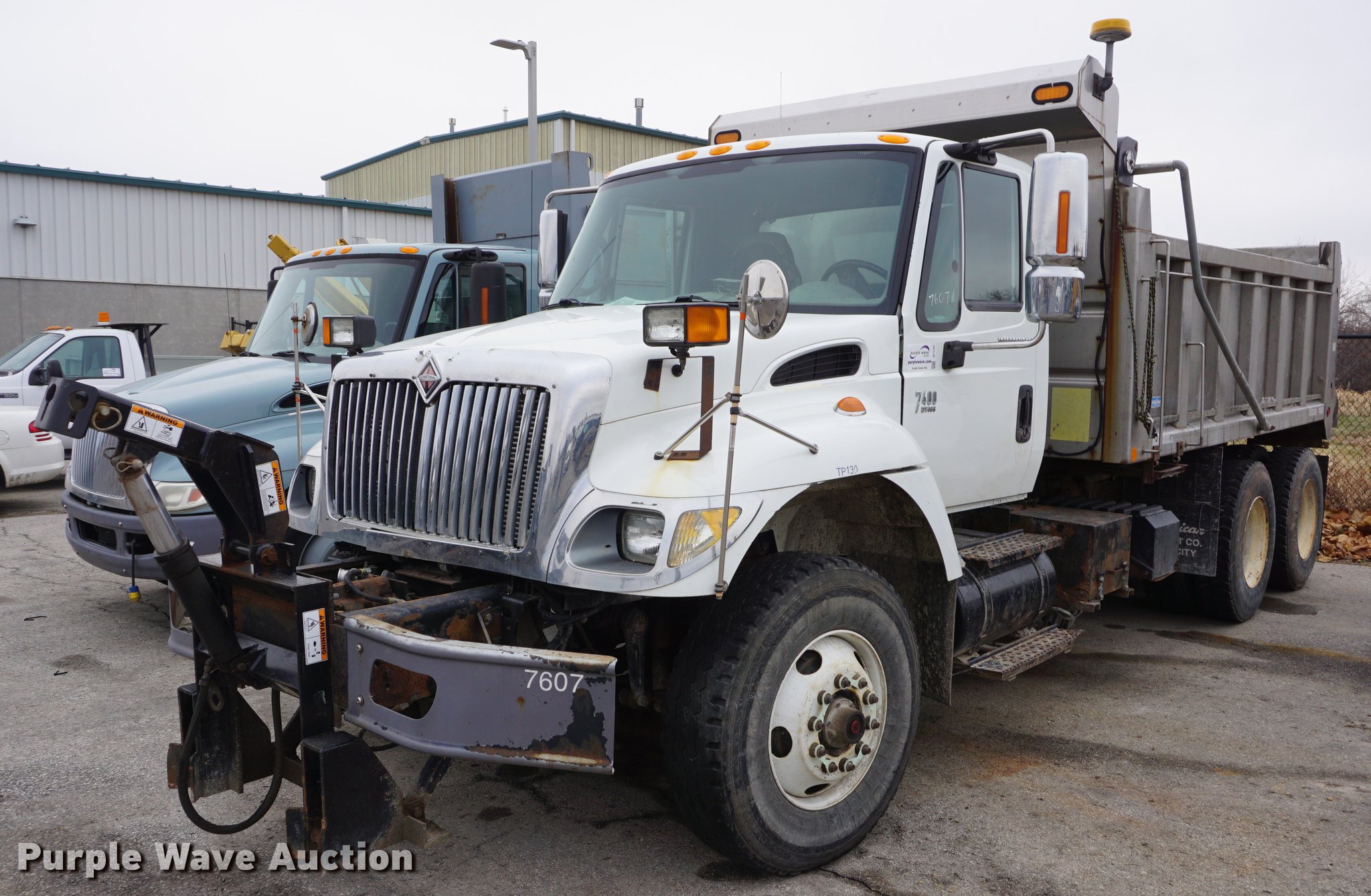 Purple Wave is selling a used Construction Dump Truck in Kansas. This item is a 2006 International 7400 dump truck with the following: 102,340 miles on odometer, 10,947 hours on meter, International DT466 7.6L L6 turbo diesel engine, Automatic transmission, Inter-axle differential lock, Tandem axle, AC and heat, Tilt, AM/FM/cassette, Heated mirrors, Air suspension seat, Front mounted PTO, Command All in-cab plow controls, Warren FL650-1 aluminum dump bed, 14'L x 96"W, 40" side height, 12 to 14 cu.yd. capacity, Single ram hoist, Air operated end gate, Snow plow bracket, Wing plow bracket, Single fuel tank, Pintle hitch, Spring over walking beam suspension, Air brakes, 315/80R22.5 front tires, 11R22.5 rear tires, GVWR 52,000 lbs, FAWR 12,000 lbs, IAWR 20,000 lbs, RAWR 20,000 lbs, Batteries dead