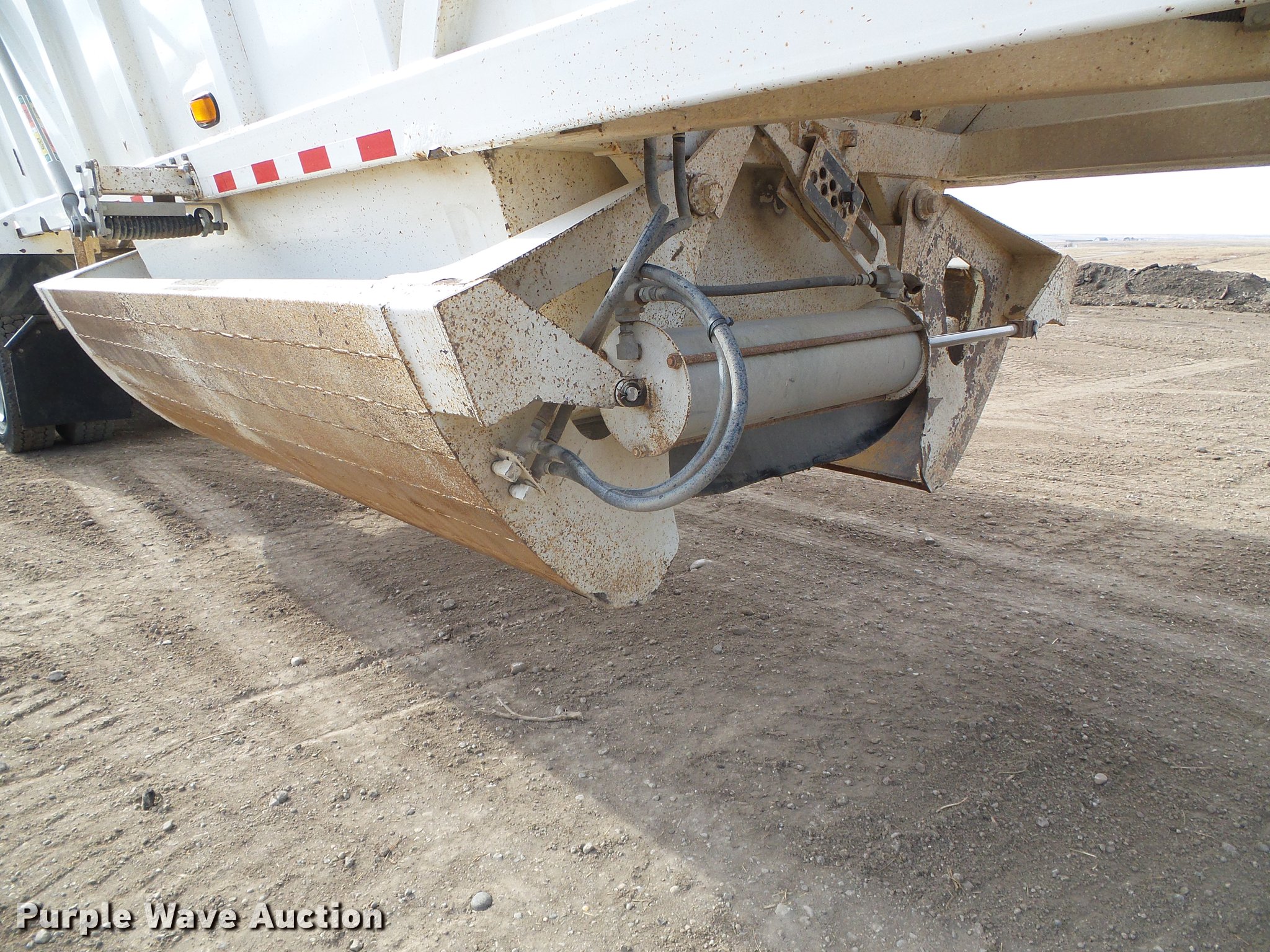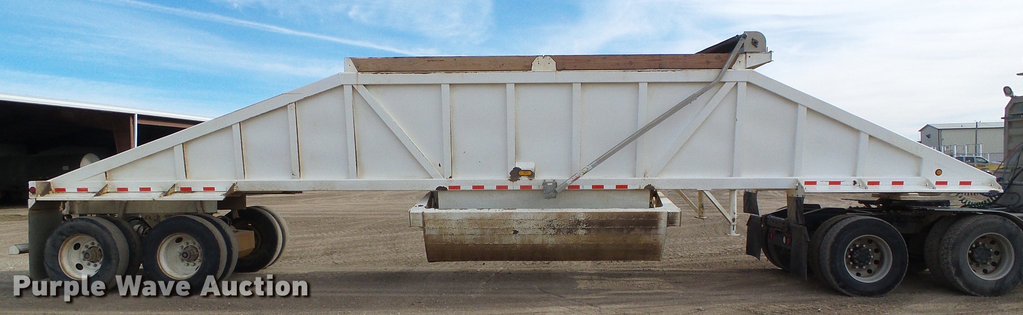 Purple Wave is selling a used Bottom Dump Trailer in Kansas. This item is a 2000 Ranch bottom dump trailer with the following: 40'L x 102"W, 8" side height, (2) compartments, Air operated clamshell gates, Trailer controls, Rear push block, Electric roll tarp, Steel construction, Fifth wheel plate, Dual leg landing gear, Spring suspesnion, Air brakes, Tandem axle, Steel wheels, 295/75R22.5 tires, GVWR 70,000 lbs