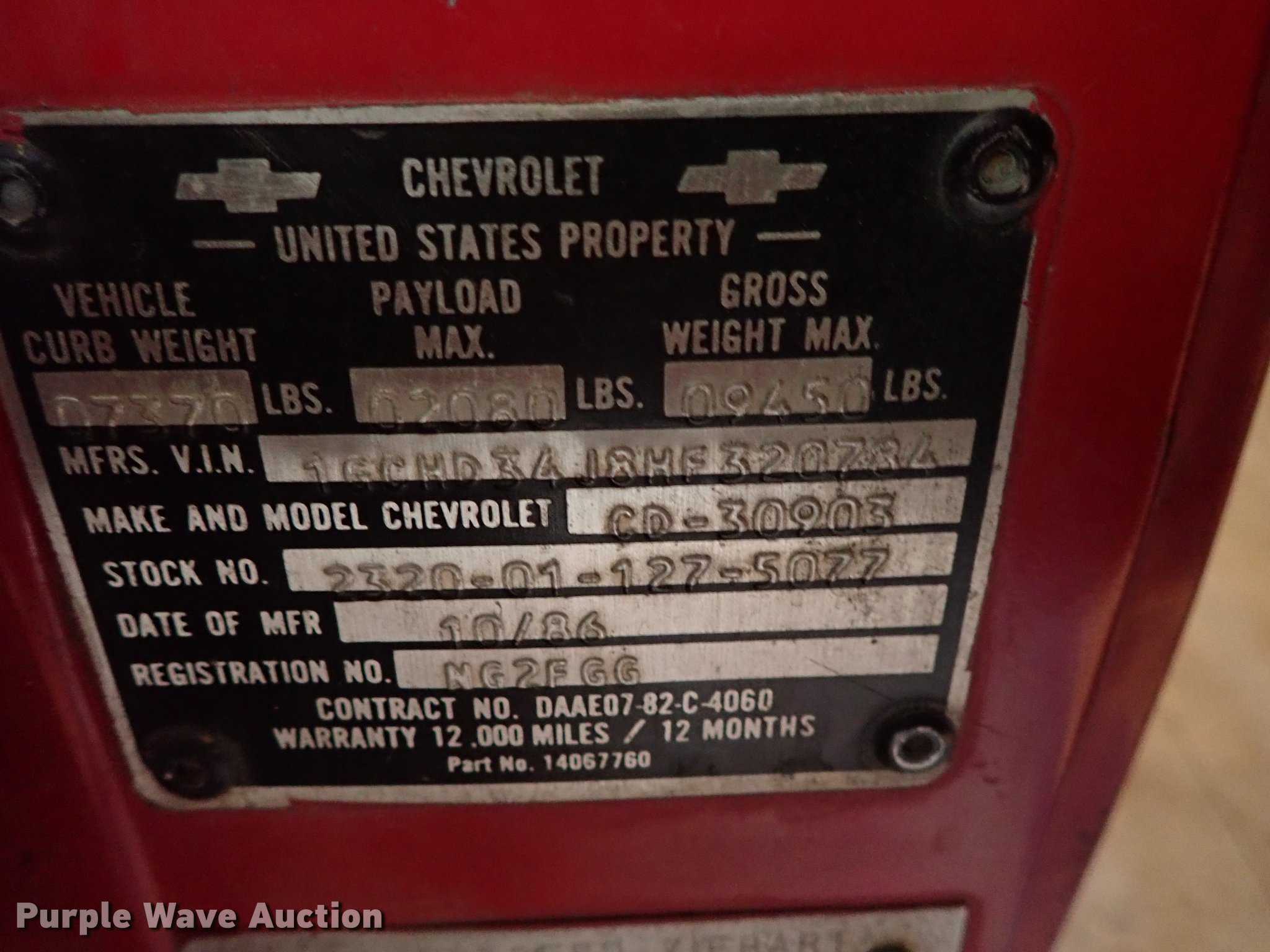 Take a look at this used 1987 Chevrolet brush fire truck being sold on January 8th, 2019 in the SOLD! January 8 Government Auction made by Chevrolet. Take a look at all of the item information below or take a look at similar auctions for Trucks.