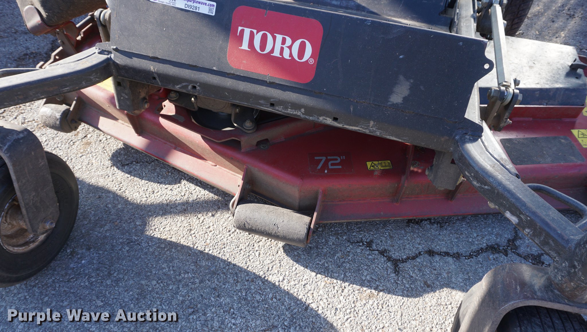 Purple Wave is selling a used Commercial Turf Mower in Kansas. This item is a Toro Groundsmaster 7210 ZTR lawn mower with the following: 1,290 hours on meter, 72"W deck, Kubota D1105-T three cylinder turbo diesel engine, Hydraulic deck lift, 15 x 6.00-6 front tires, 24 x 12.00-12 rear tires, Serial 30363
