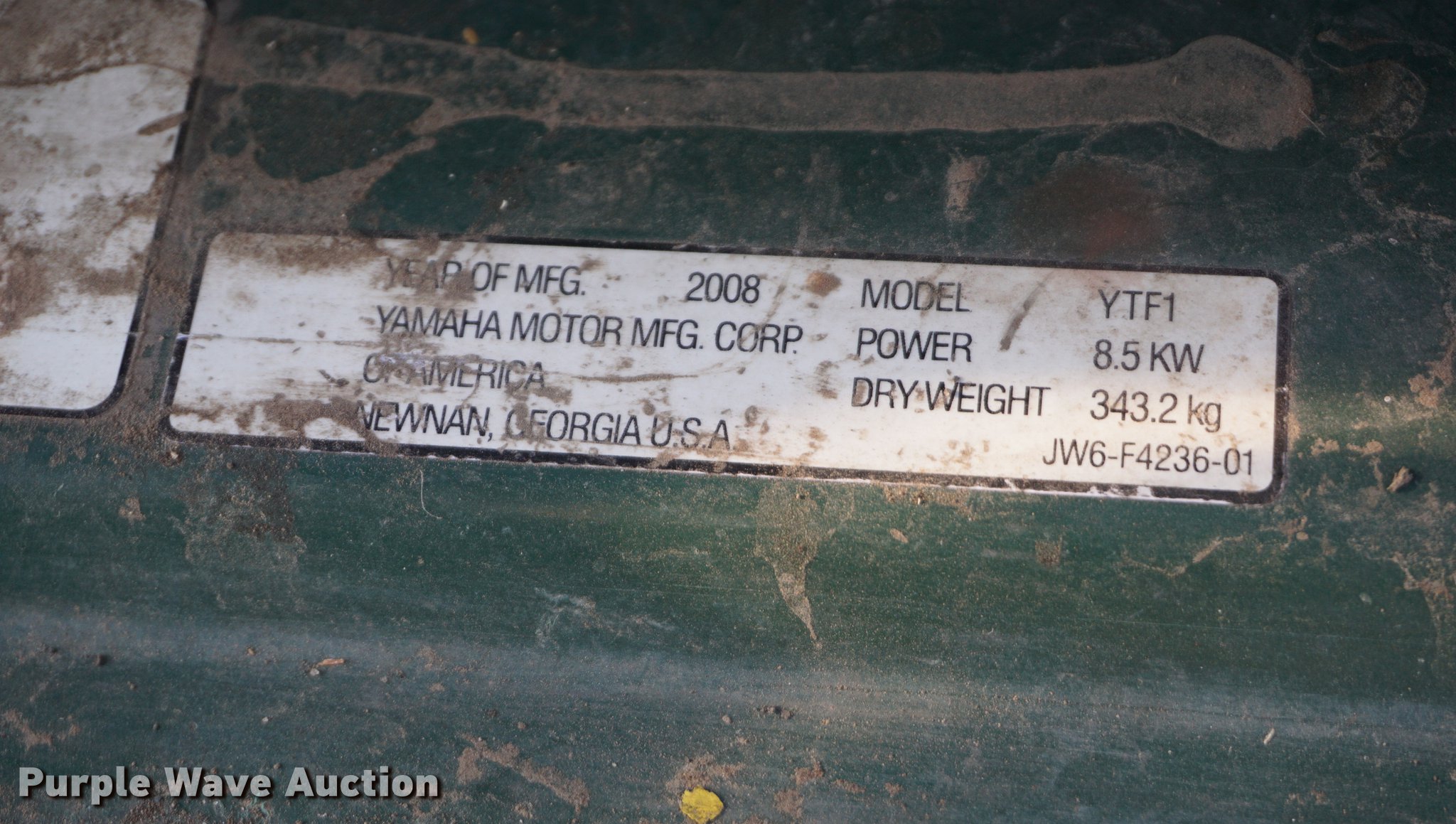 Purple Wave is selling a used Golf Cart in Kansas. This item is a 2008 Yamaha YTF1 golf cart with the following: Gas engine, F-R transmission, Canopy, 45"L x 32"W bed, Receiver hitch, 18 x 8.50-8 tires, Serial JW6-F4236-01
