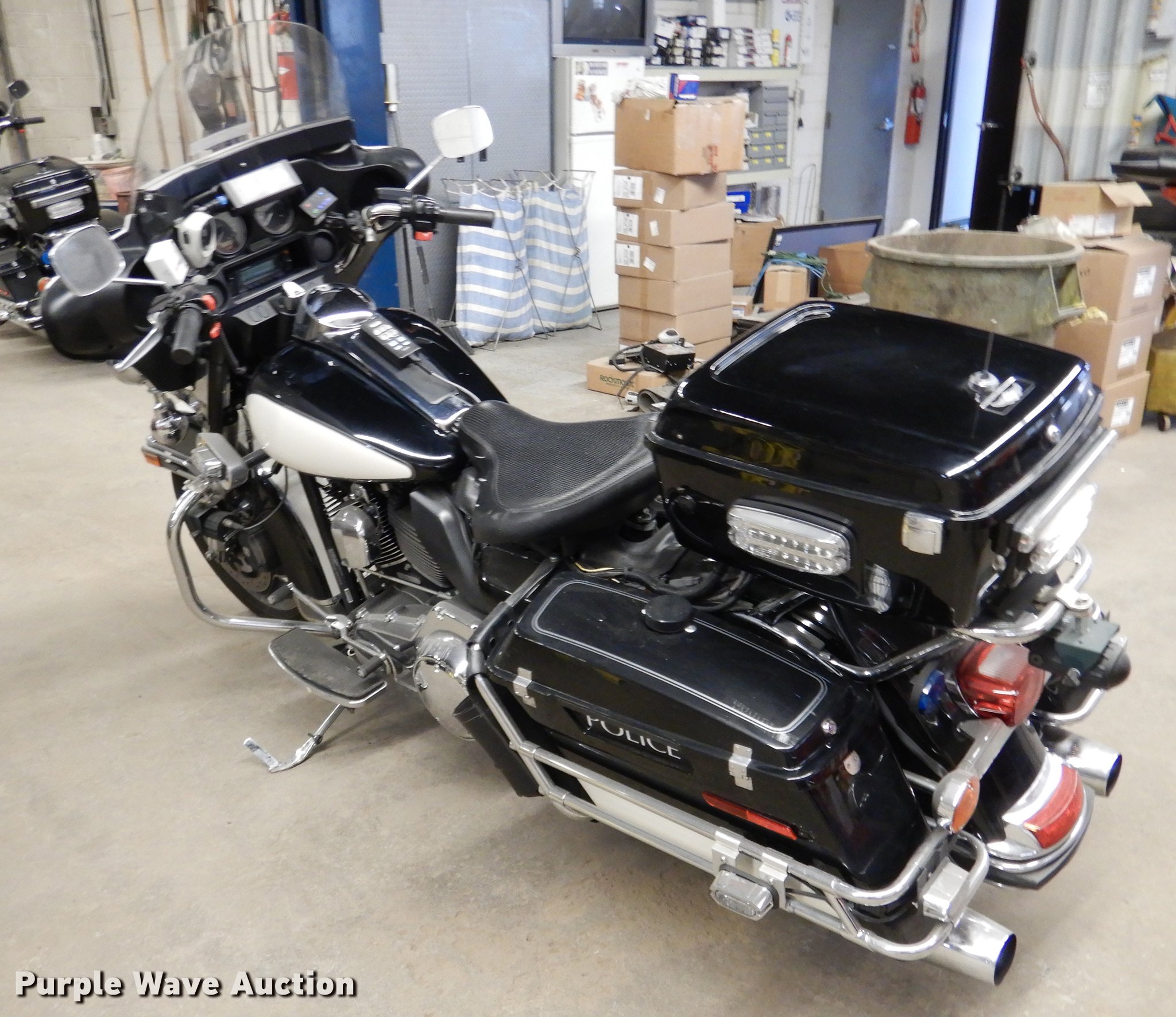 Purple Wave is selling a used Motorcycle in Missouri. This item is a 2011 Harley Davidson FLHTP Electraglide motorcycle with the following: 27,940 miles on odometer, 883CC V-twin gas engine, Six speed manual transmission, Emergency lights, Siren, 130/80R17 front tire, 180/65R16 rear tire, Camera and radar will be removed prior to auction