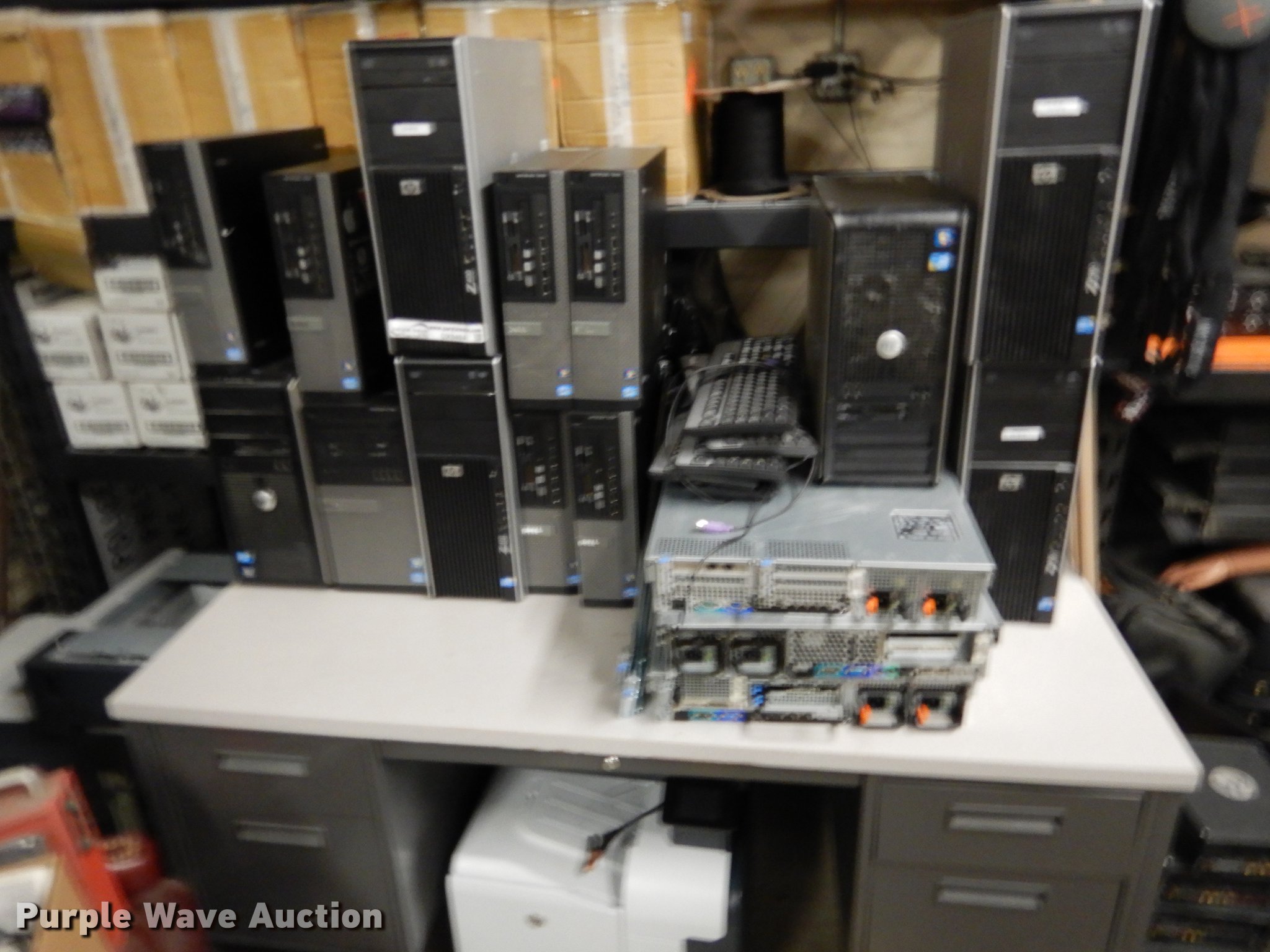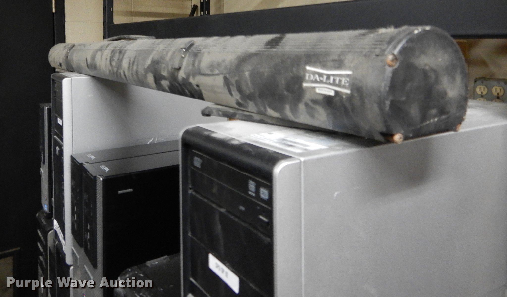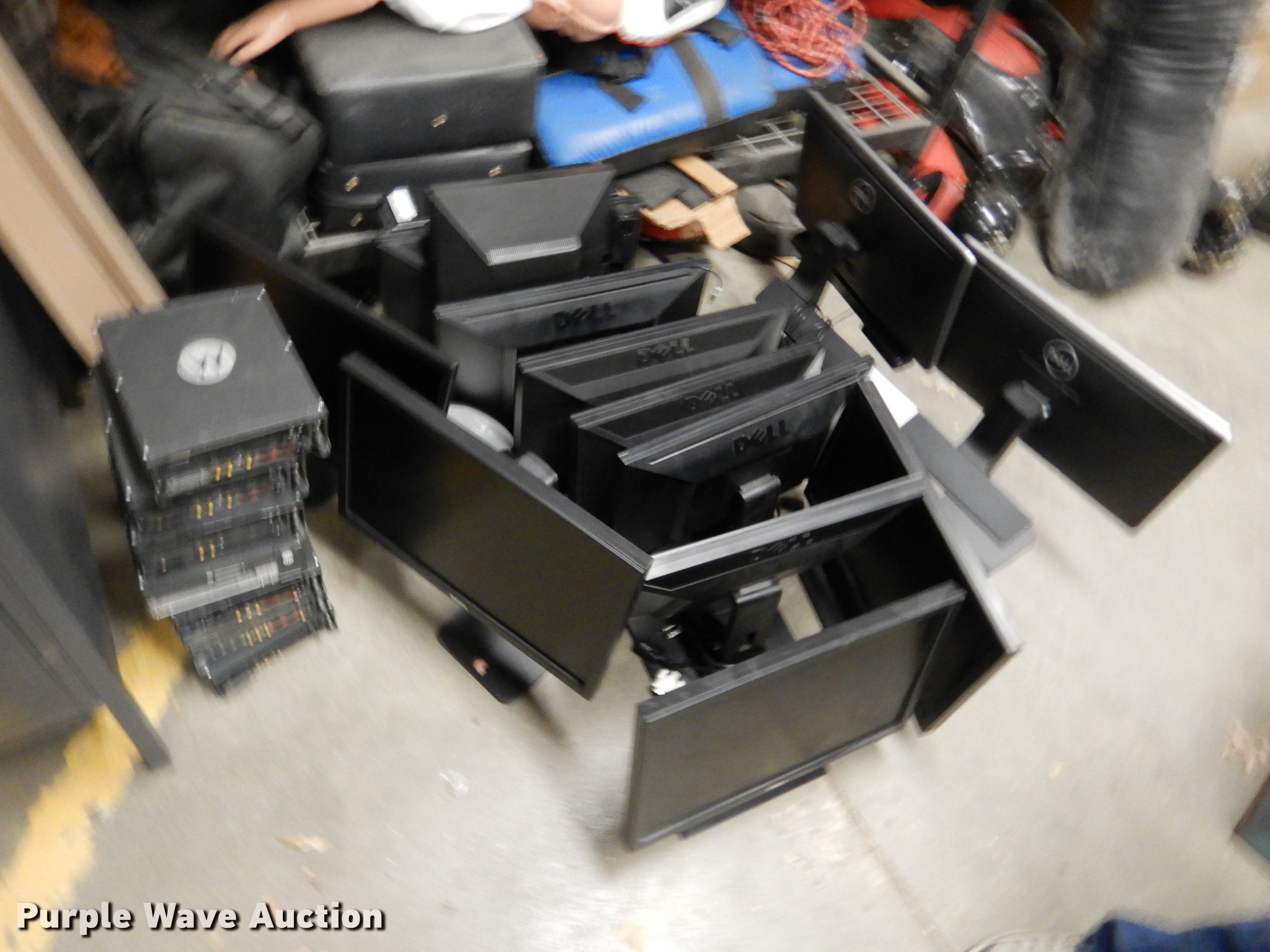 Purple Wave is selling a used Computers in Missouri. This item is a Computers with the following: (13) Dell monitors, (4) printers, (14) CPU's, (7) lawn enforcement vehicle computers, (5) key boards, (3) servers, (4) vehicle monitors with key boards, (5) projector screens
