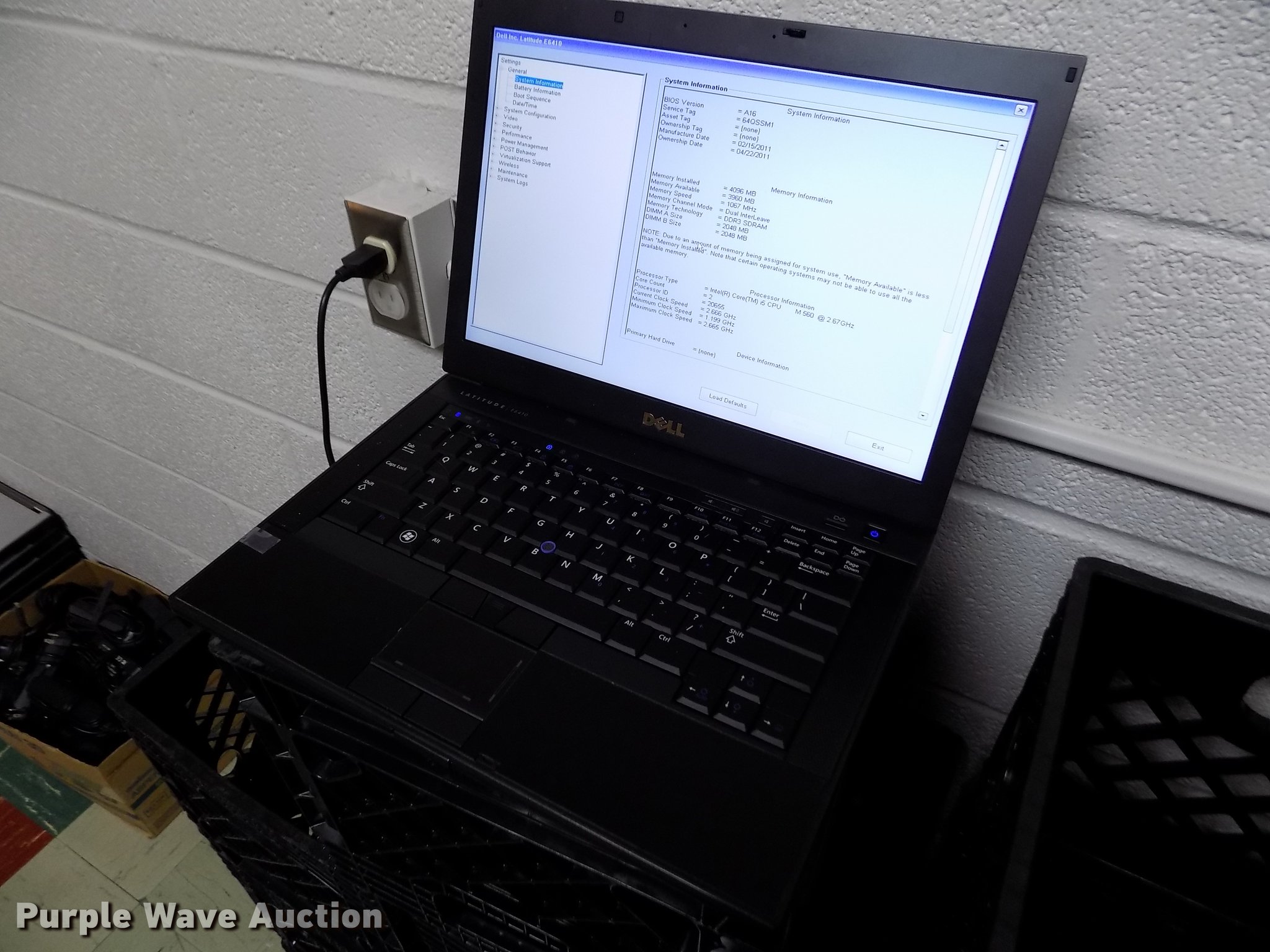 Purple Wave is selling a used Computers in Kansas. This item is a (30) Dell E6410 laptops with the following: Intel i5 dual core processors, 2.67 GHz, 4 MB RAM, Chargers, No hard drives