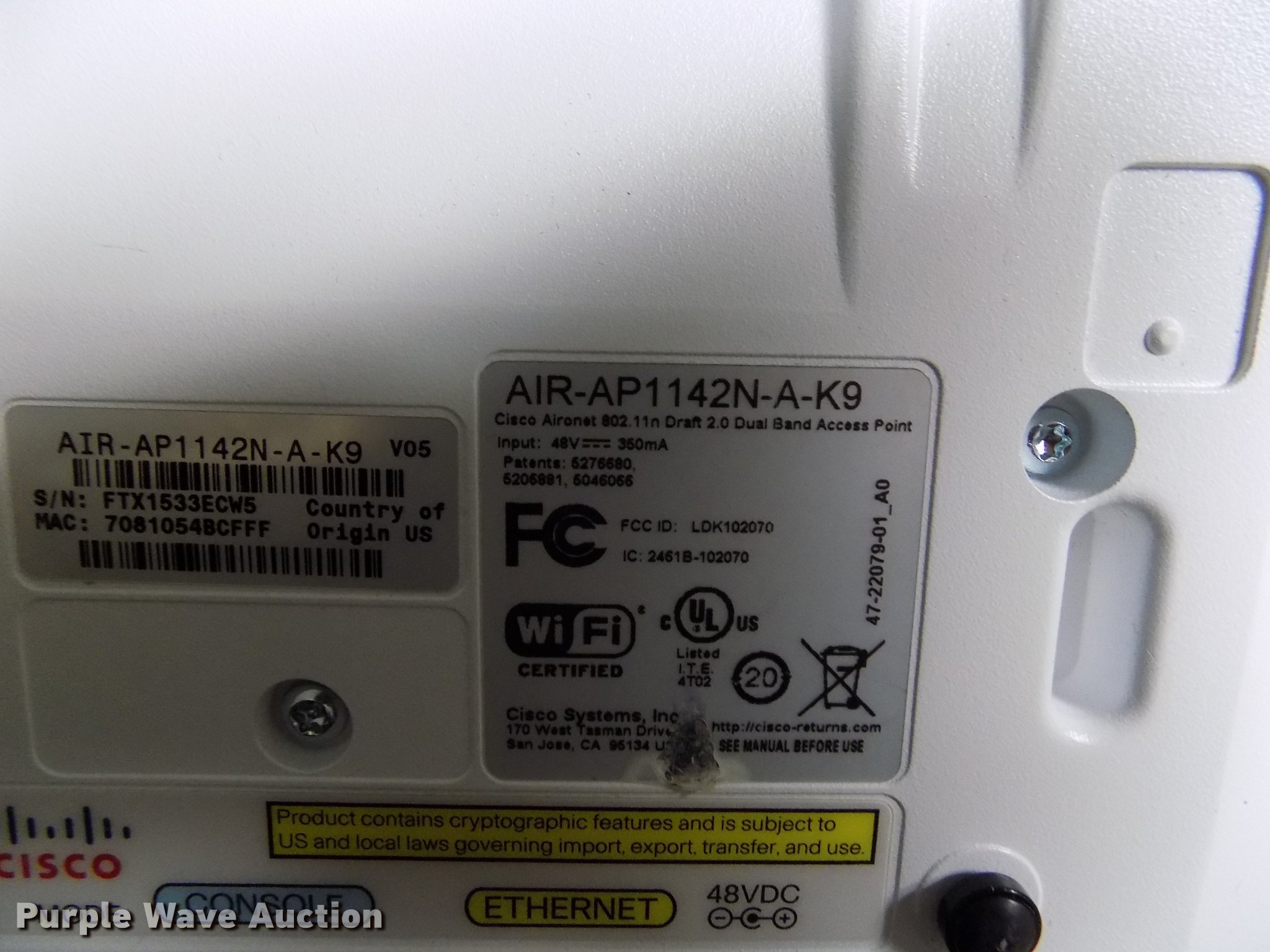 (9) Cisco Air-AP1142-N-K9 access points has sold in Hays, Kansas for $60.50. Item DY9175 sold on January 8th, 2019.