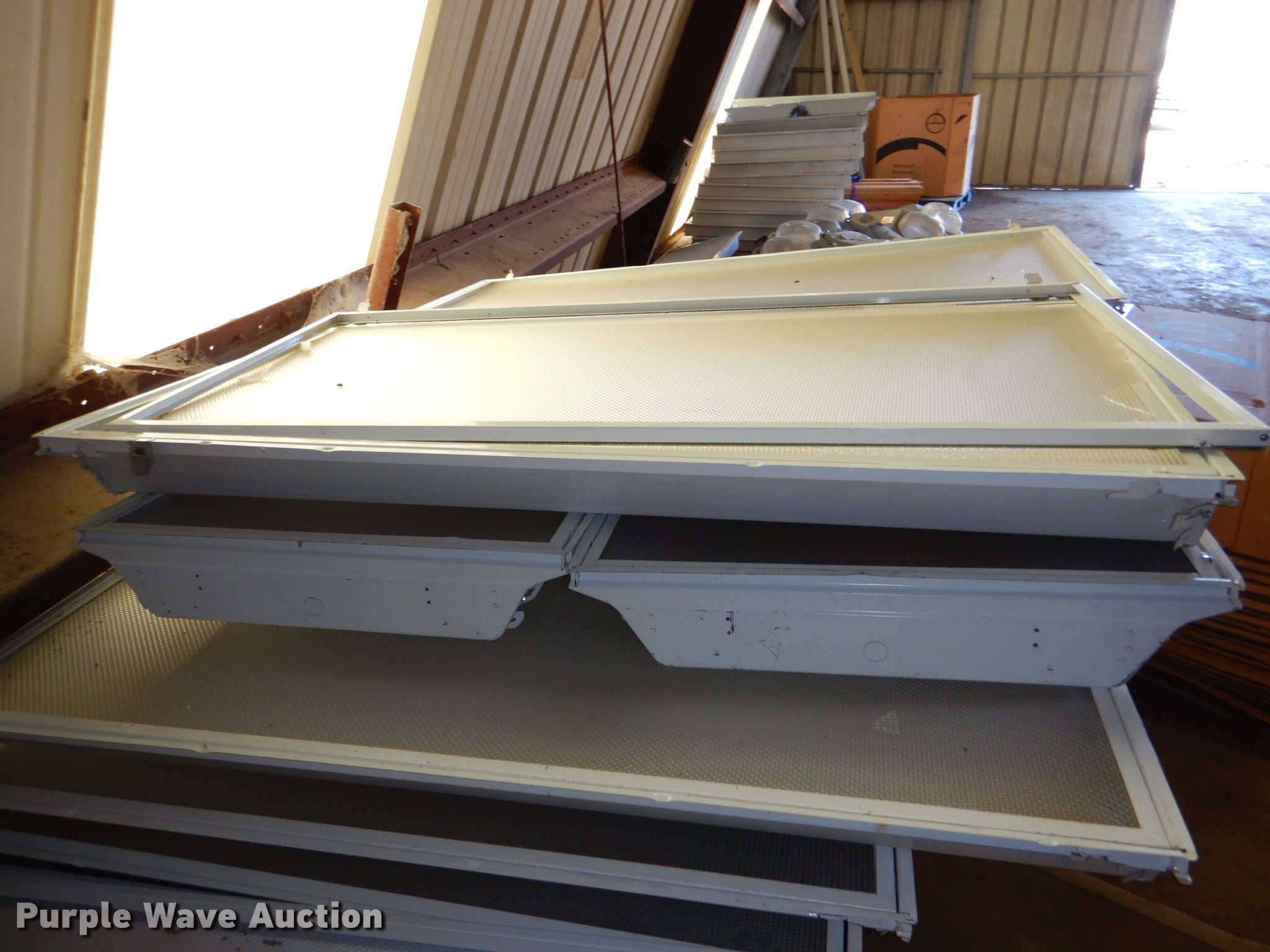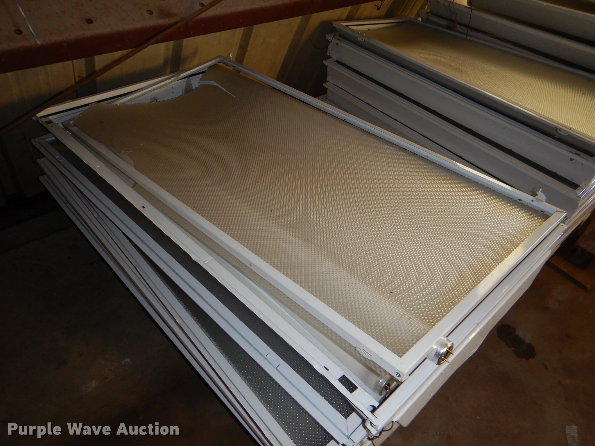 Purple Wave is selling a used Building Materials in Kansas. This item is a (34) ceiling lights with the following: 4' x 2', T12 fluorescent bulbs