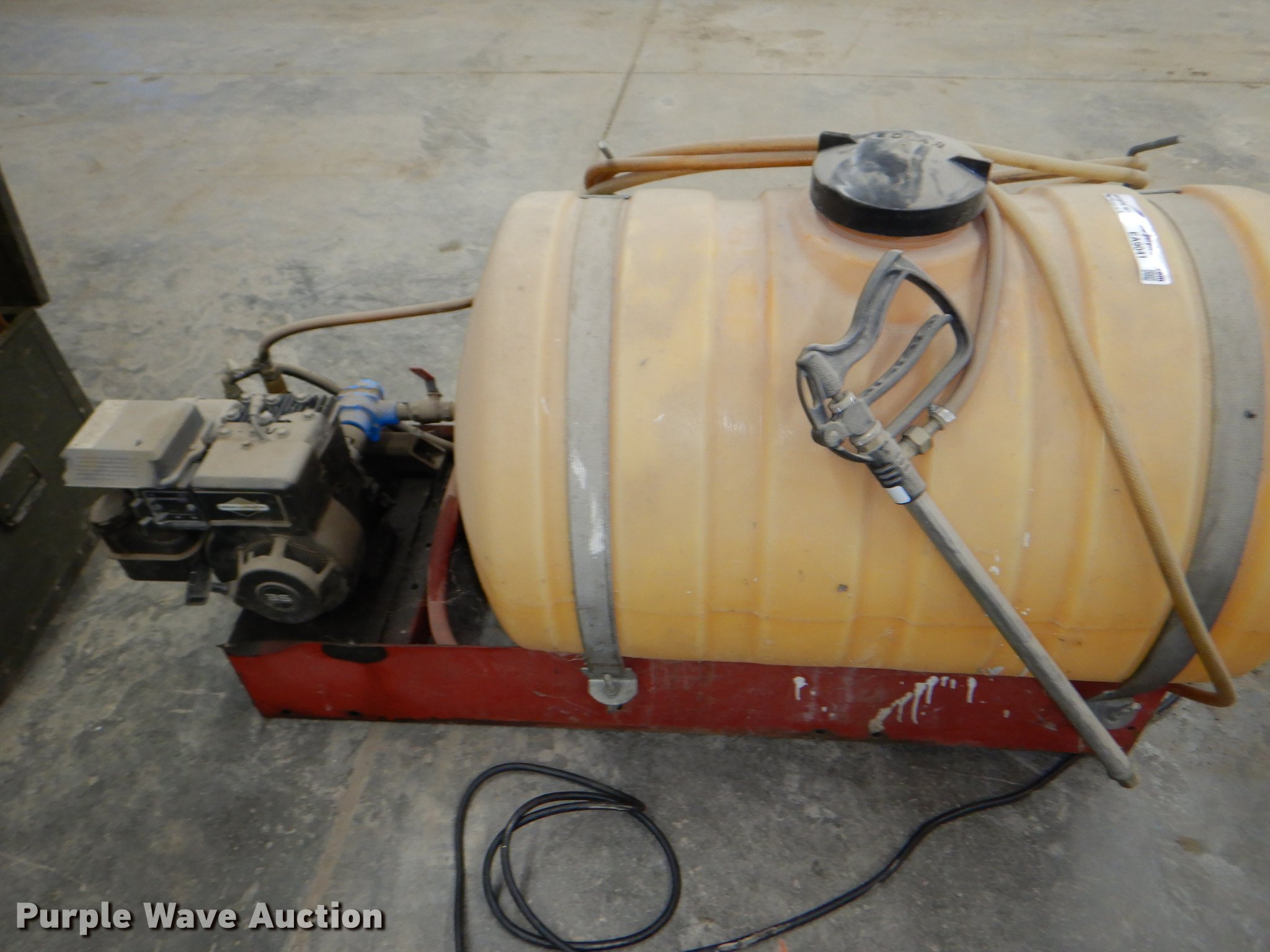 Purple Wave is selling a used Tools in Kansas. This item is a Tools with the following: 50 gallon sprayer tank, Briggs & Stratton 3.5 HP gas engine, Hose, Wand, Skid mounted, Previously used for round-up, Pacer water pump, Non-operational