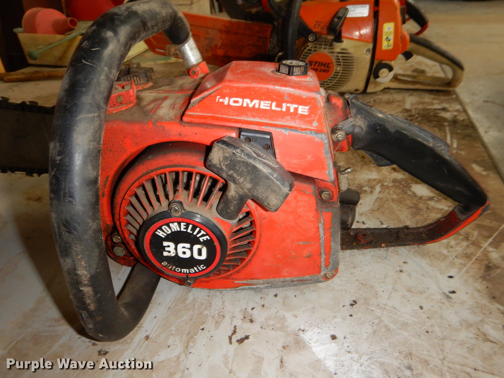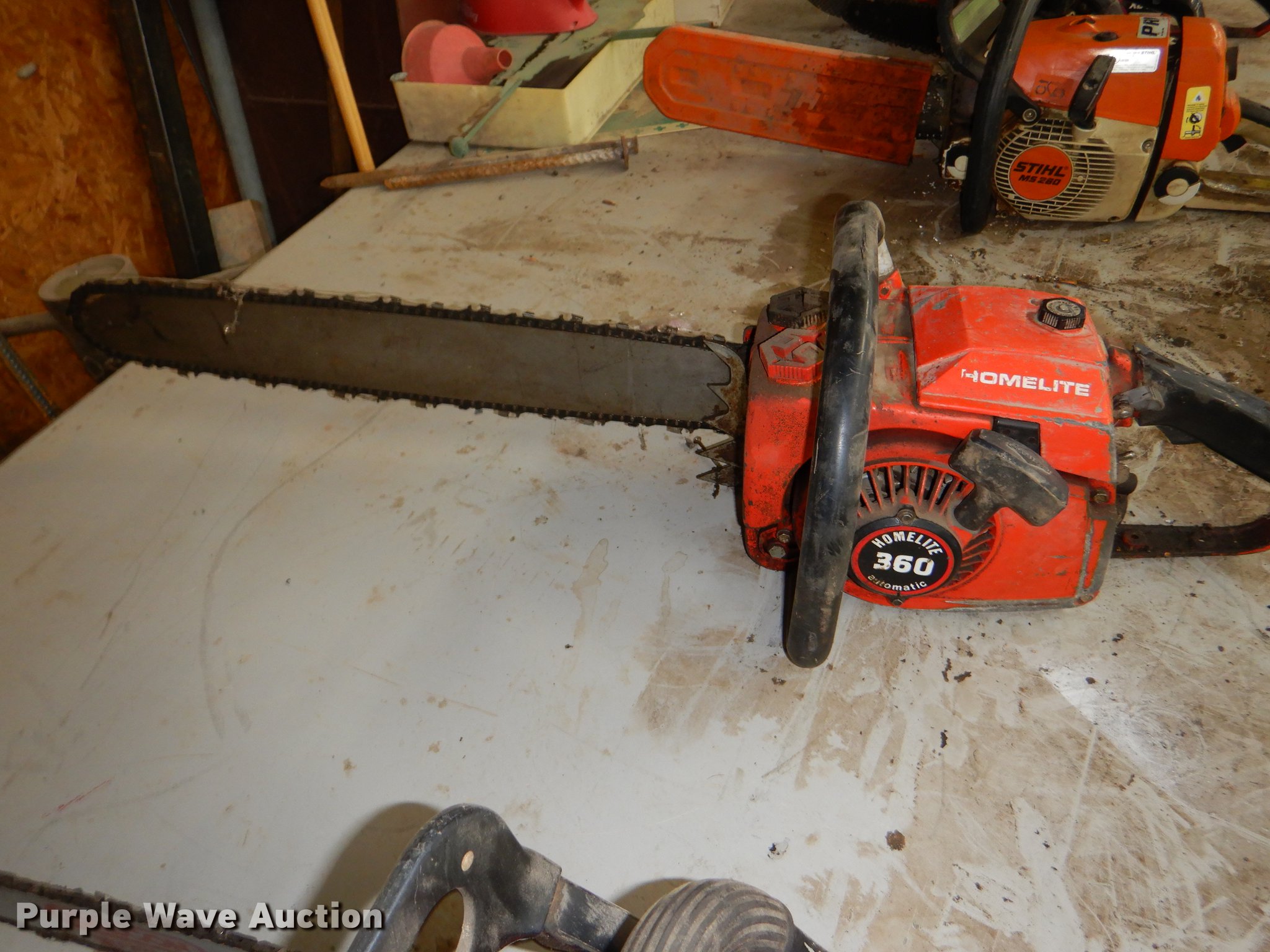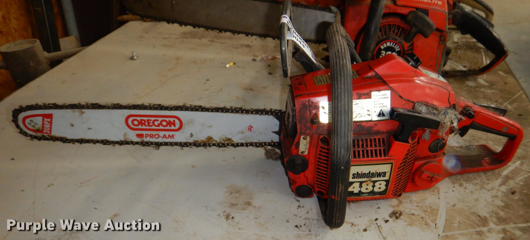 Purple Wave is selling a used Lawn and Garden in Kansas. This item is a (2) chainsaws with the following: Homelite 360, Shindaiwa 488