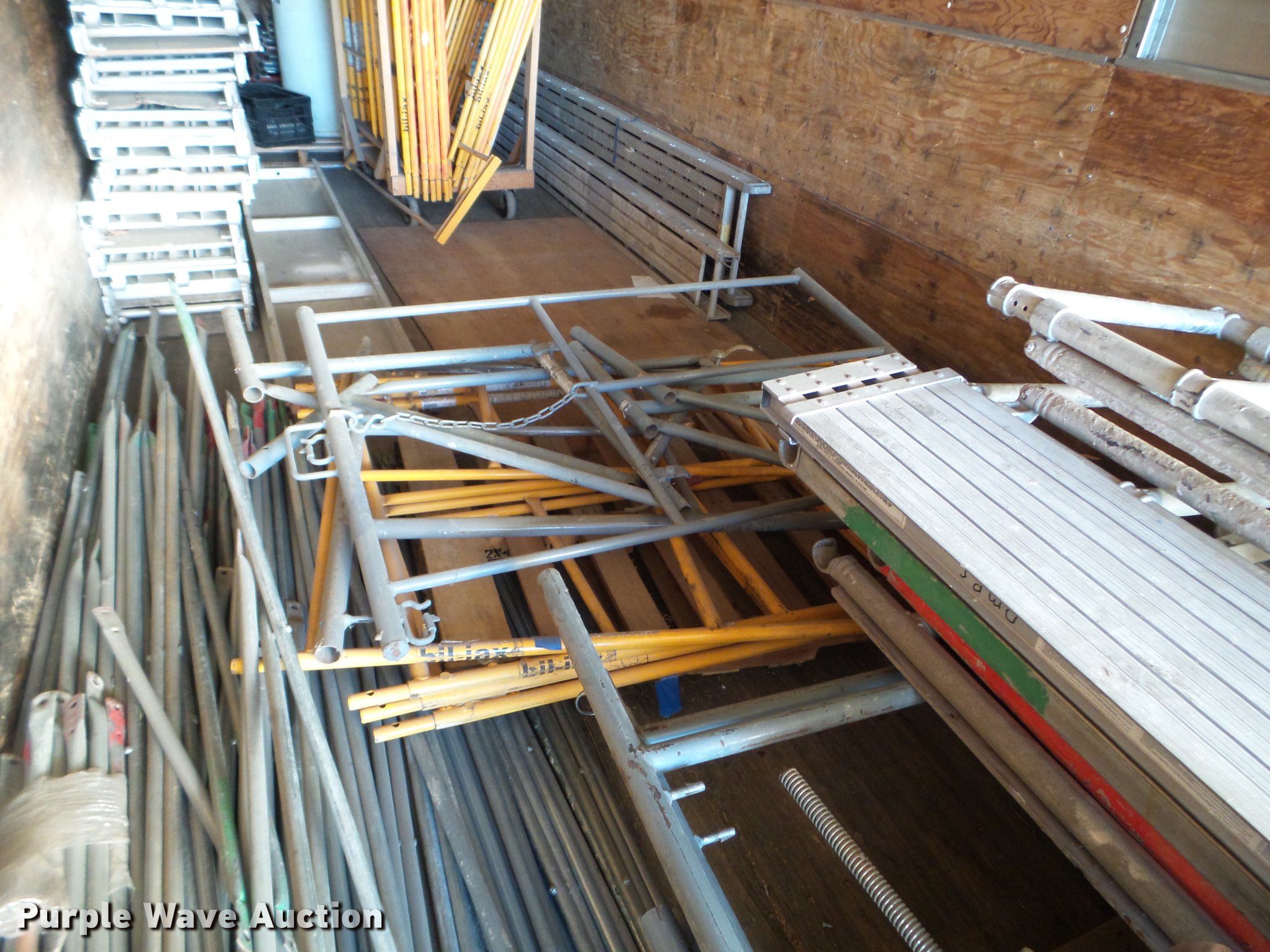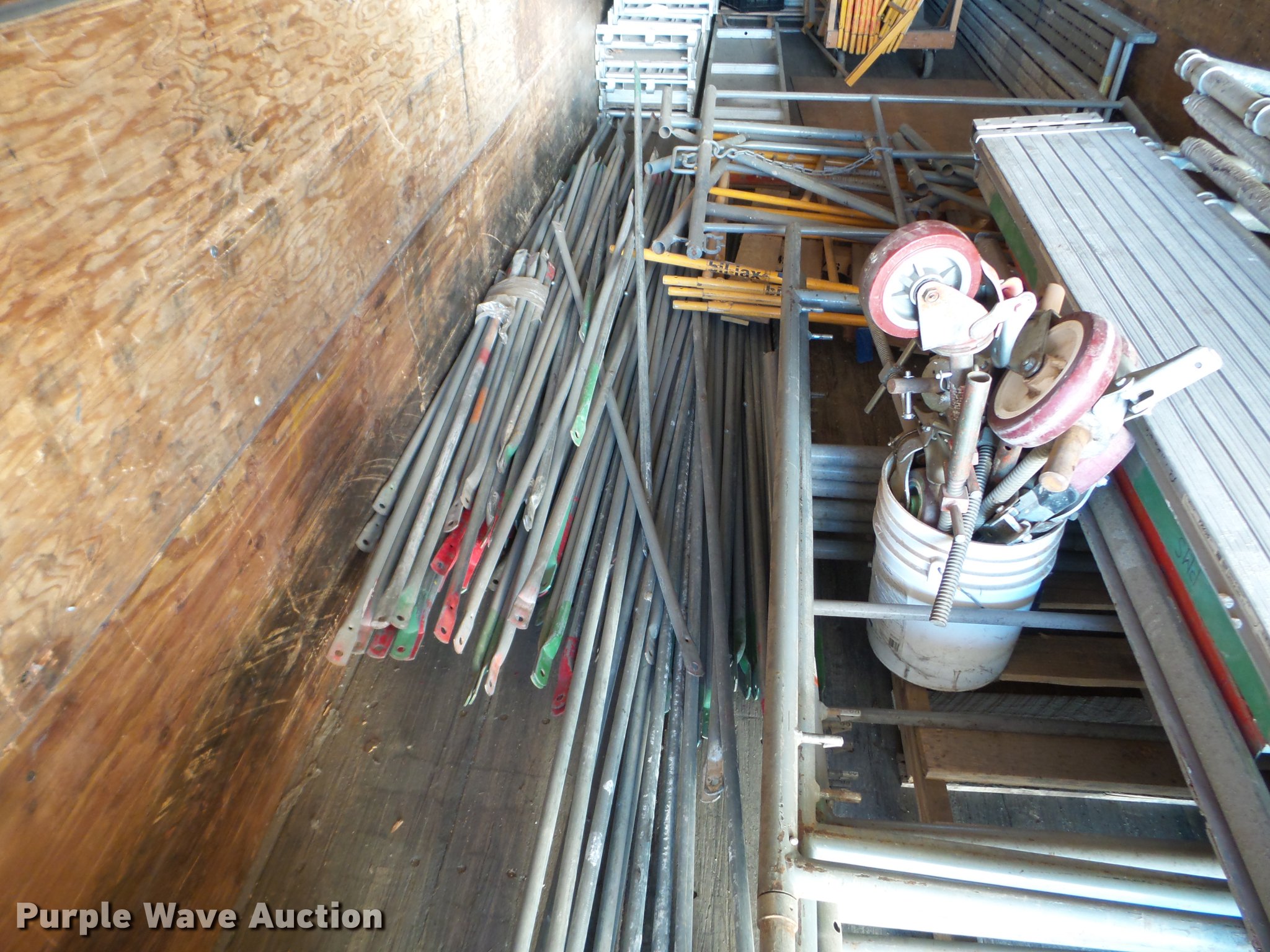 Purple Wave is selling a used Tools in Iowa. This item is a Scaffolding and walkers with the following: (47) scaffolding pieces, Cross-members, (2) 16" aluminum walkers, (25) 6' aluminum walkers, (10) 10' aluminum walkers, Pins and screw adjustable rollers