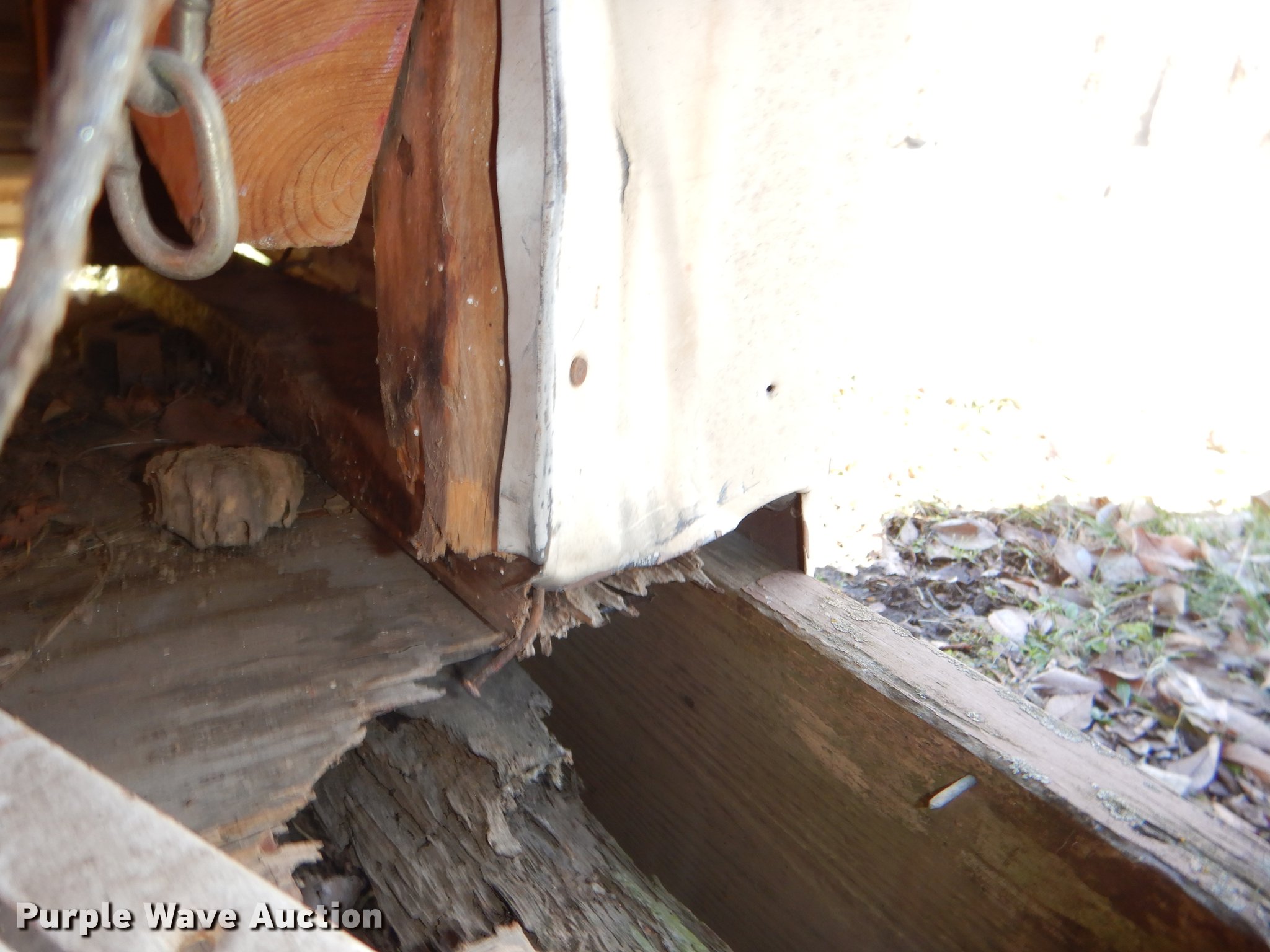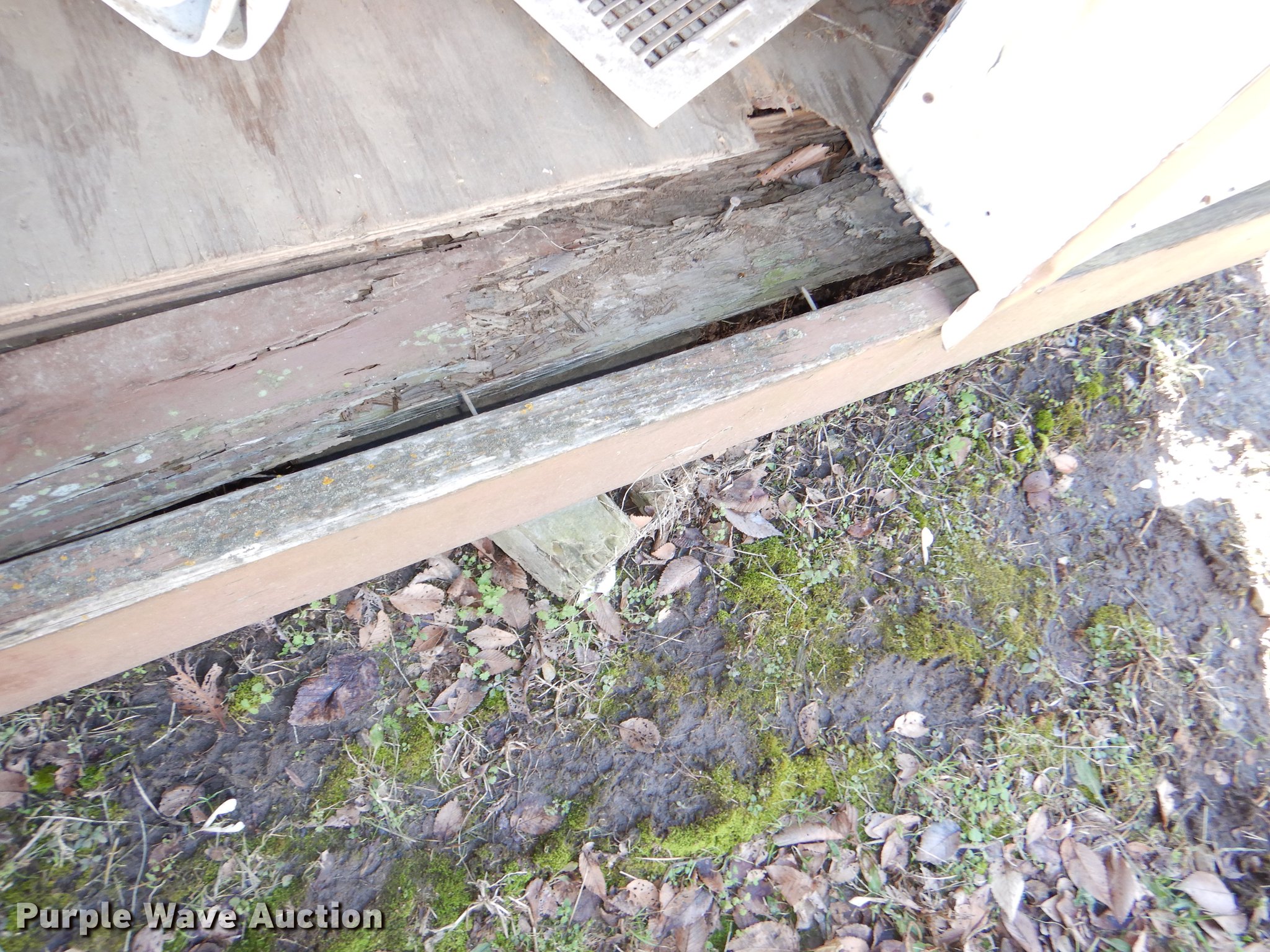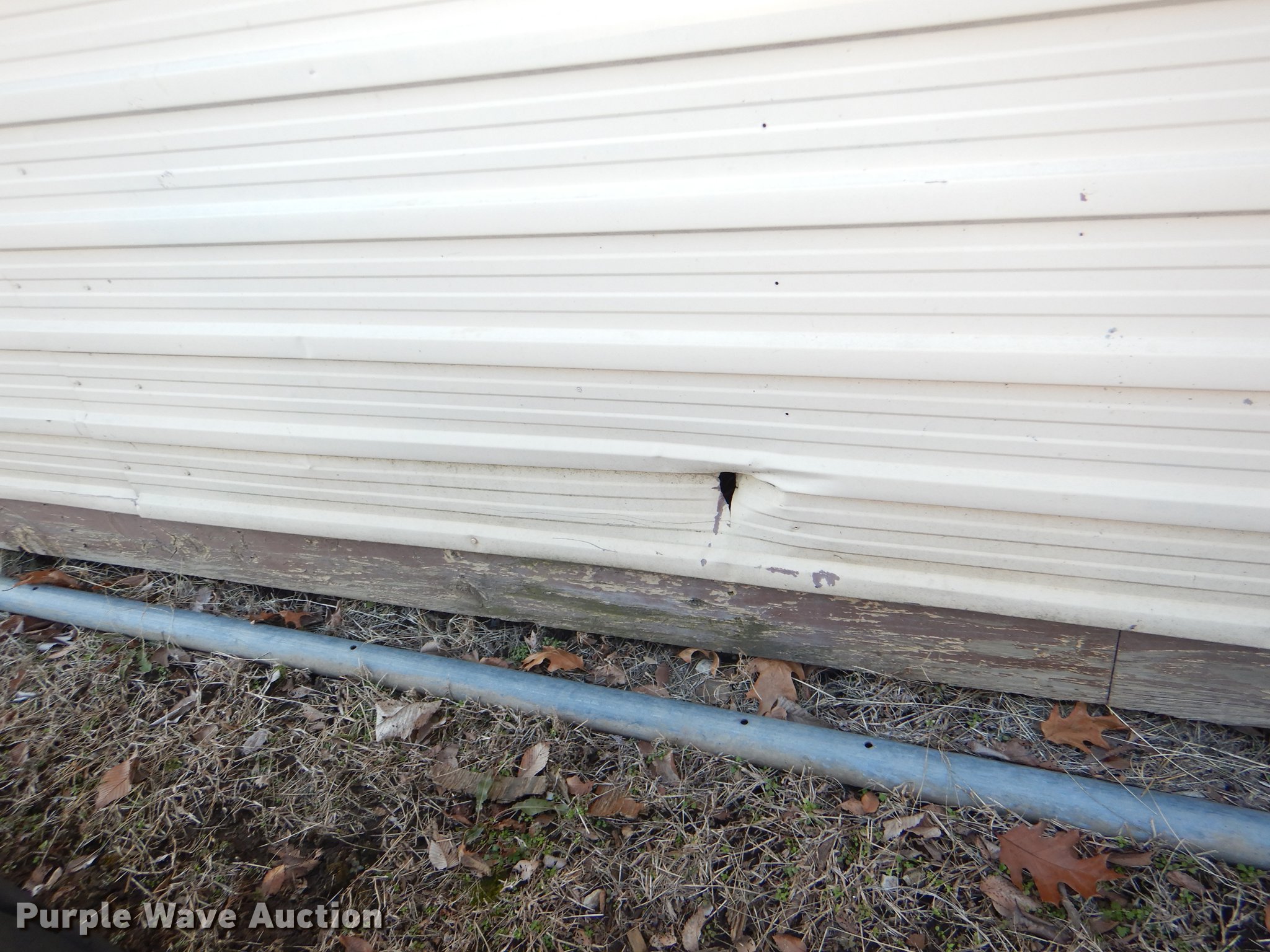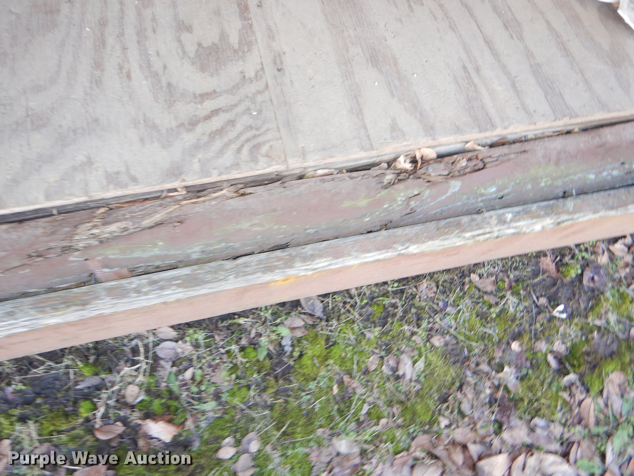 Morgan steel building. 284"L x 170"W, 11'H O.D., 2' x 8' floor framing material, Wood floor, Exterior sheet metal/tin, Folding garage door, Side entry door, Interior structure needs to be redone at right side corner to transport. Additional images forthcoming. Bonner Springs, KS 66012