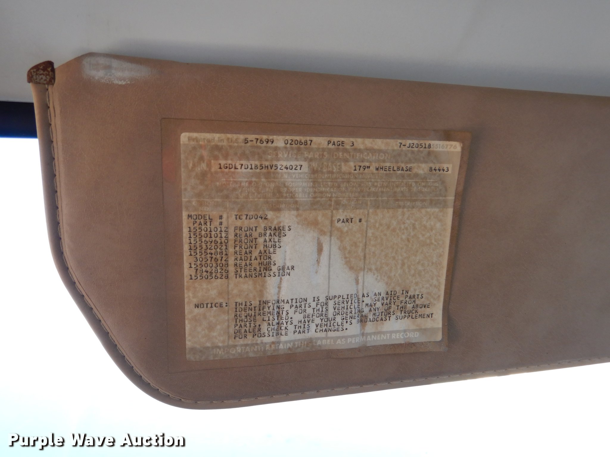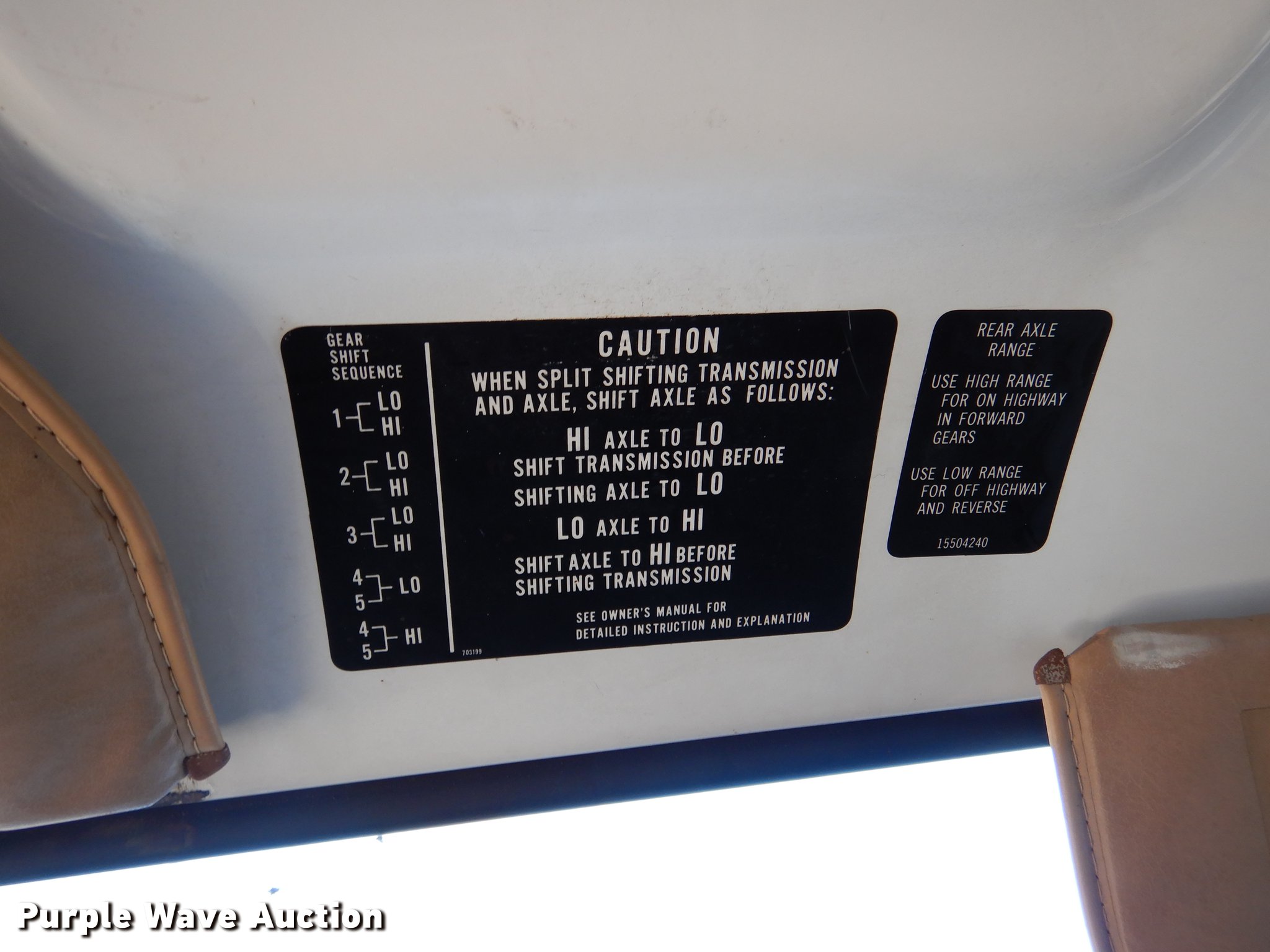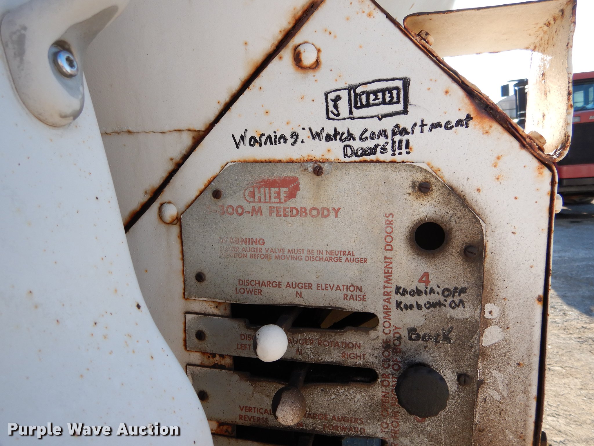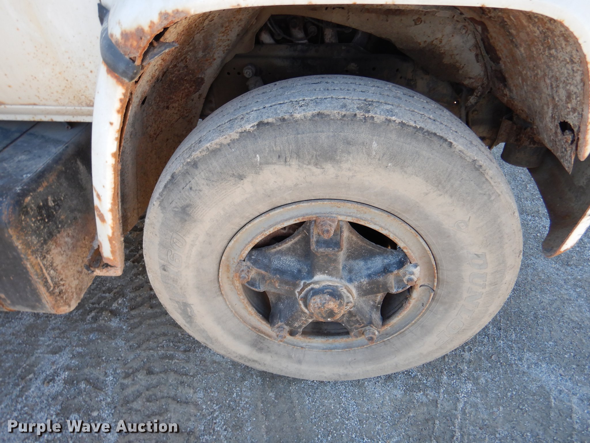 Purple Wave is selling a used Fertilizer or Feed Delivery Truck in Missouri. This item is a 1987 GMC 7000 feed delivery truck with the following: 225,766 miles on odometer, GM 366 C.I.D. V8 gas engine, Five speed manual transmission, Two speed rear end, Single axle, Heat, Model 300-M feed bed, 12'L, Six ton capacity, 16'L side auger, Single exhaust stack, 179" wheelbase, Spring suspension, Hydraulic brakes, 10.00R20 front tires, 11R22.5 rear tires, GVWR 28,000 lbs, FAWR 9,000 lbs, RAWR 19,000 lbs