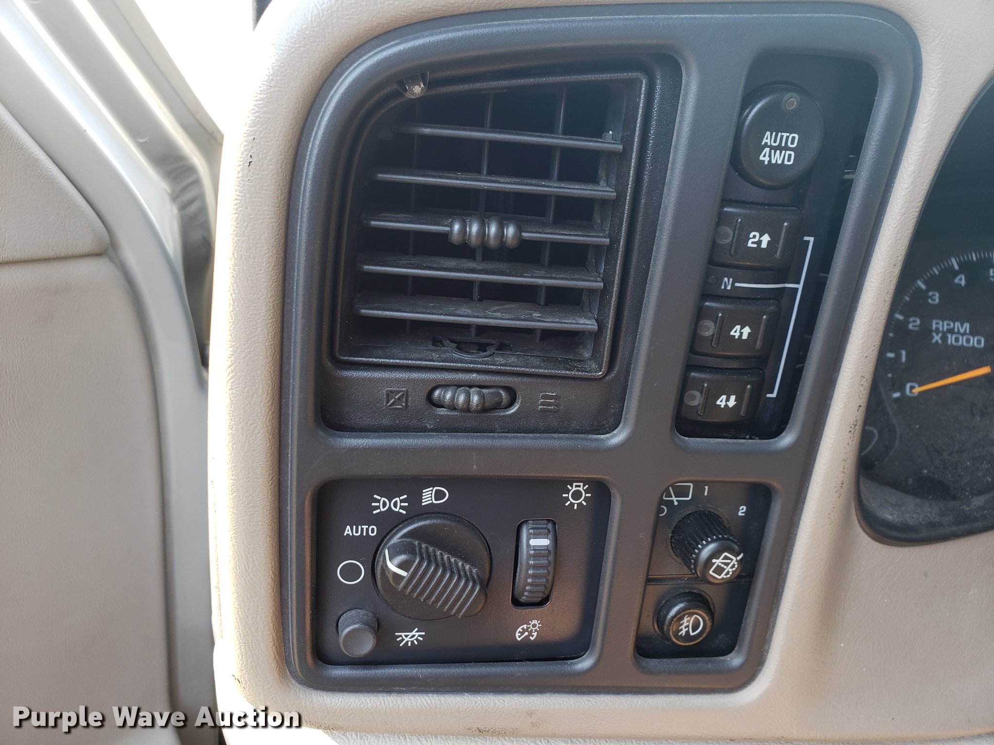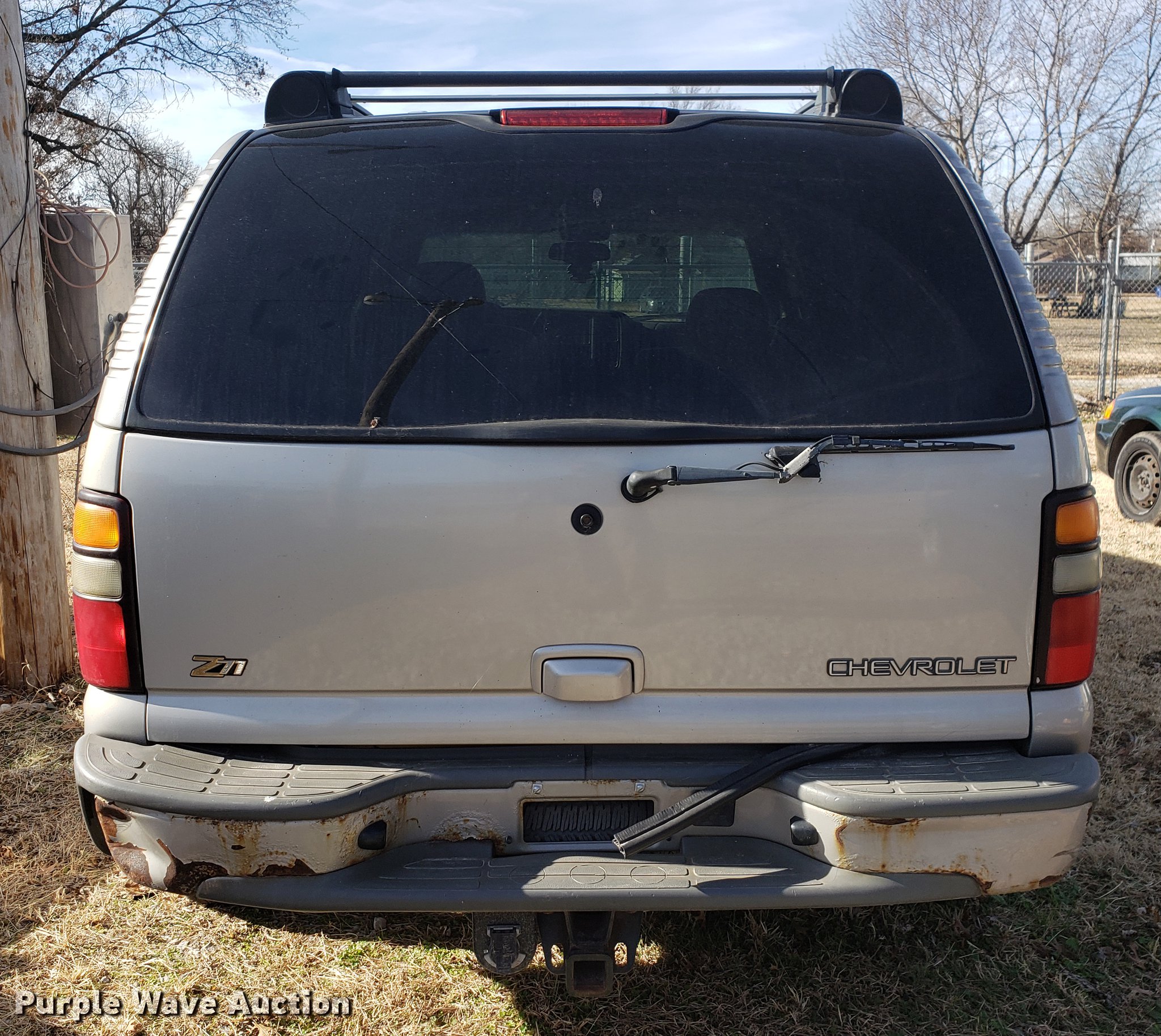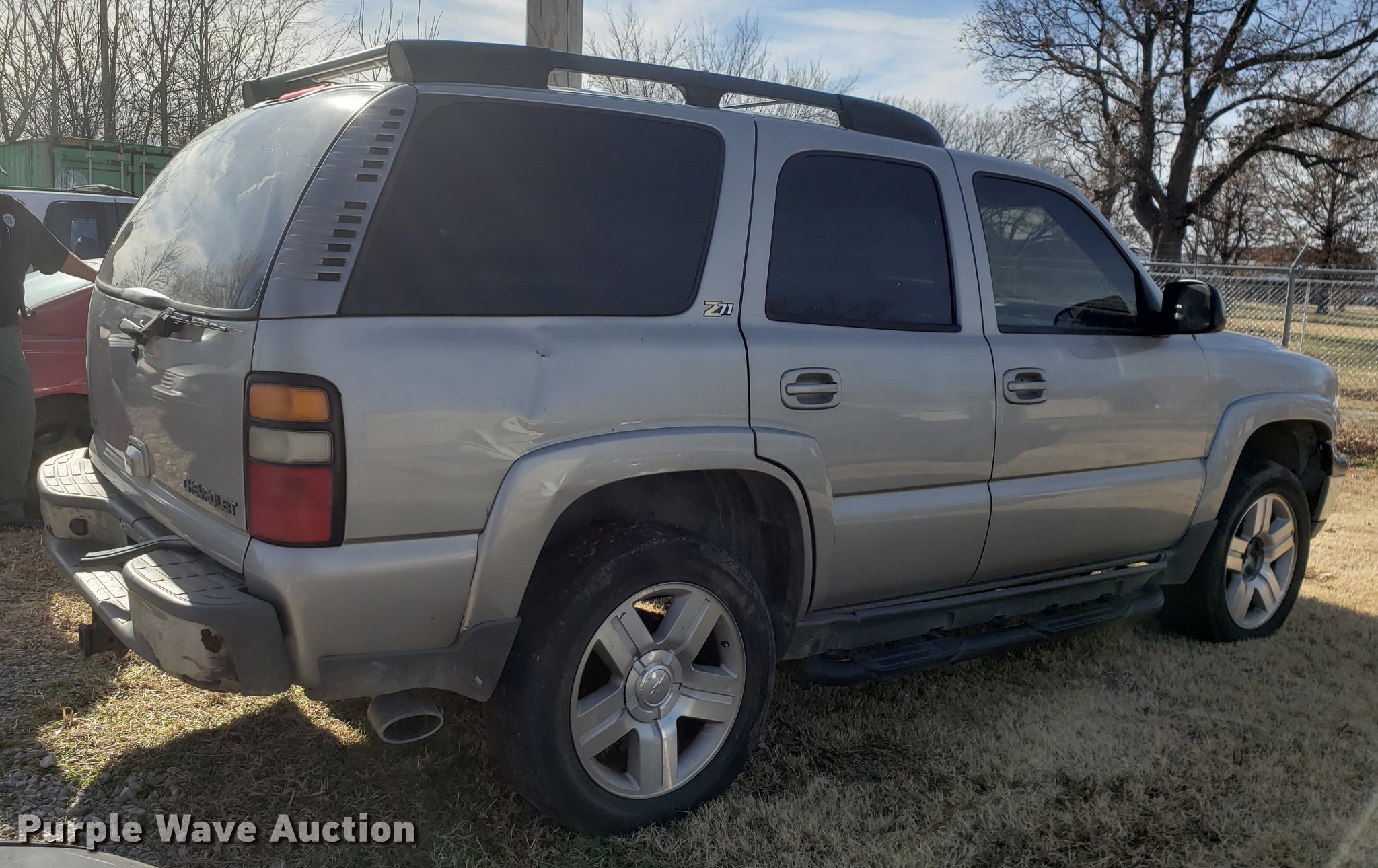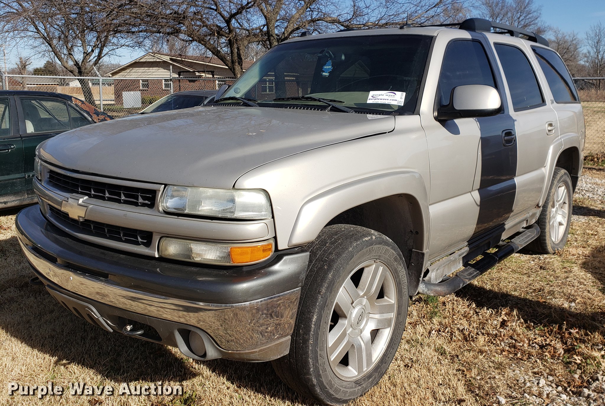 Purple Wave is selling a used Passenger Vehicle in Oklahoma. This item is a 2004 Chevrolet Tahoe SUV with the following: 110,182 miles on odometer, 5.3L V8 OHV 16V FFV gas engine, Automatic transmission, Four wheel drive, AC and heat, Tilt, Cruise, AM/FM/CD, Power windows, locks, mirrors, and seats, Leather interior, Power sunroof, Fog lights, Front tow hook, 275/55R20 tires, Unknown operating condition, Battery dead