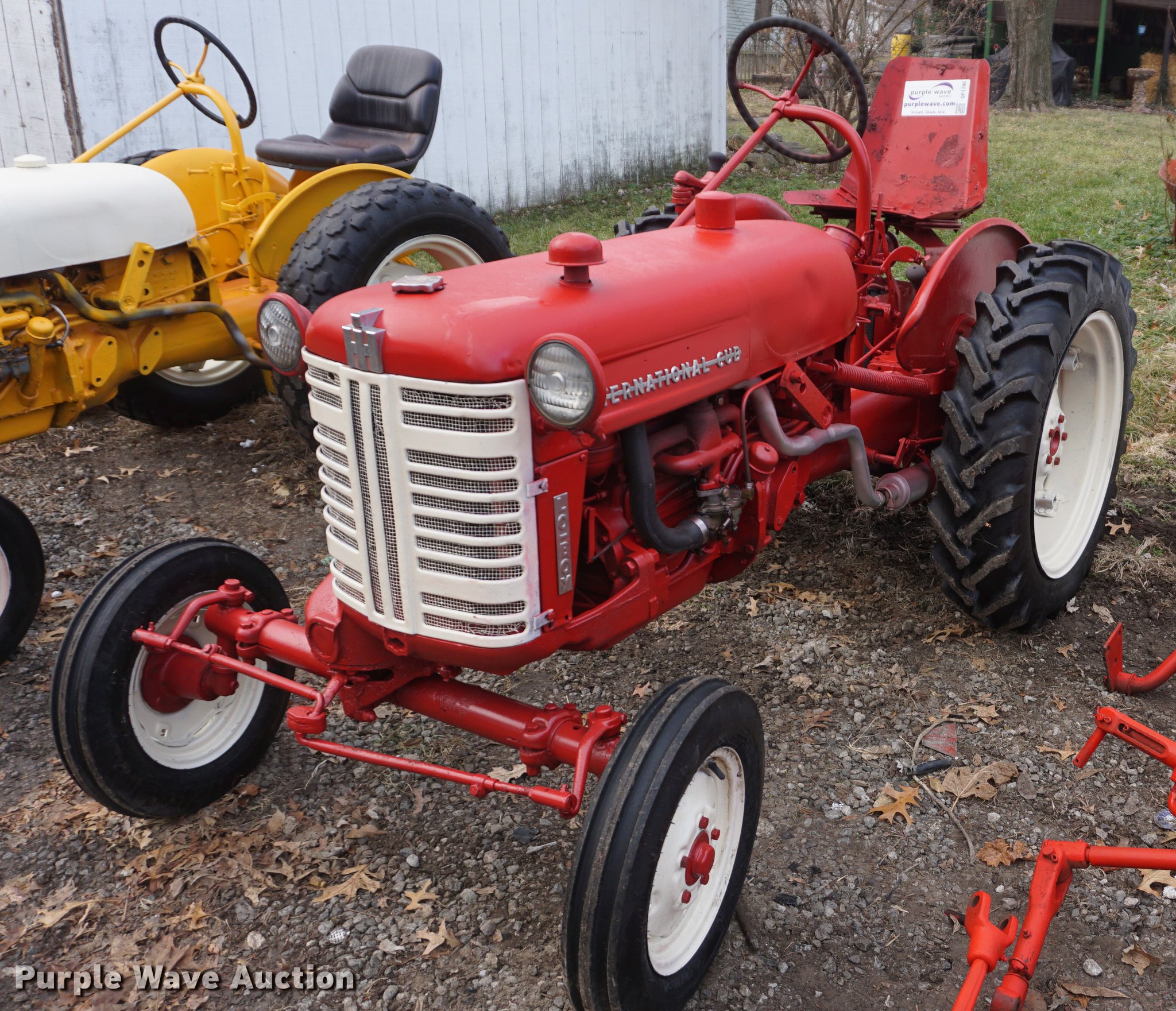 Purple Wave is selling a used Tractor in Kansas. This item is a 1957 International Cub Lowboy tractor with the following: 946 hours on meter, International 1.0L four cylinder gas engine, 11 HP, Manual transmission, 3F-1R, Plow, 60" disk, Kub Klipper mower, 42" cut, 54" front blade, Snap coupler mounting bracket, 4.00-12 front tires, 8.3-24 rear tires, Serial 6570J