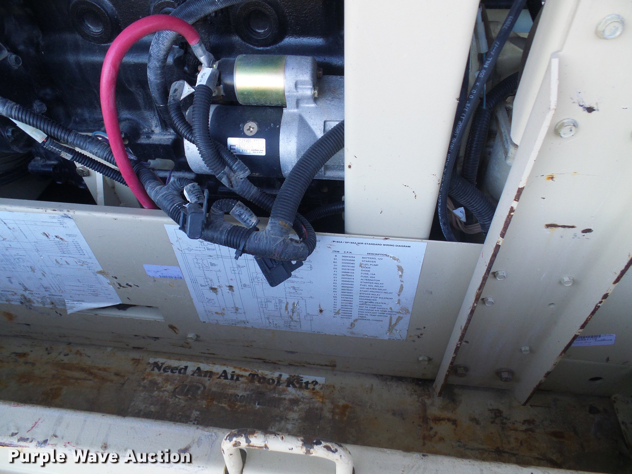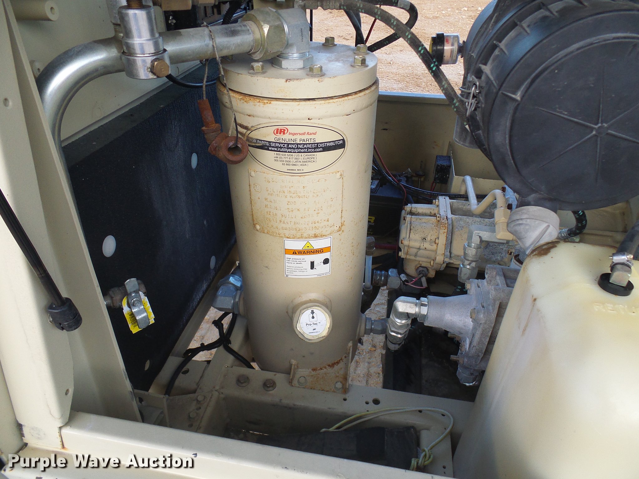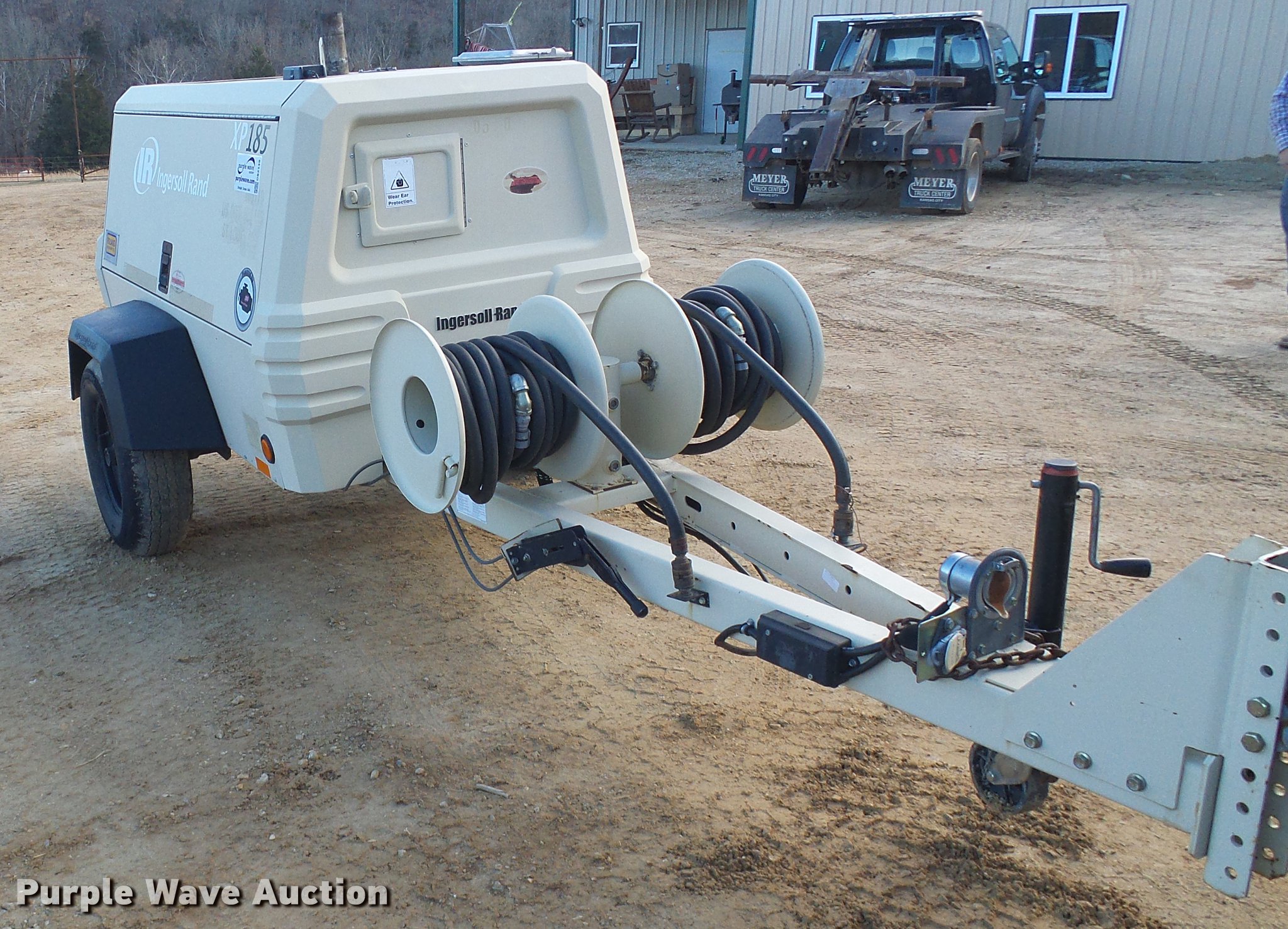 Purple Wave is selling a used Air Compressor in Missouri. This item is a 2007 Ingersoll Rand XP185 air compressor with the following: 94 hours on meter, Ingersoll Rand 4IRI87 3.319L four cylinder diesel engine, 185 CFM, 200 psi, Dual hose reels, Pintle hitch, 225/75D15 tires, Serial 3886630GR21