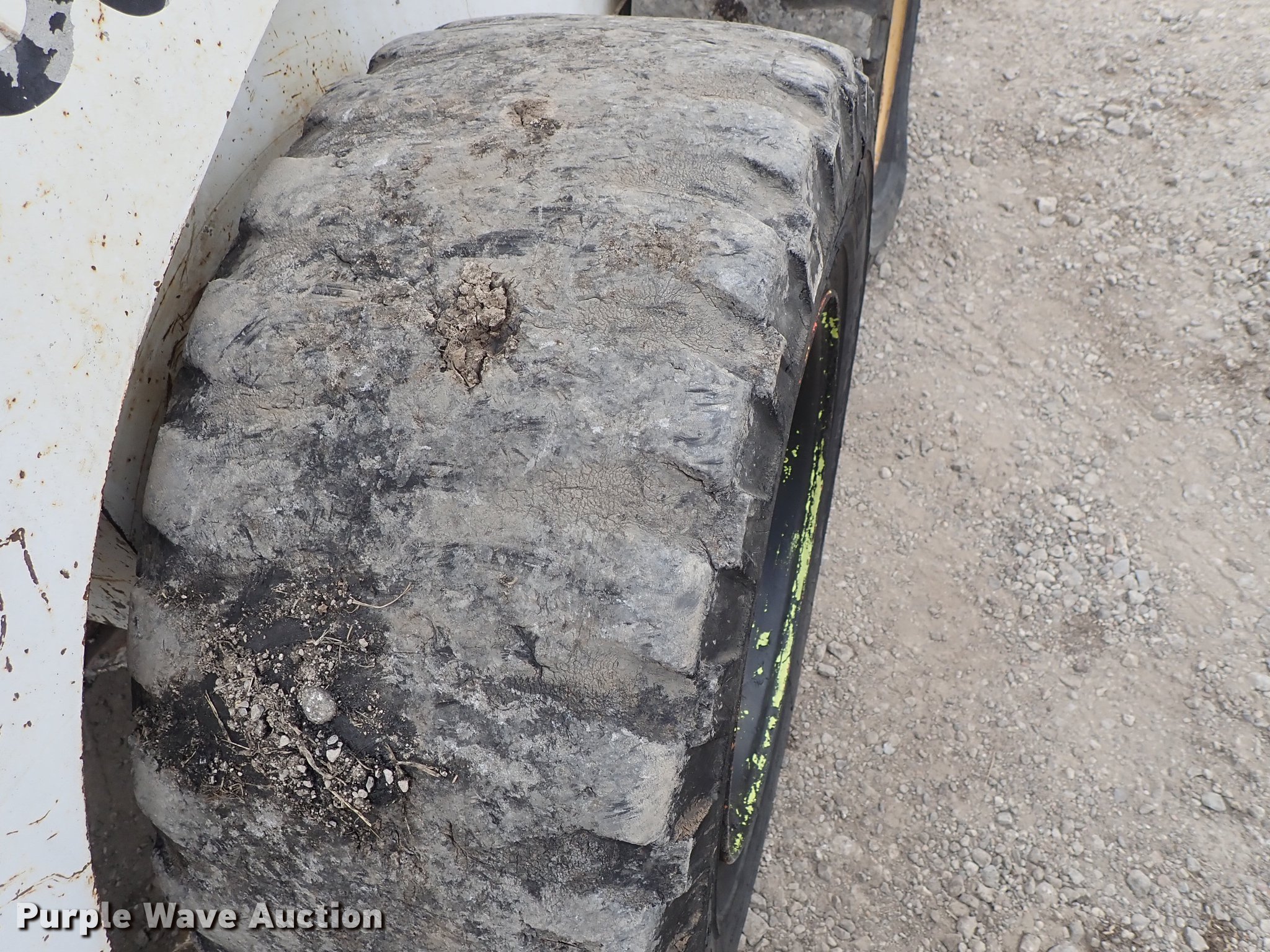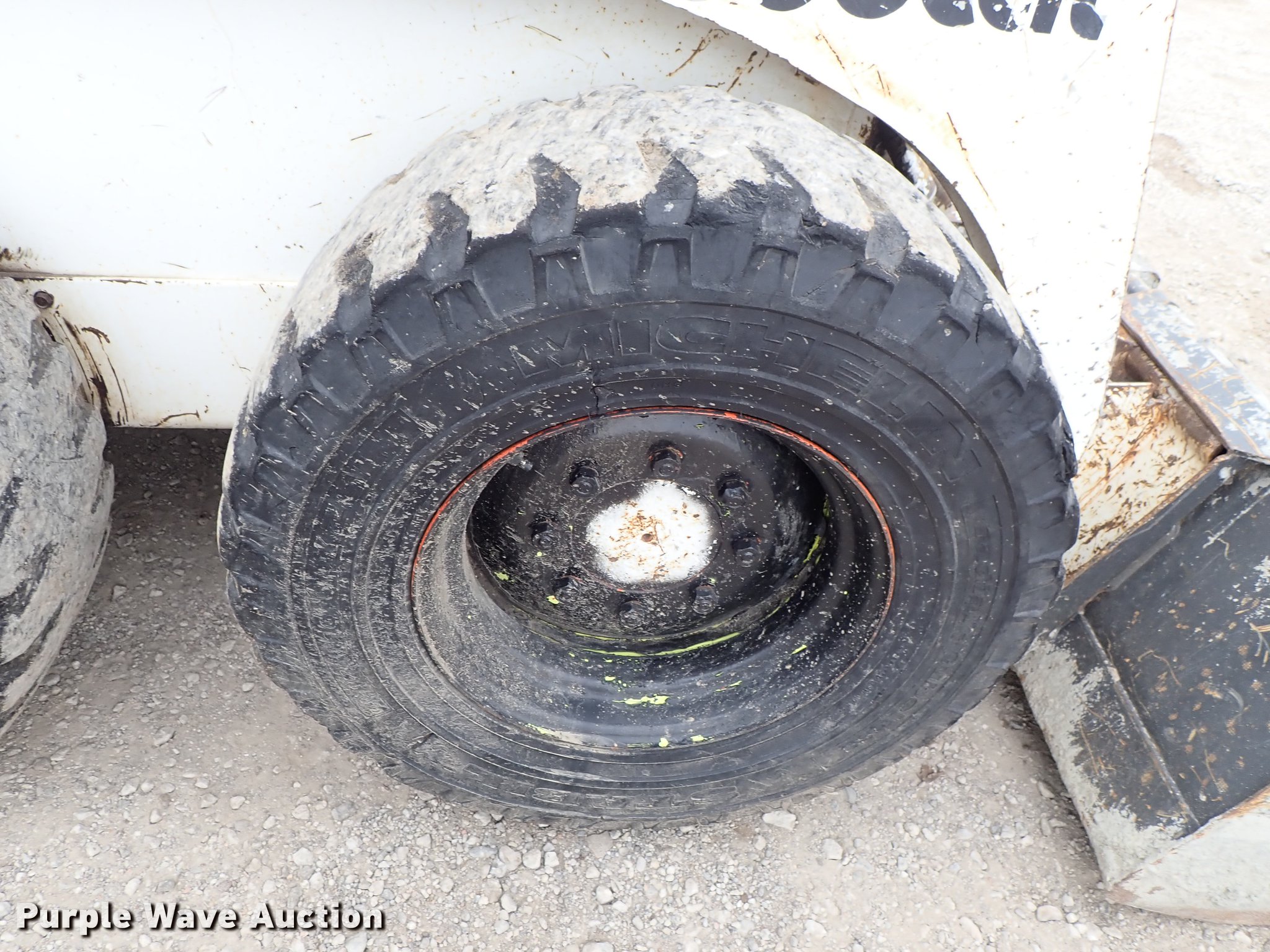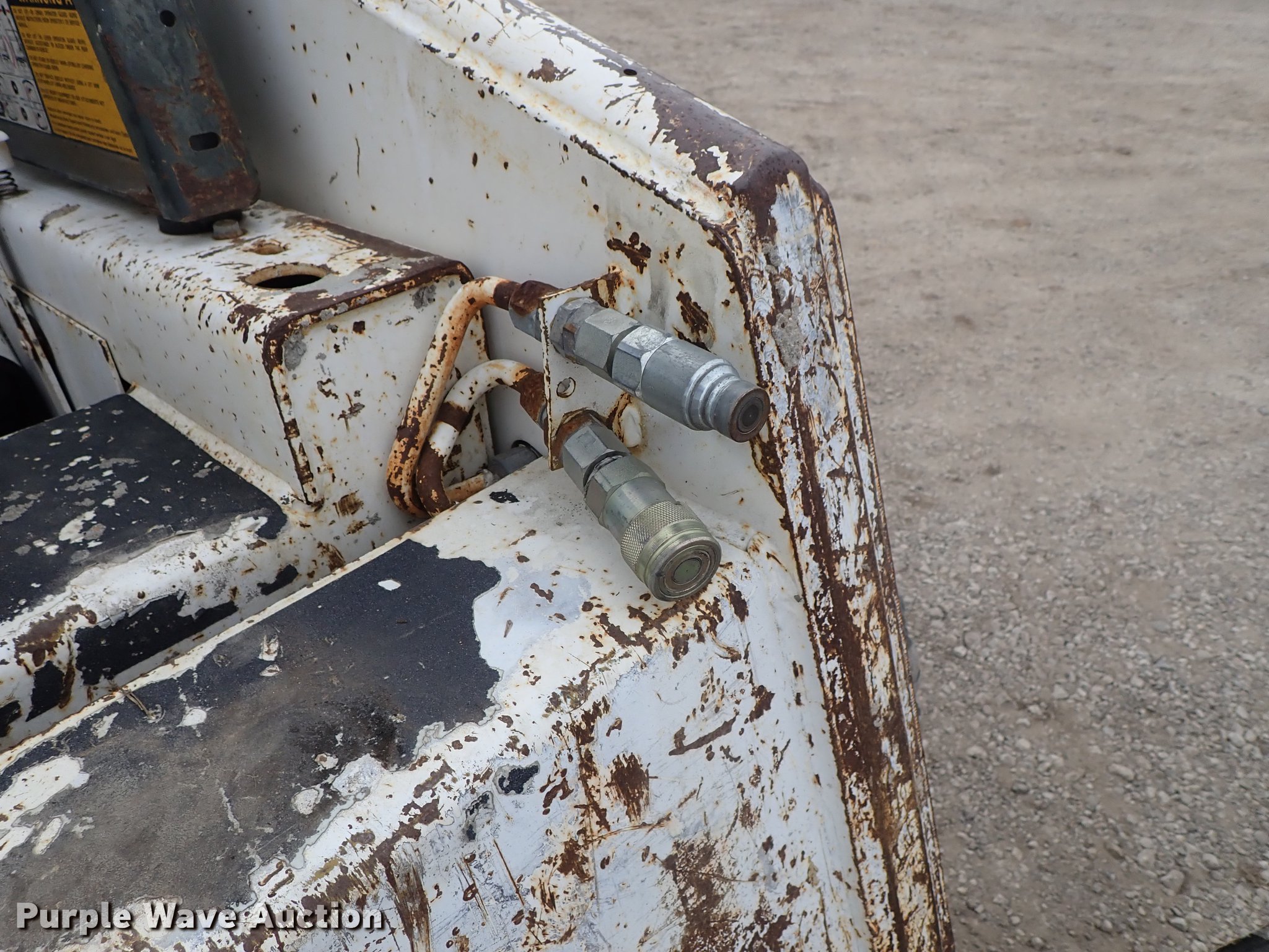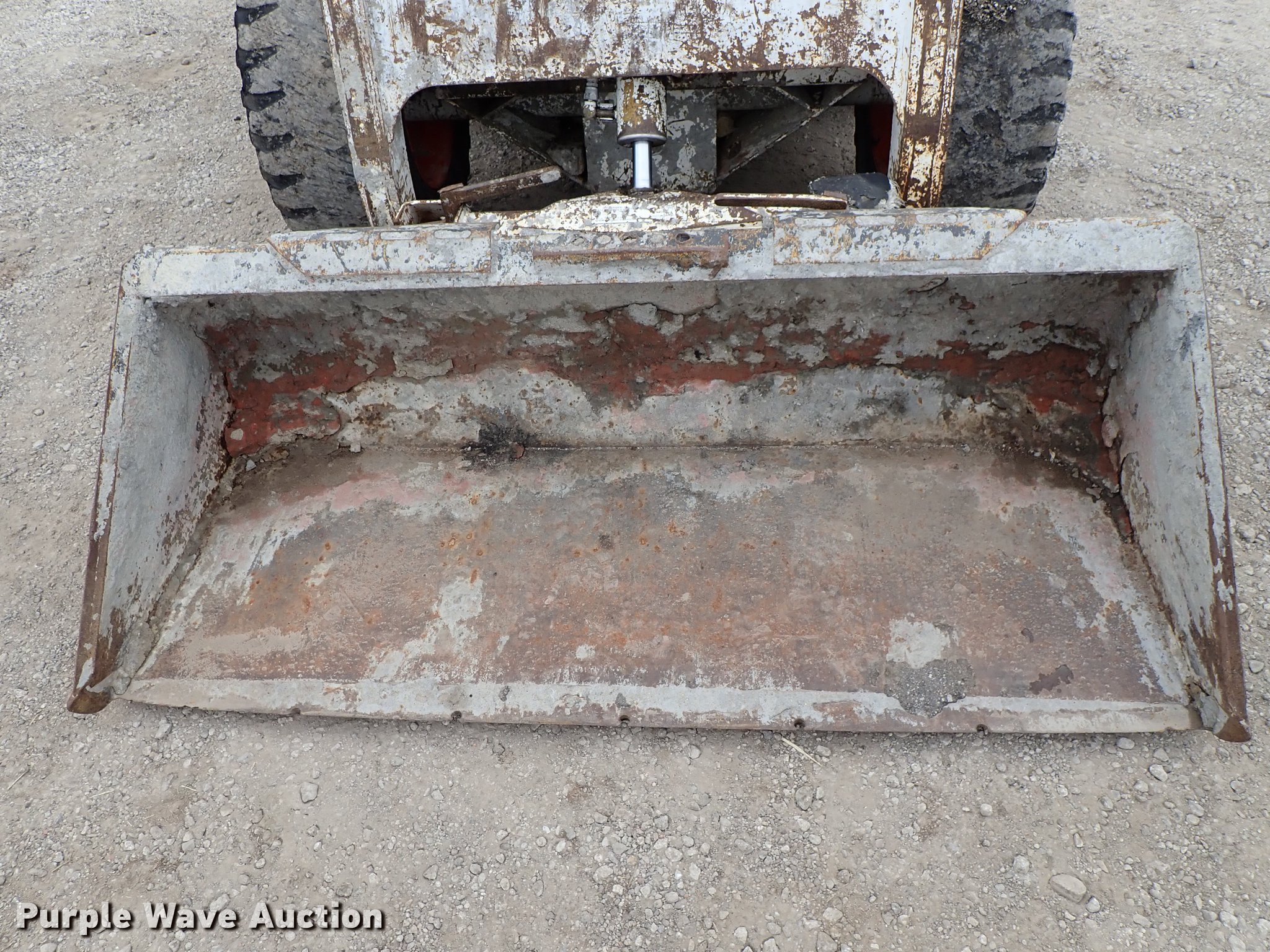 Purple Wave is selling a used Skid Steer Loader in Kansas. This item is a Bobcat 843 skid steer with the following: 2,270 hours on meter, Four cylinder diesel engine, Hydrostatic transmission, Open station/canopy, Hand and foot controls, Spring suspension seat, Front work lights, 72"W bucket, Bolt-on cutting edge, Auxiliary hydraulics, Manual quick coupler, 12R16.5 tires, Front tire flat