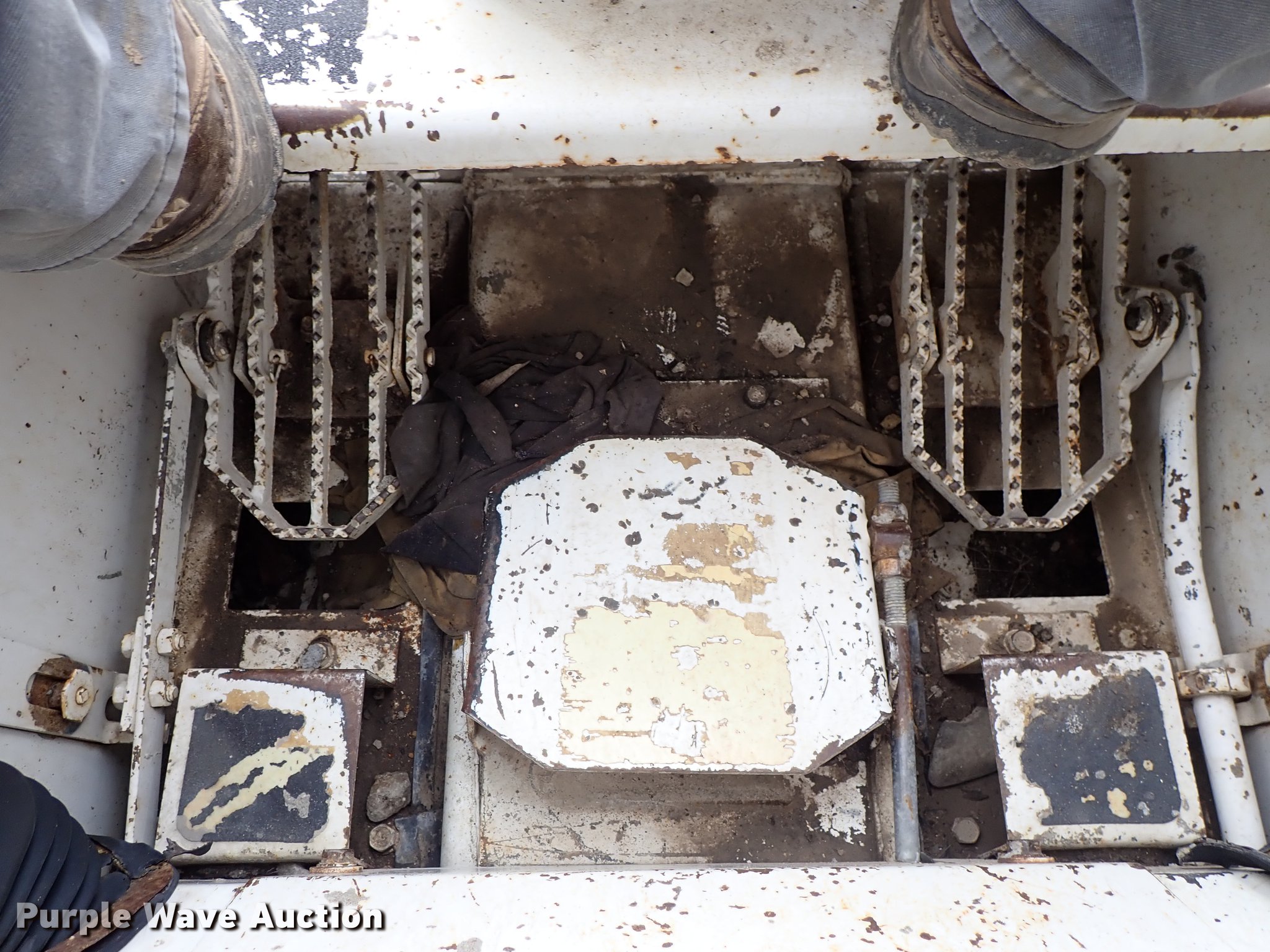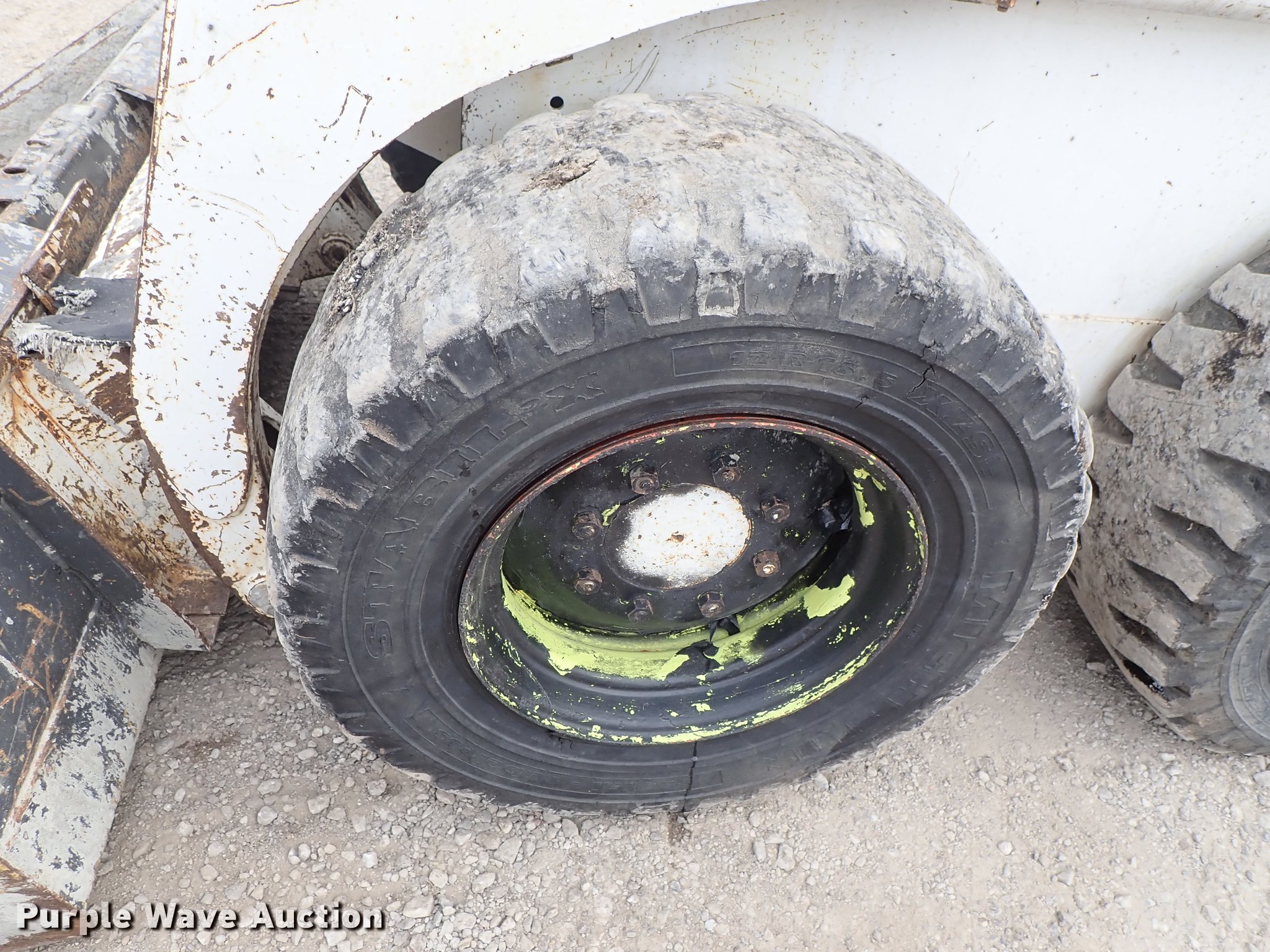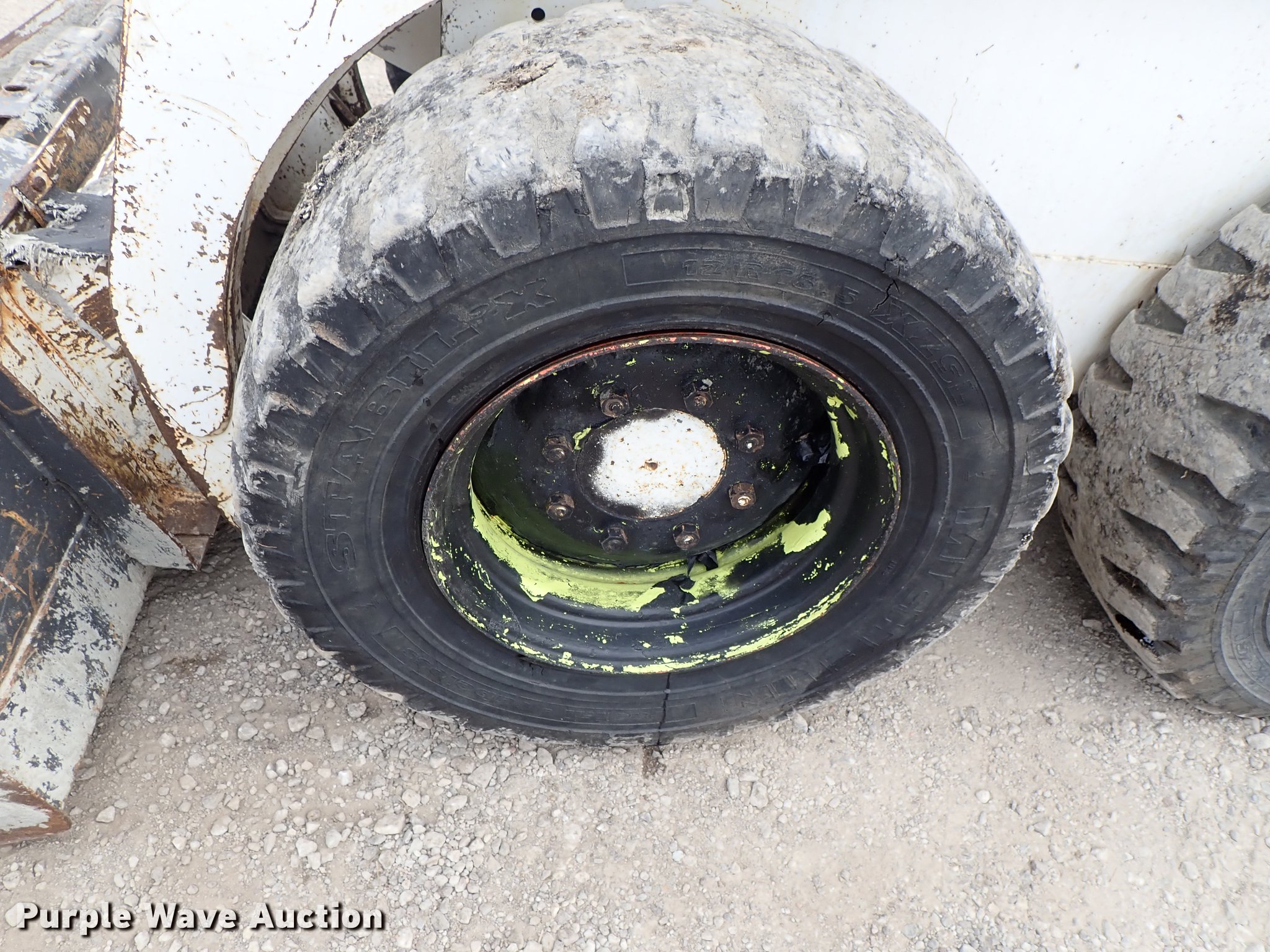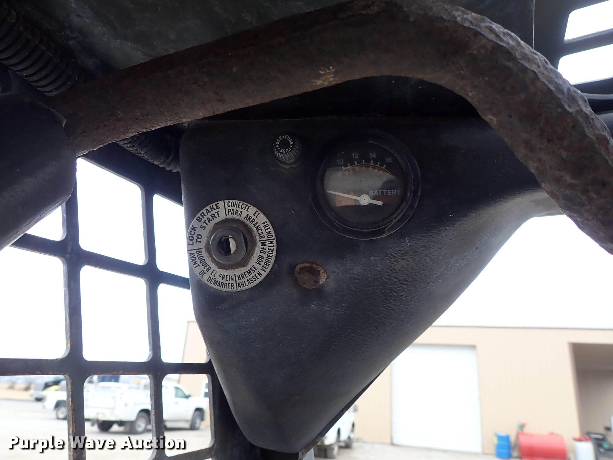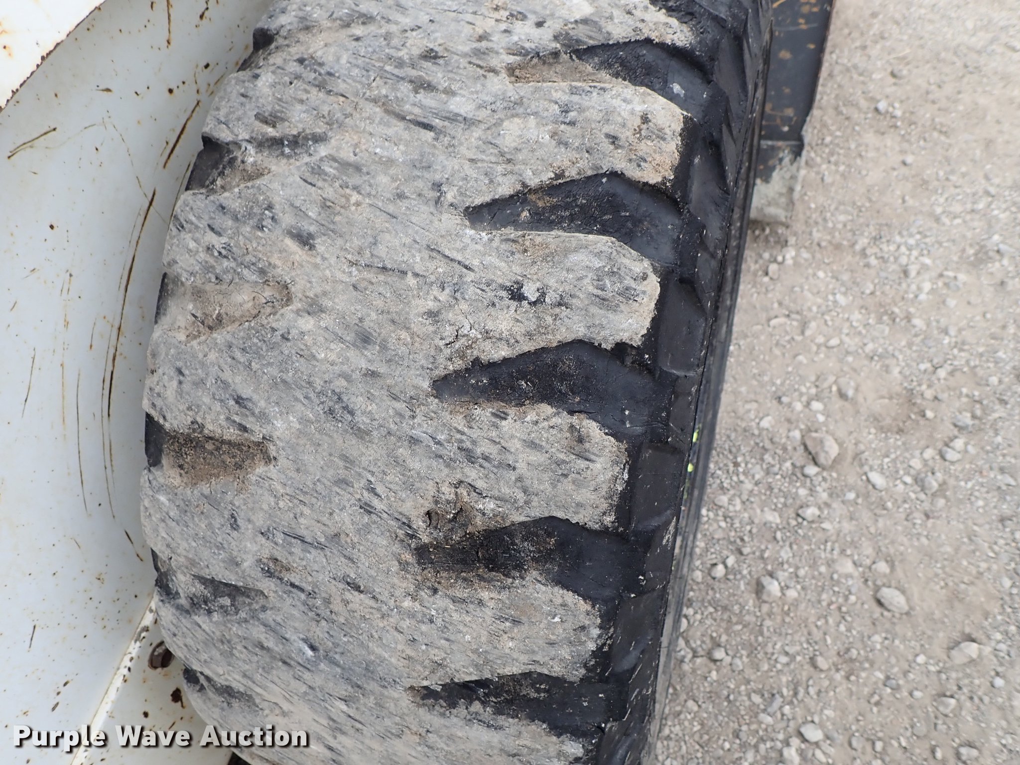 Purple Wave is selling a used Skid Steer Loader in Kansas. This item is a Bobcat 843 skid steer with the following: 2,270 hours on meter, Four cylinder diesel engine, Hydrostatic transmission, Open station/canopy, Hand and foot controls, Spring suspension seat, Front work lights, 72"W bucket, Bolt-on cutting edge, Auxiliary hydraulics, Manual quick coupler, 12R16.5 tires, Front tire flat