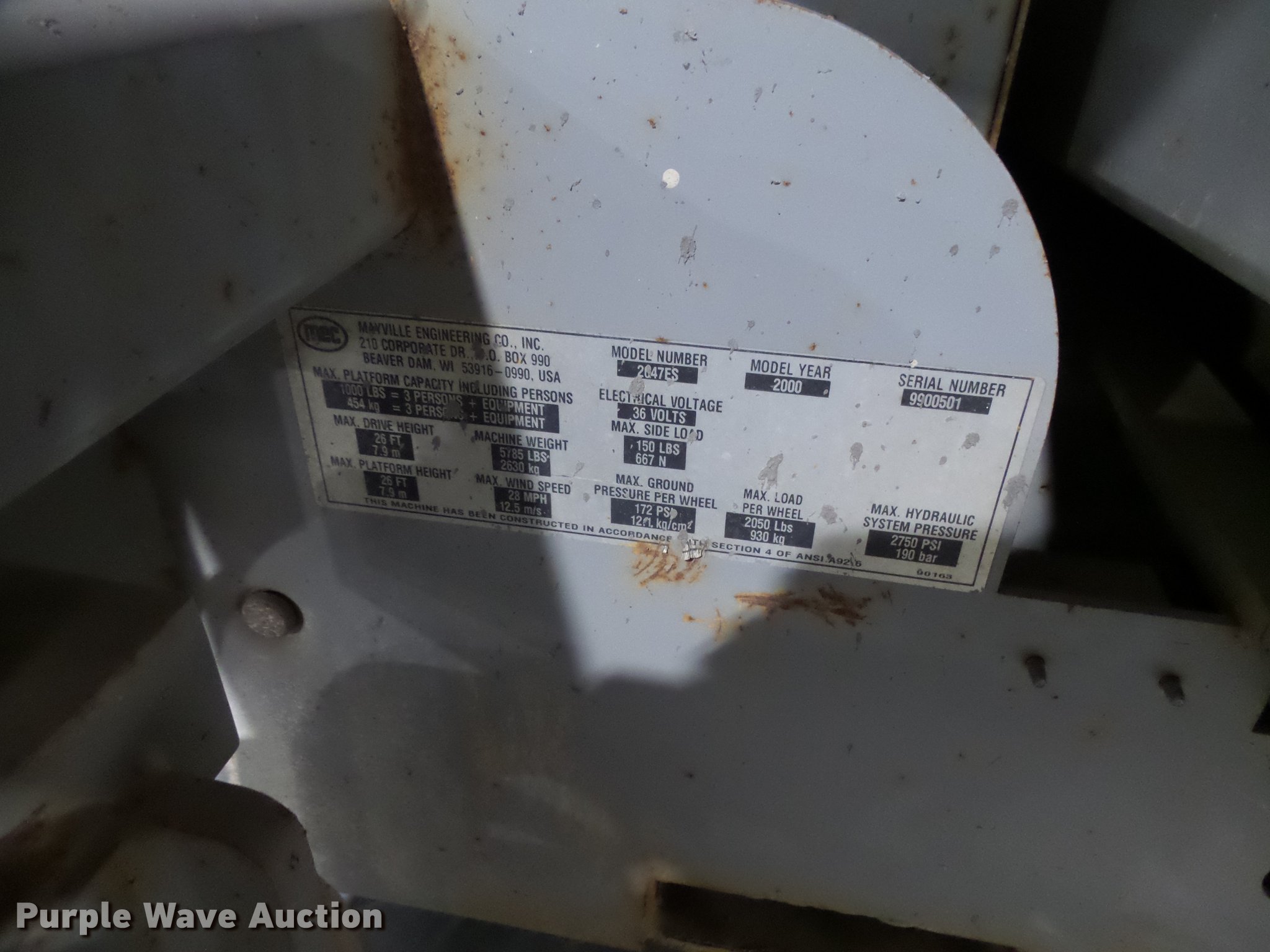 2000 Mec 2647ES scissor lift has sold in Mitchell, South Dakota for $907.50. Item DX9150 sold on January 17th, 2019.