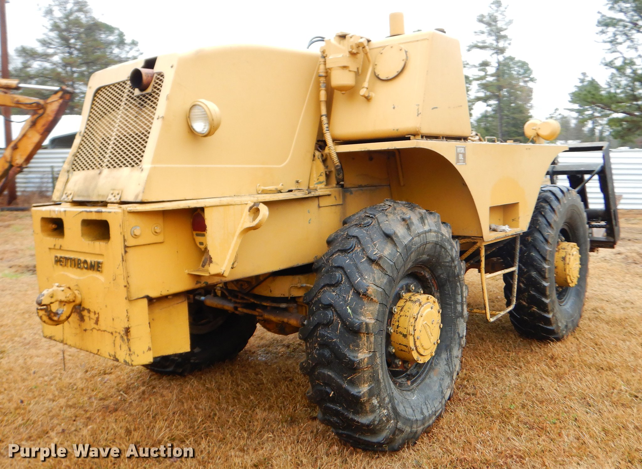Purple Wave is selling a used Strt. Mast Rough Terr. Forklift in Oklahoma. This item is a 1981 Pettibone MC-6000-RTL forklift with the following: 2,086 hours on meter, Detroit Diesel diesel engine, Serial 4D-181913, 3F-3R gears, Four wheel drive, Crab steer, Four wheel steer, Work lights, 6,000 lbs maximum lift capacity, Hydraulic fork width adjustment, 46"L forks, Pintle hitch, 14.00R24 tires, Oil leaks, Serial 6695