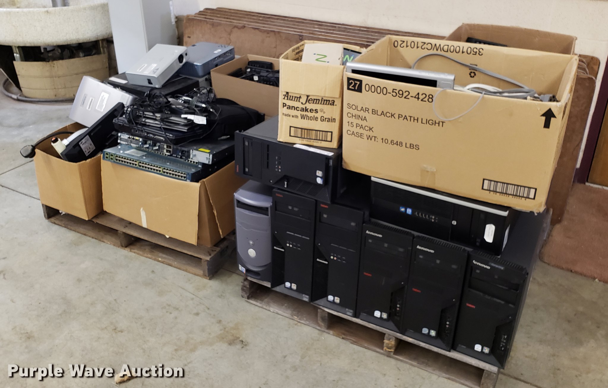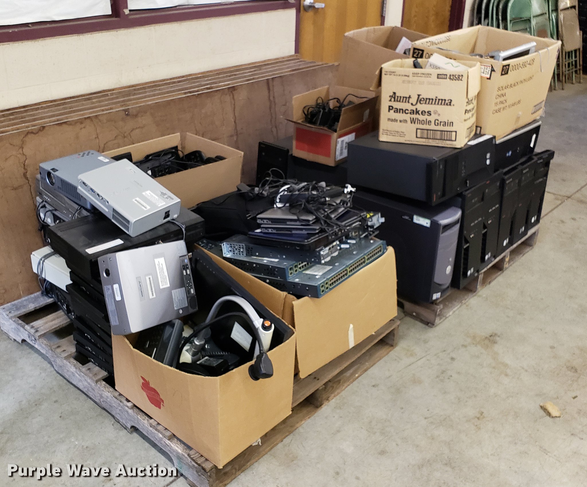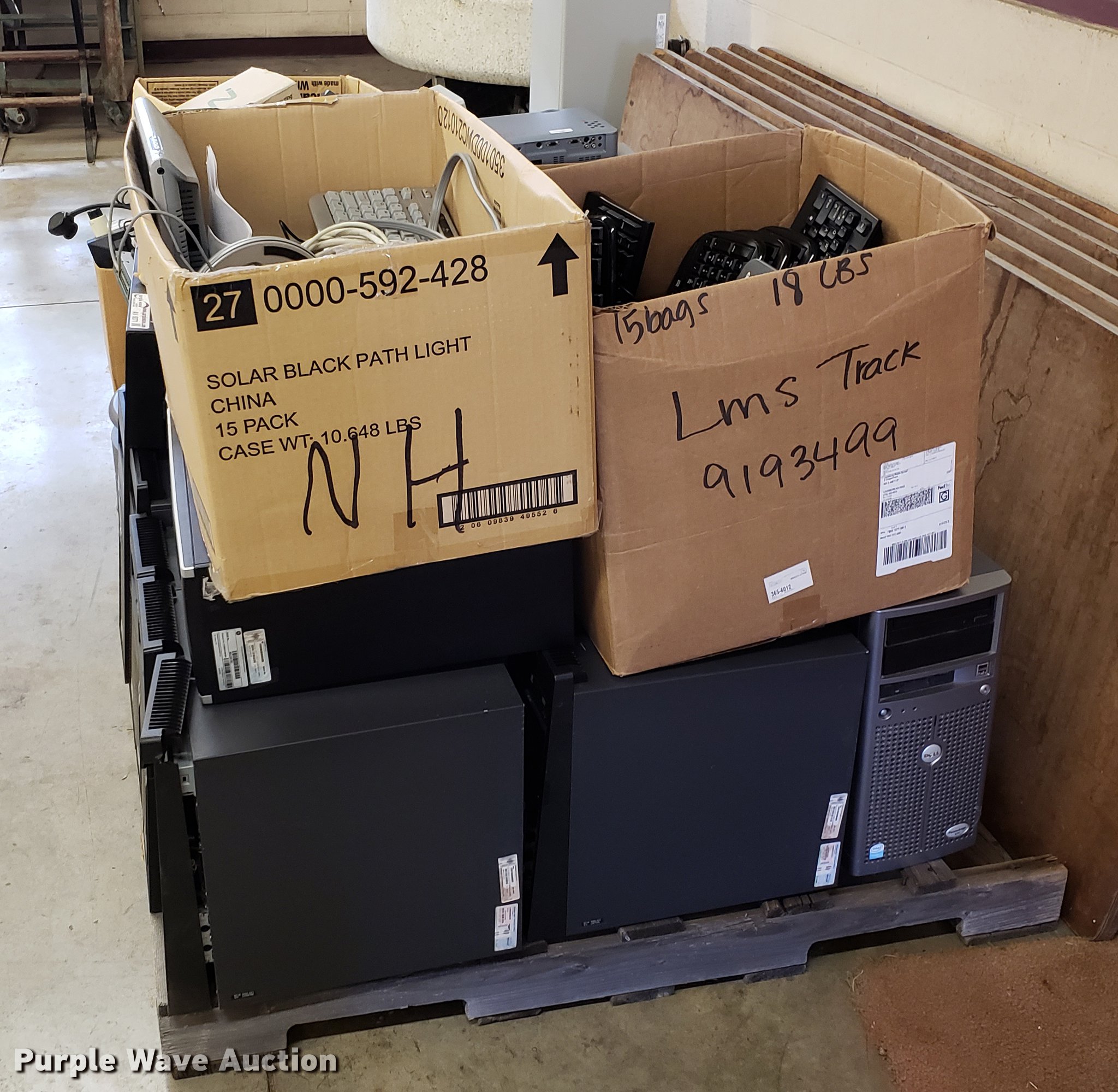 Purple Wave is selling a used Computers in Kansas. This item is a Approximately 16 CPUs with the following: Assorted wiring, Keyboards, Mice, Laptops, Projectors